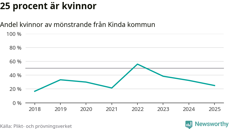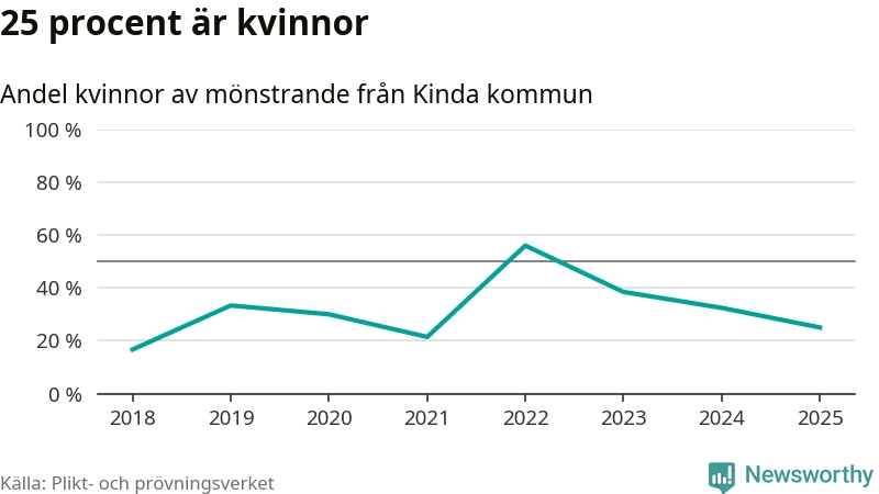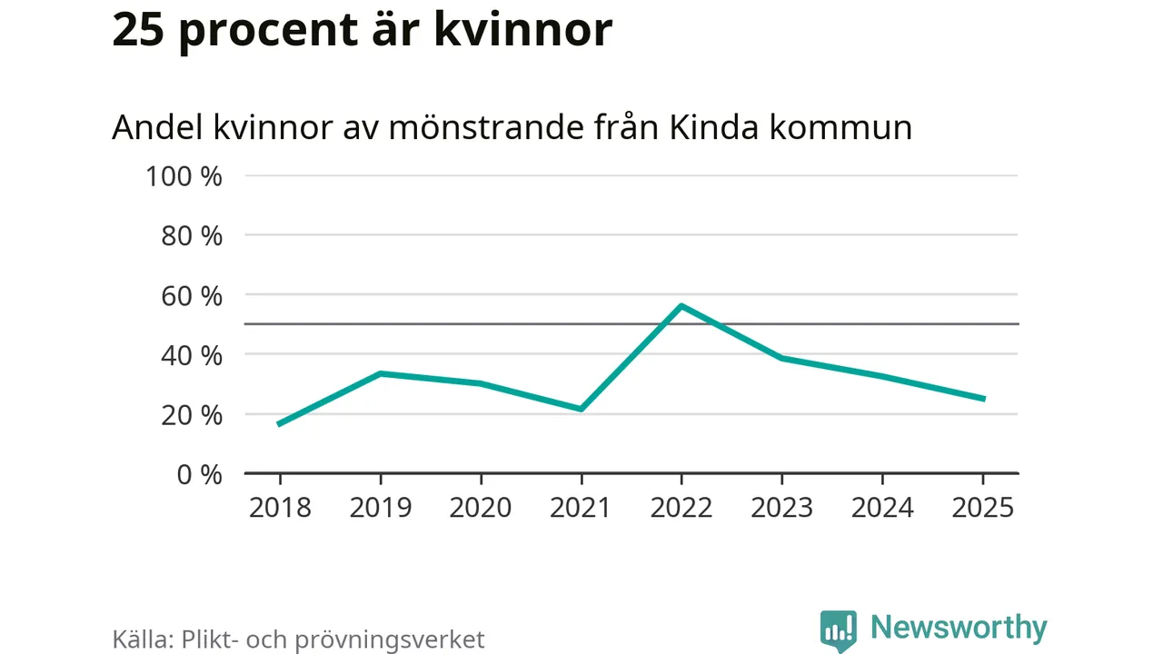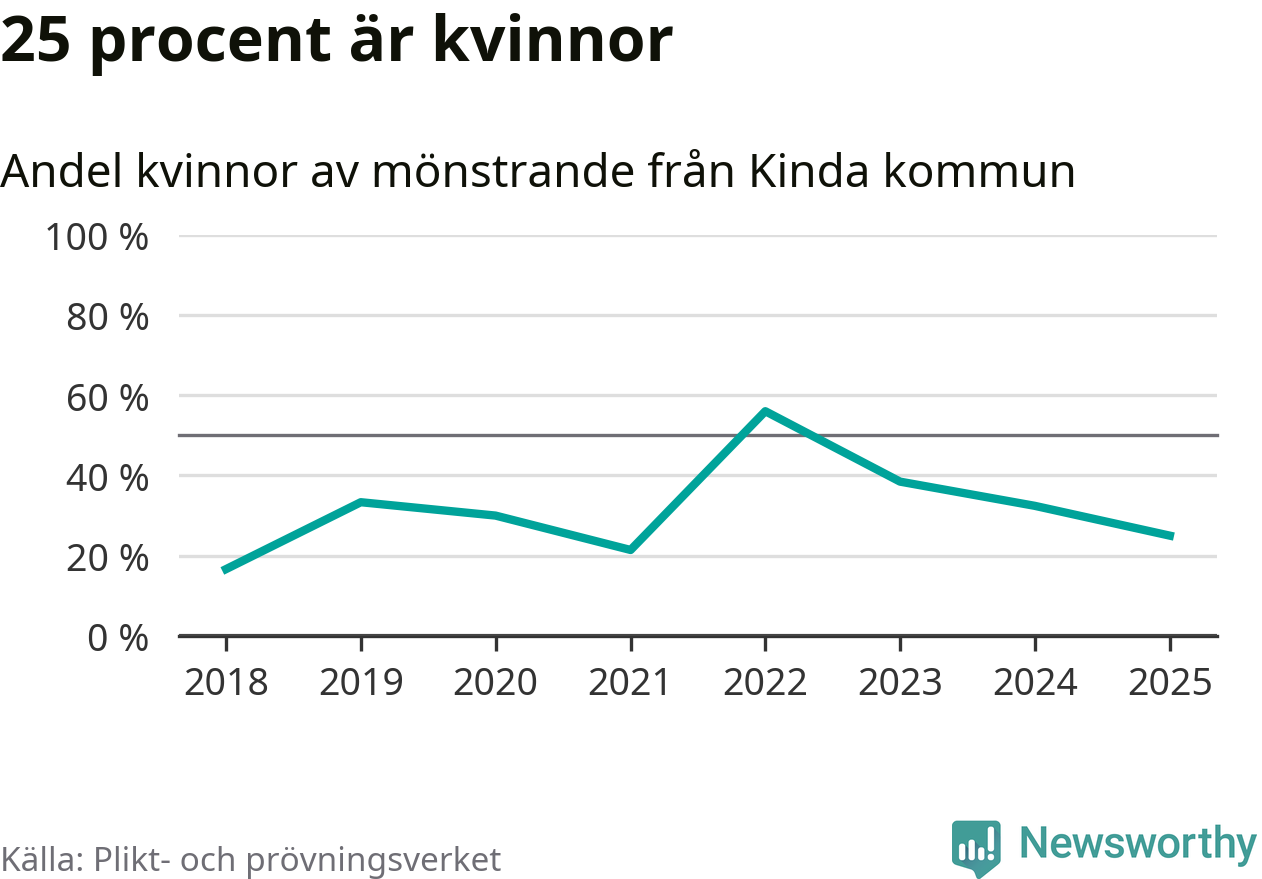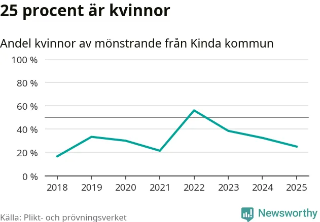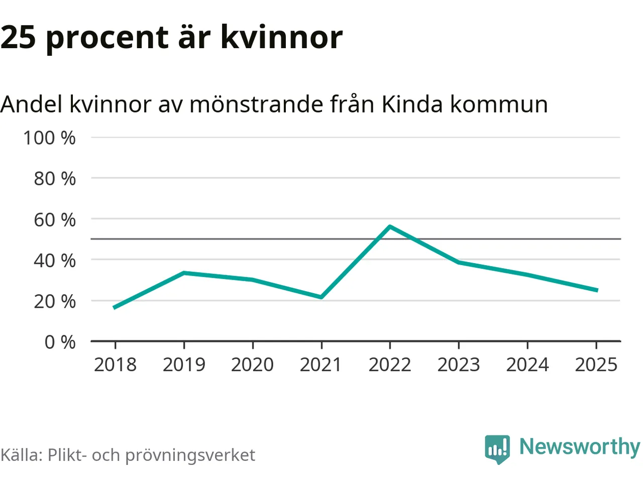 Av de som skrivits in till någon av Försvarmaktens grundutbildningar det senaste året, från juni 2024 till mars i år, kommer åtta (sju män och en kvinna) från Kinda. Samtliga antogs efter att ha kallats till mönstring.