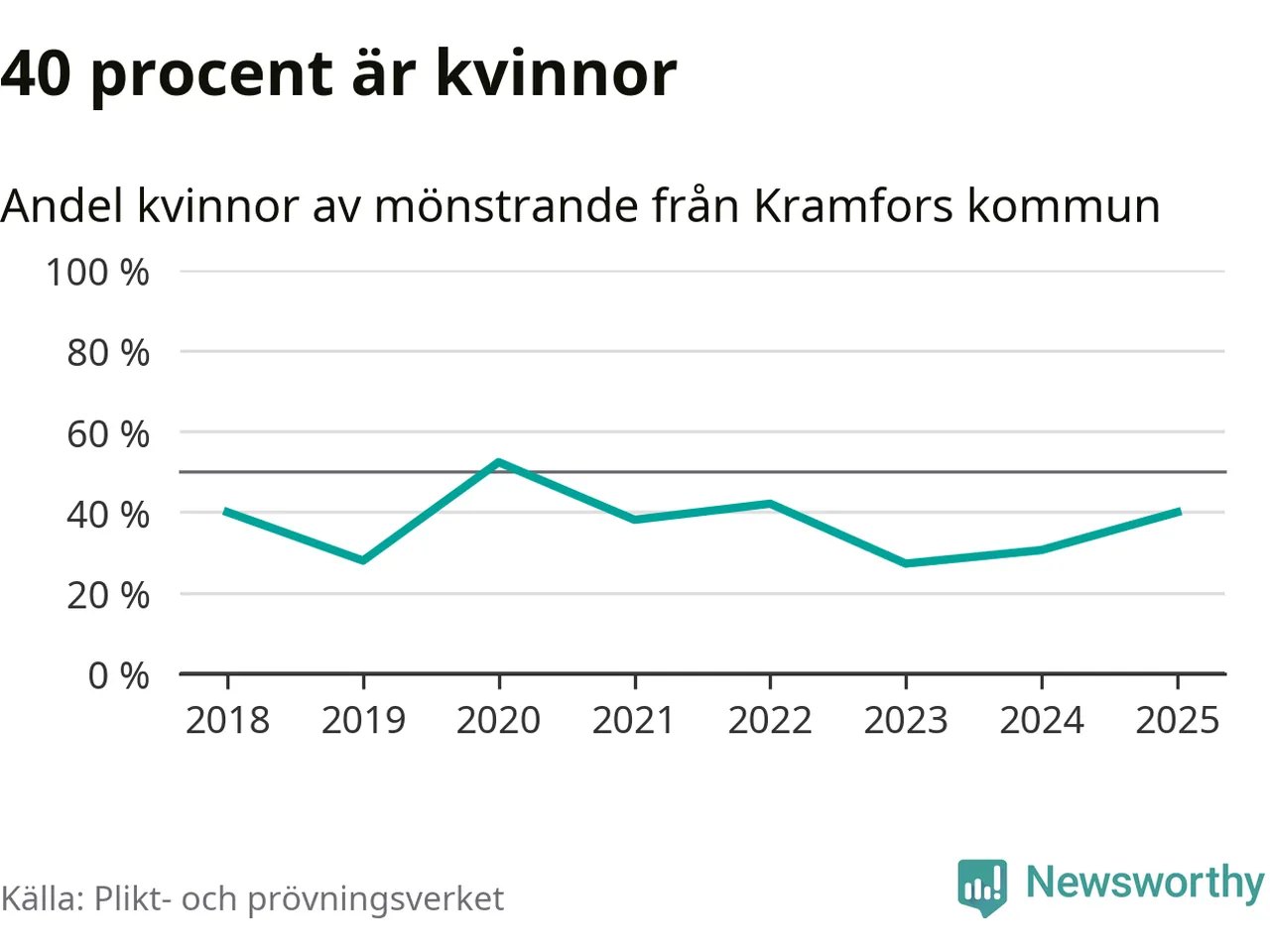 Av de som skrivits in till någon av Försvarmaktens grundutbildningar det senaste året, från juni 2024 till mars i år, kommer tolv (nio män och tre kvinnor) från Kramfors. Elva av dessa antogs efter att ha kallats till mönstring.