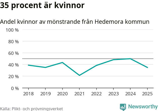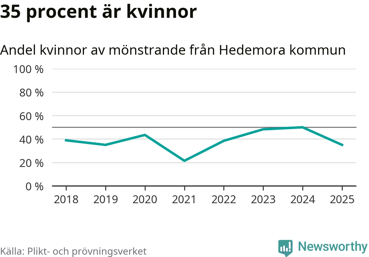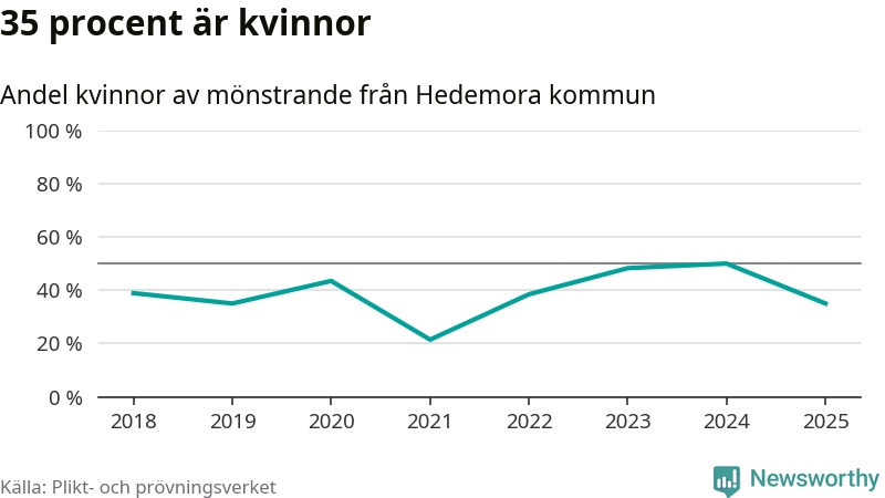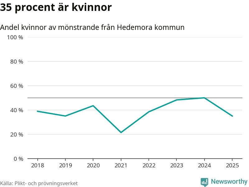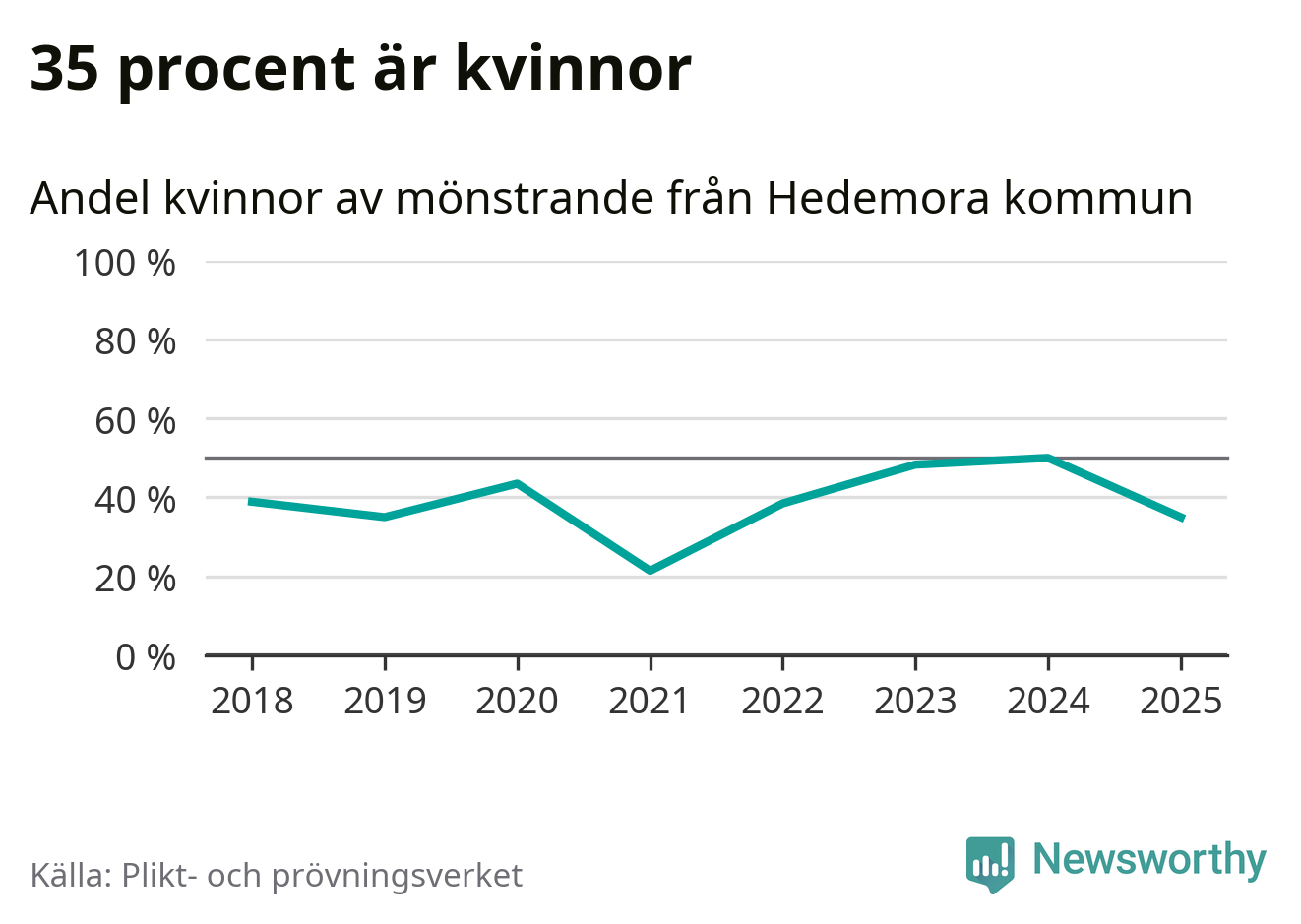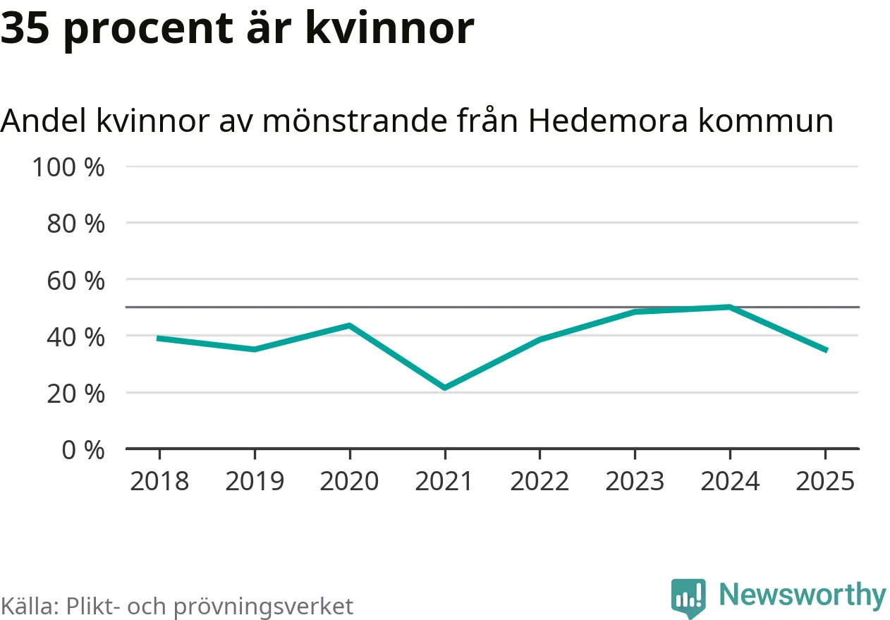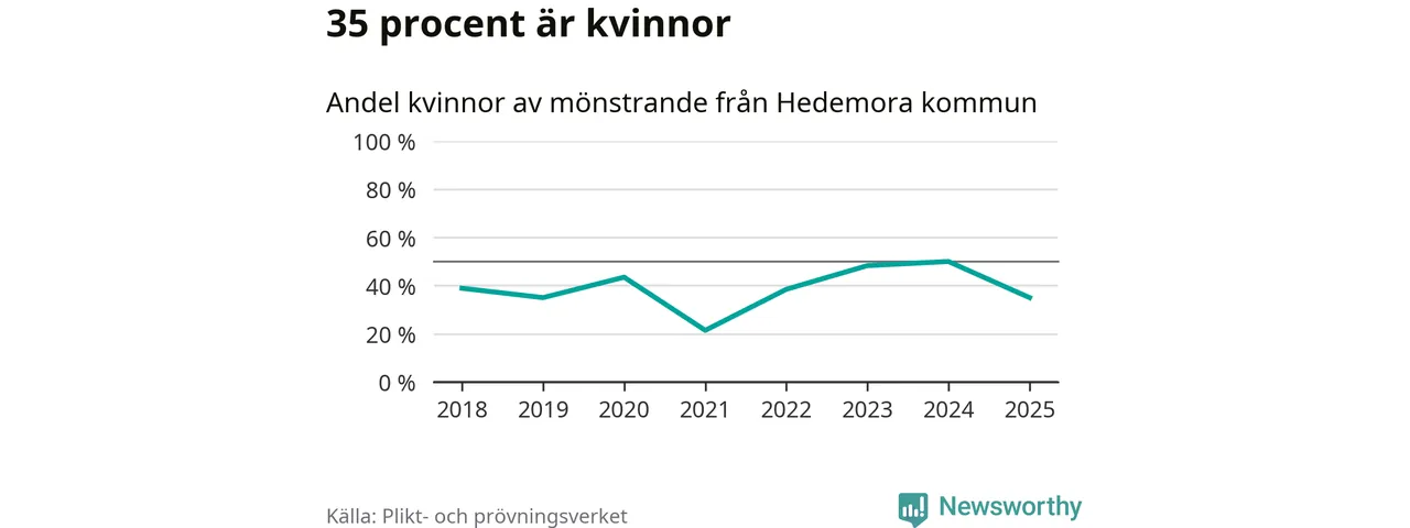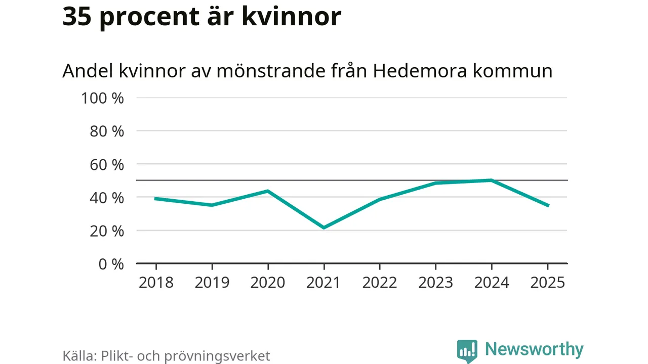 40 personer är det högsta antalet kallade i Hedemora sedan 2018, som är första året med statistik på kommunnivå (värnplikten återinfördes 2017), och två mönstrande fler än 2024. Totalt från Dalarnas län kallas 693 personer i år.