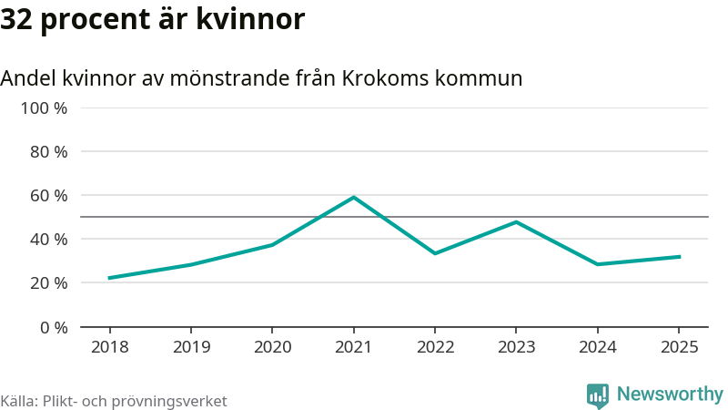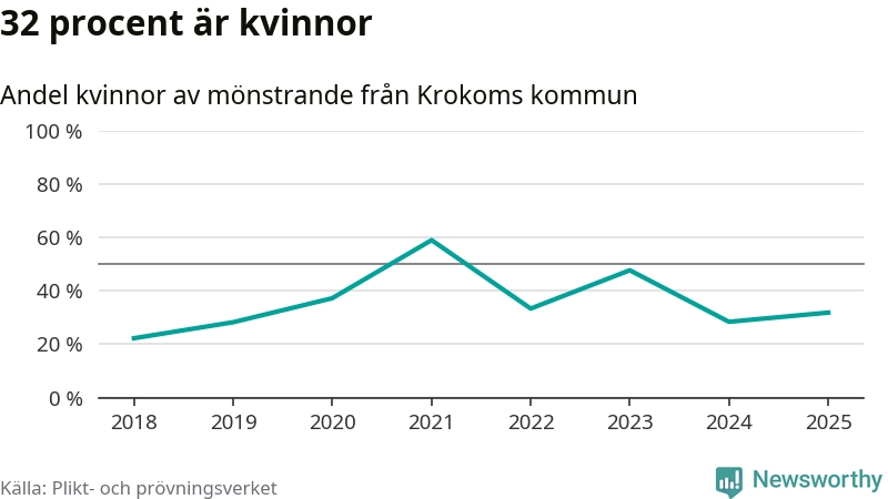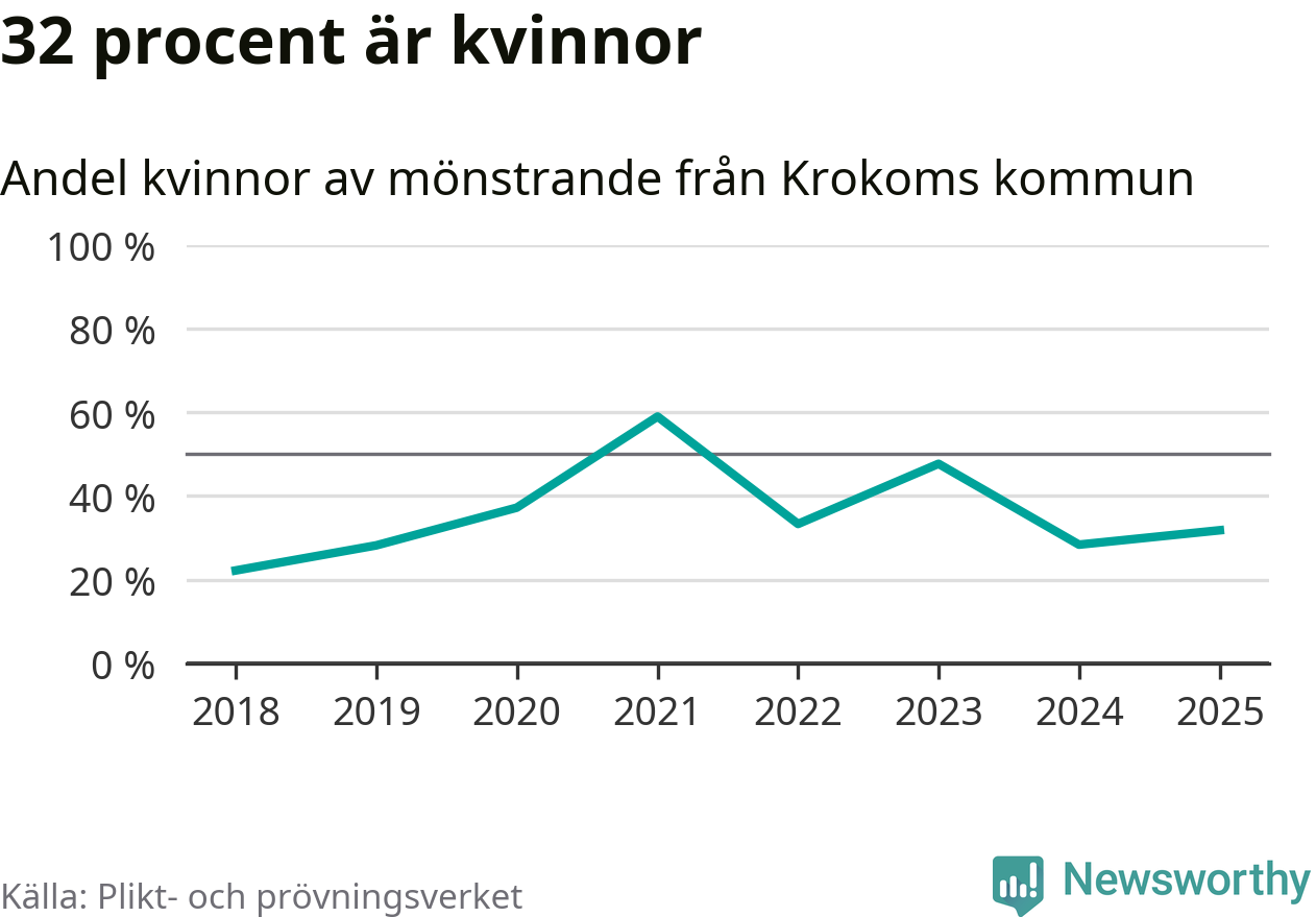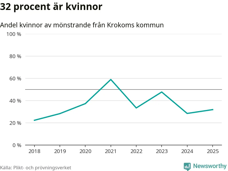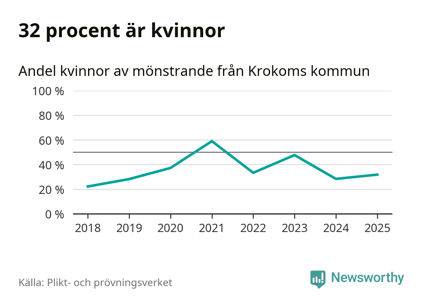 21 av de som kallats till mönstring från Krokom är kvinnor, vilket motsvarar 32 procent av de mönstrande. Som mest har 31 kvinnor kallats från kommunen (2023). I riket som helhet är 28 procent av de mönstrande tjejer.