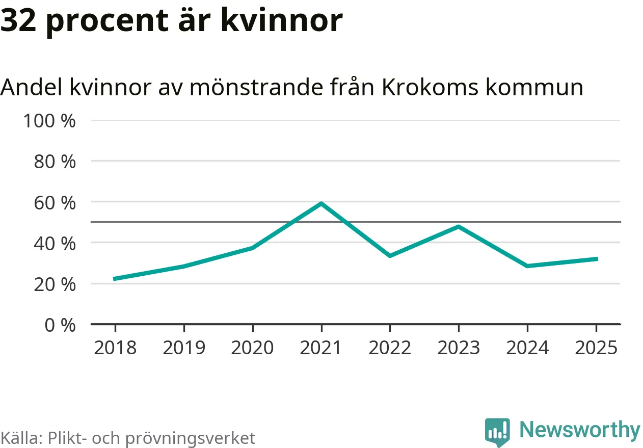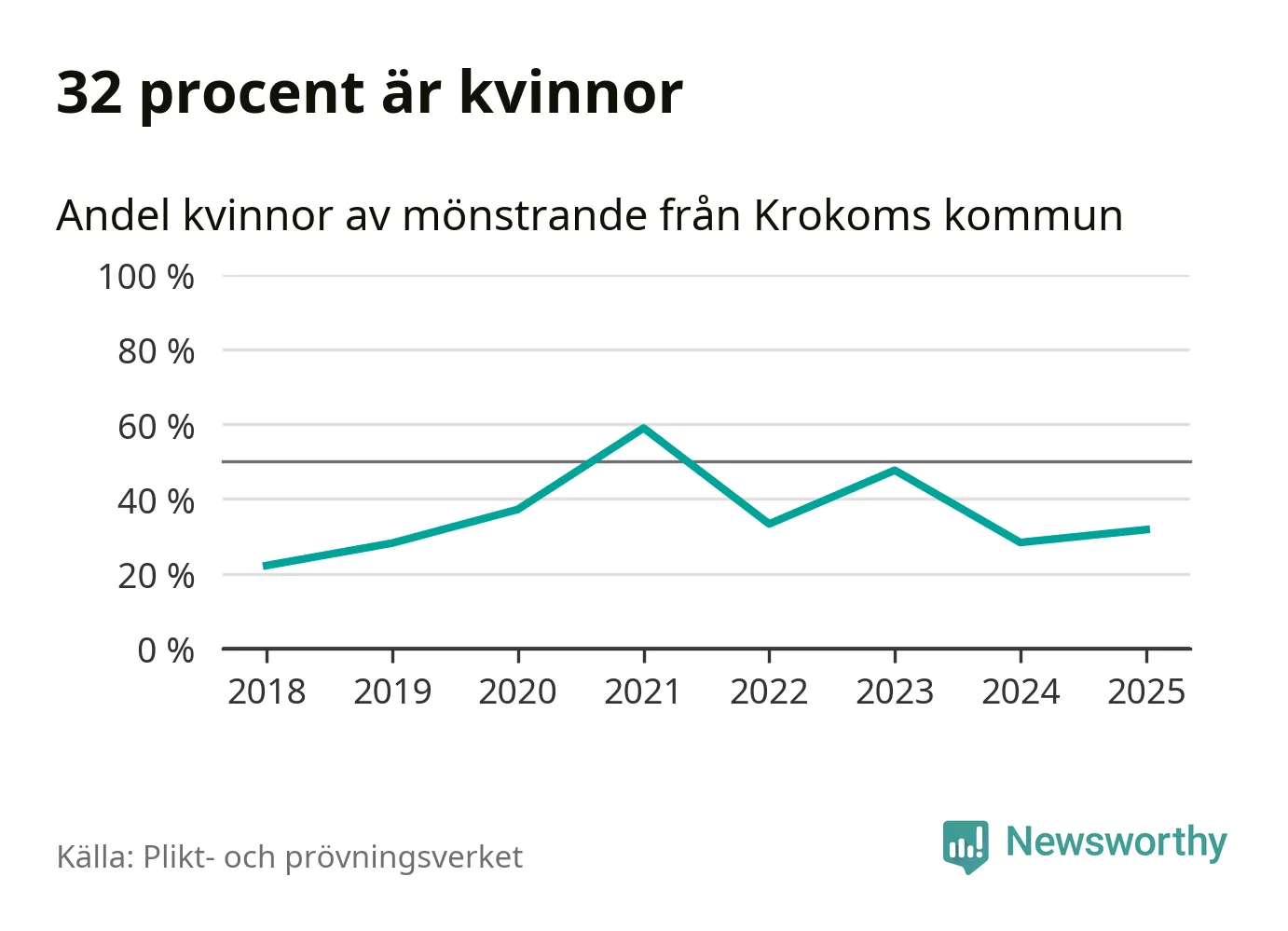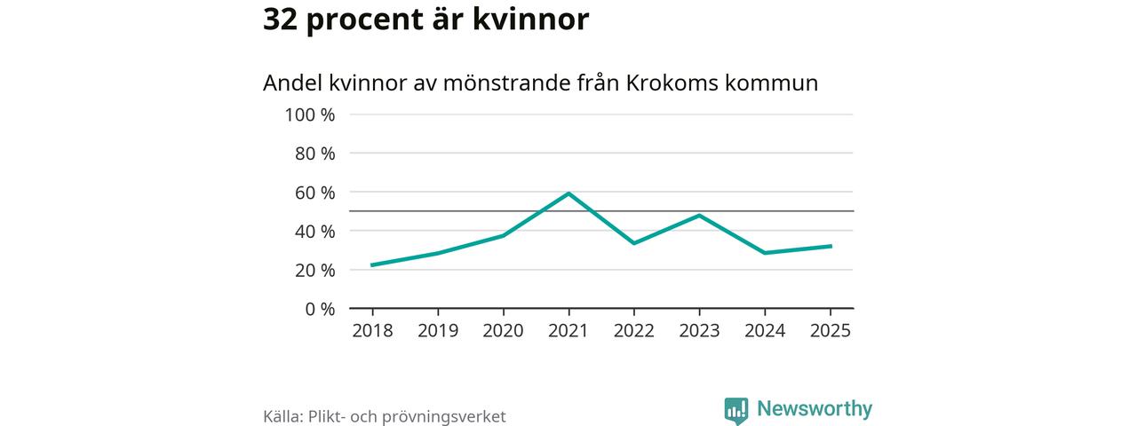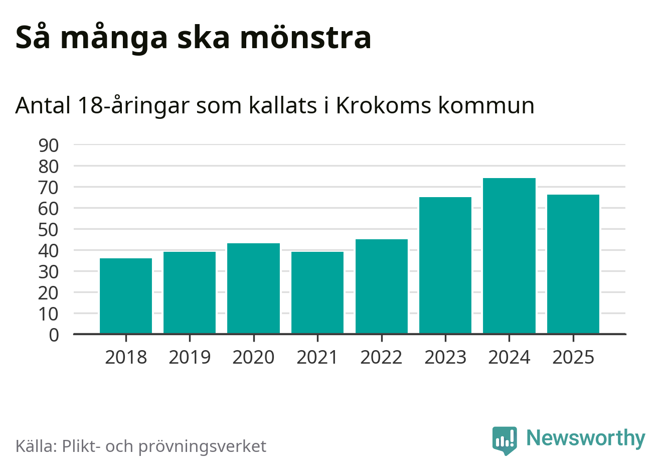 Av de som skrivits in till någon av Försvarmaktens grundutbildningar det senaste året, från juni 2024 till mars i år, kommer 30 (19 män och elva kvinnor) från Krokom. 25 av dessa antogs efter att ha kallats till mönstring.