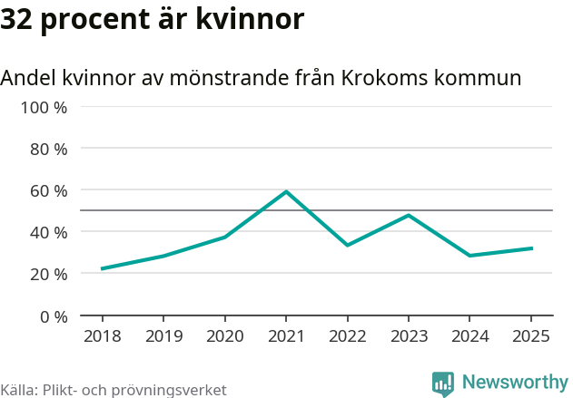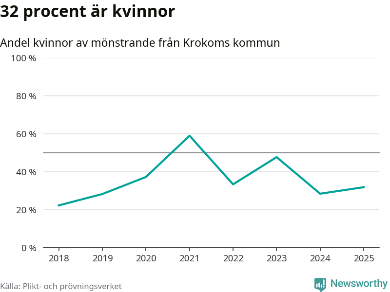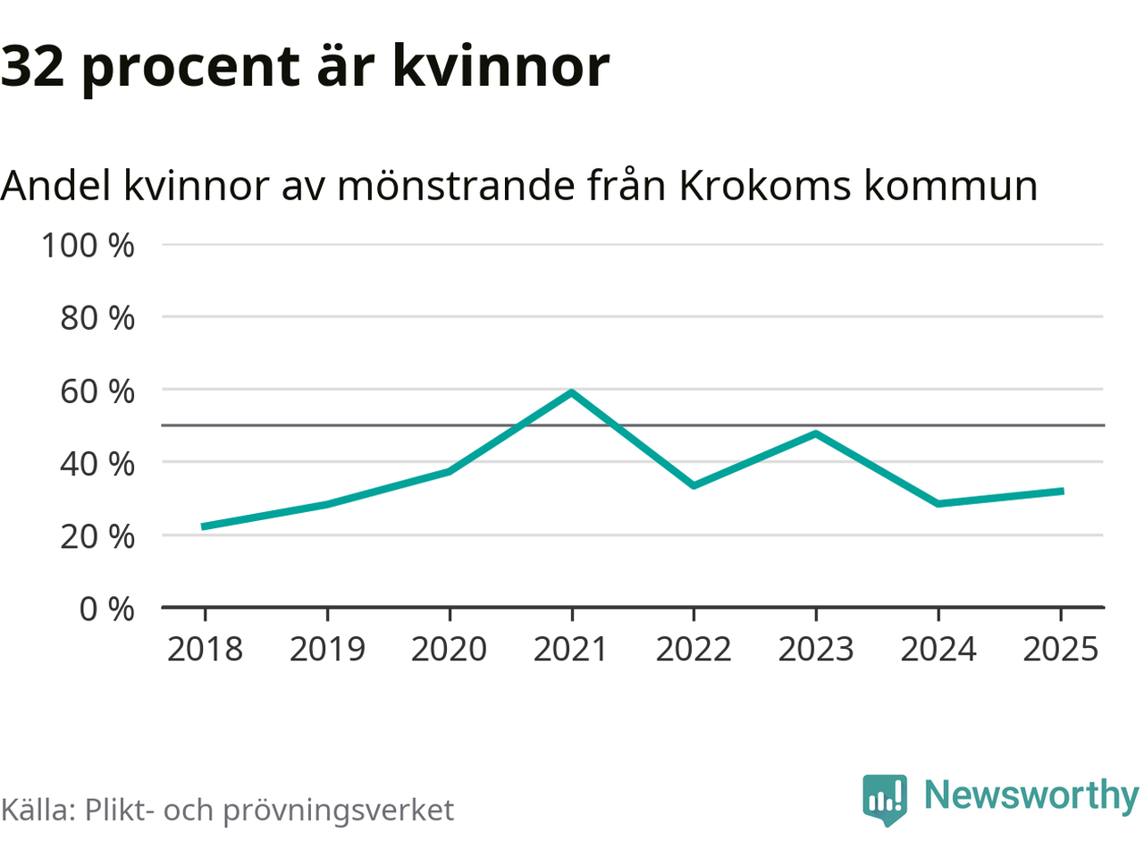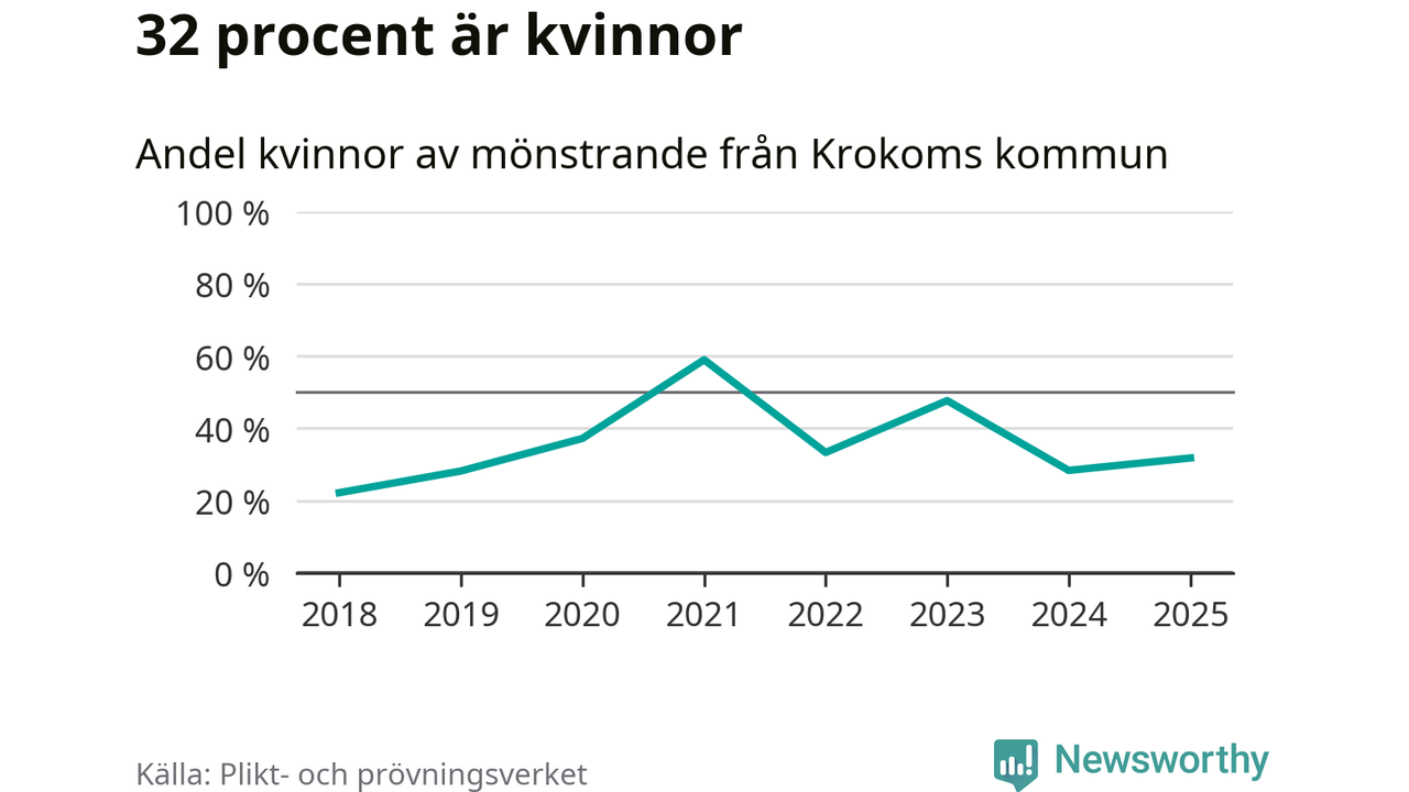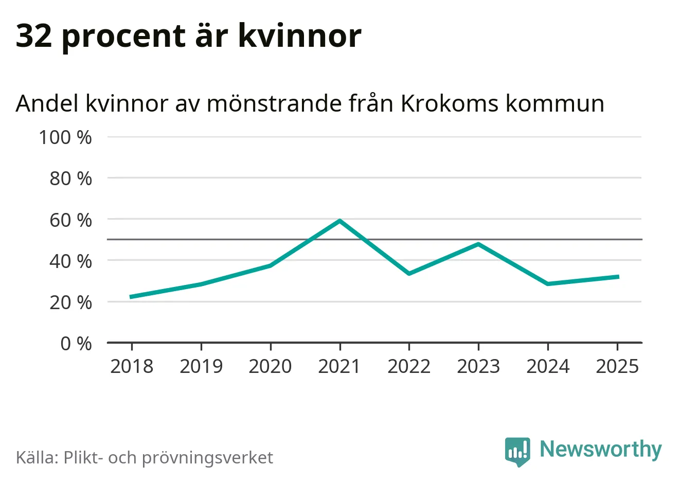 Av de som skrivits in till någon av Försvarmaktens grundutbildningar det senaste året, från juni 2024 till mars i år, kommer 30 (19 män och elva kvinnor) från Krokom. 25 av dessa antogs efter att ha kallats till mönstring.