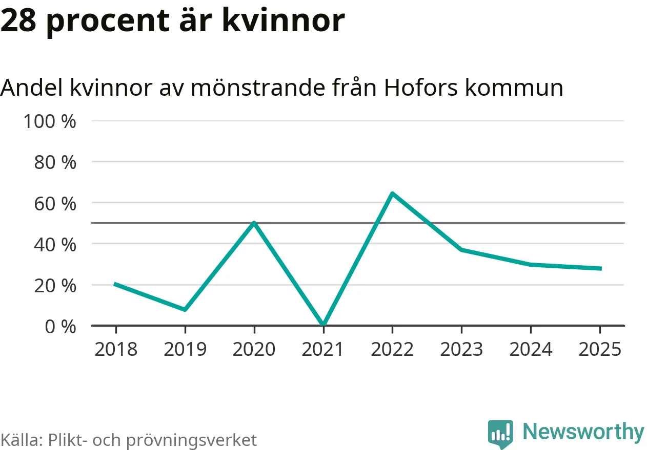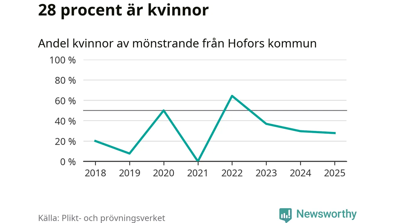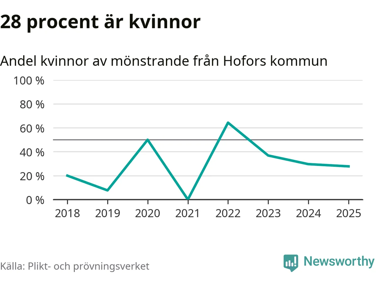 Av de som skrivits in till någon av Försvarmaktens grundutbildningar det senaste året, från juni 2024 till mars i år, kommer sex (fyra män och två kvinnor) från Hofors. Fem av dessa antogs efter att ha kallats till mönstring.