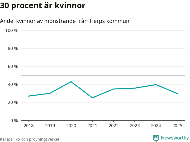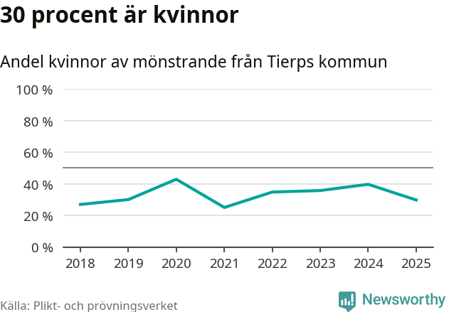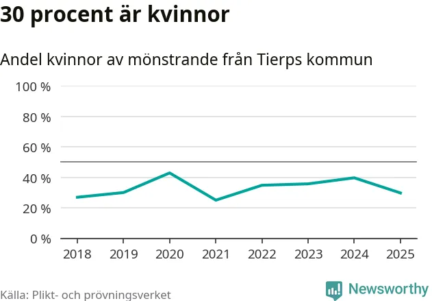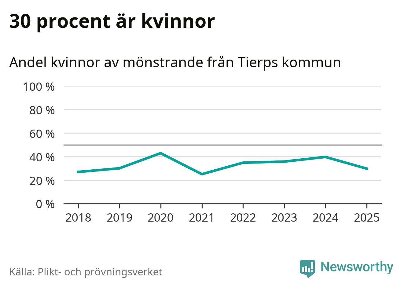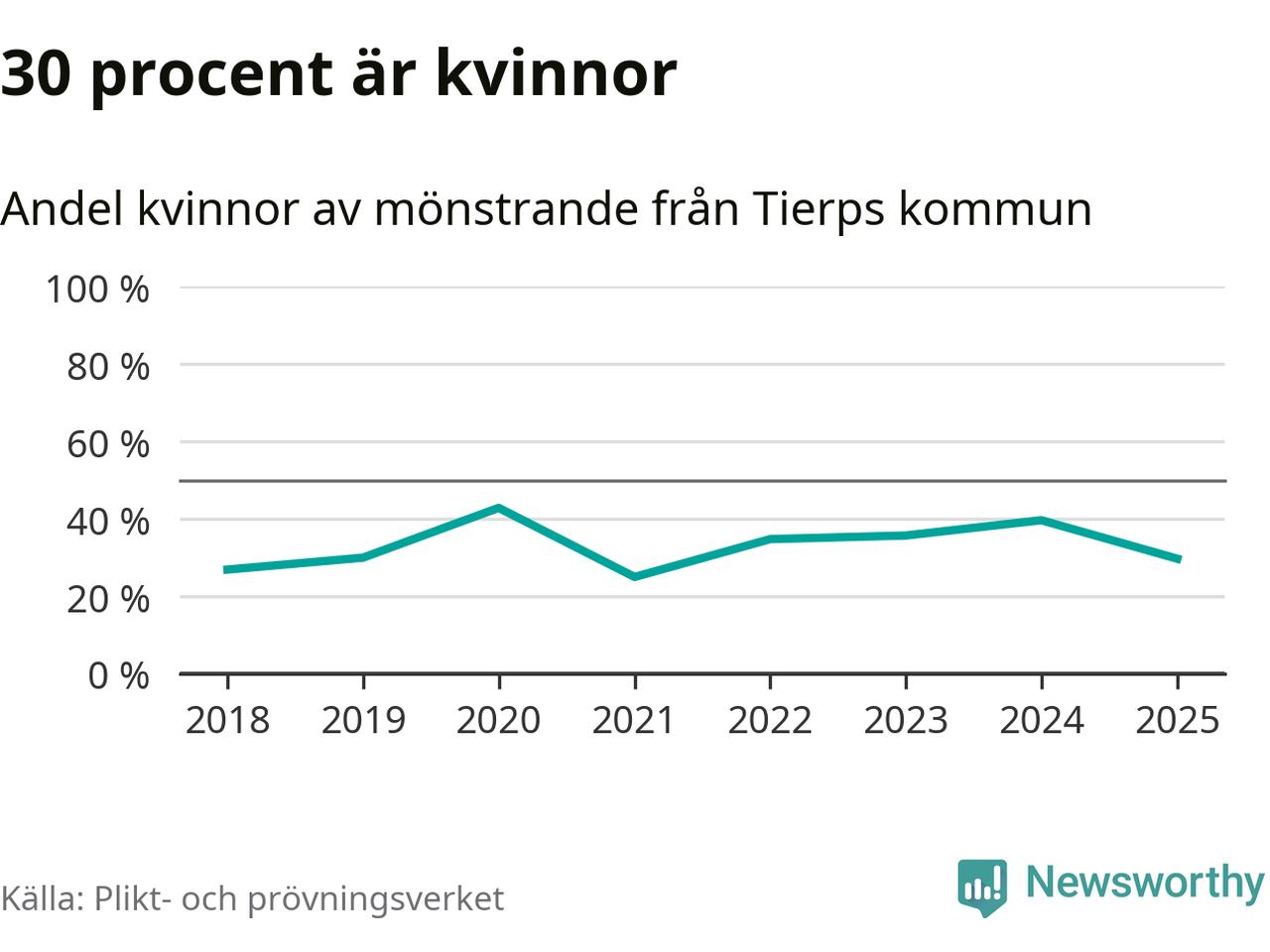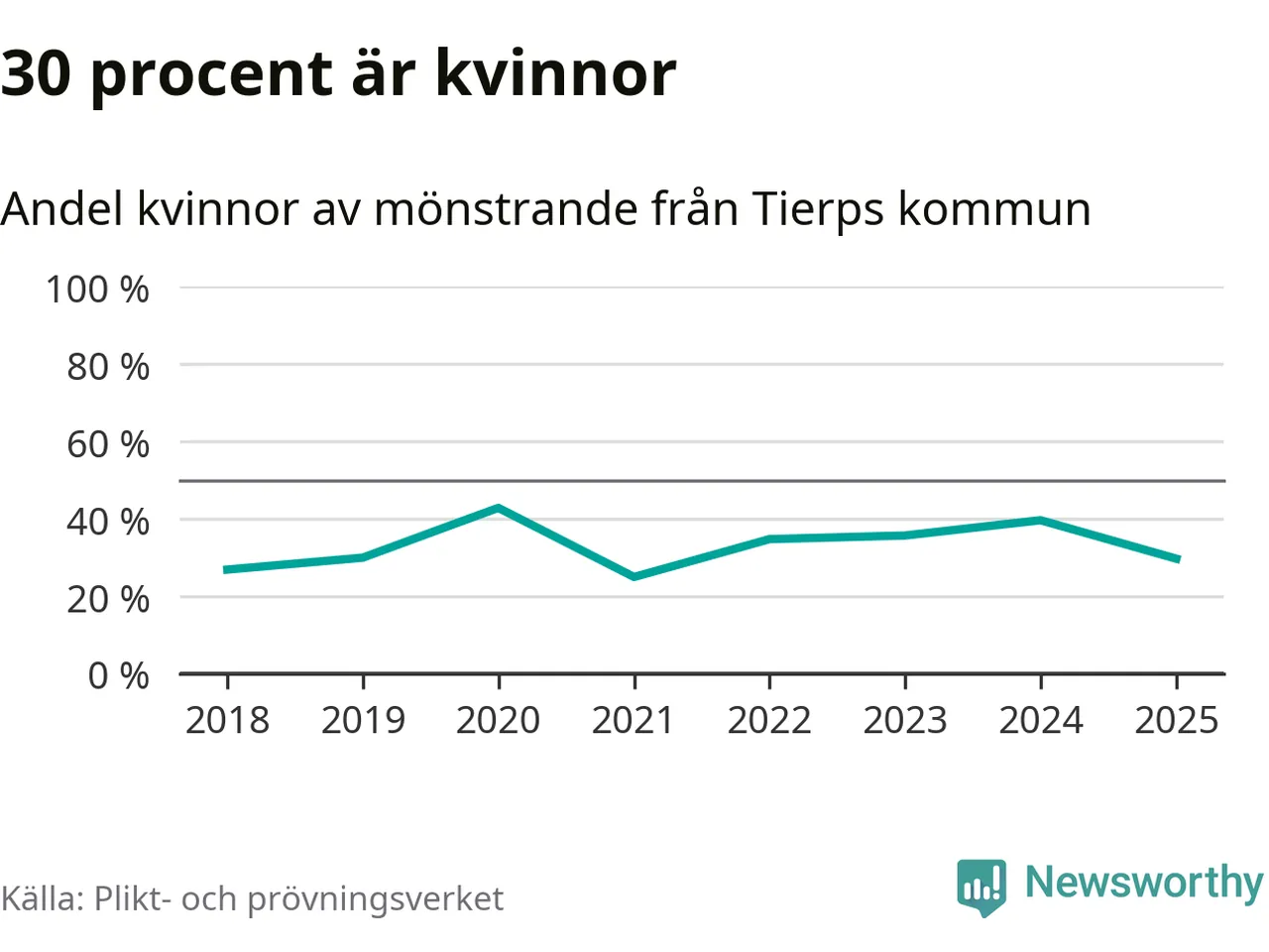 Nu kallas omkring 28 200 svenskar födda 2007 till mönstring. Och 37 av dem kommer från Tierp, enligt ny statistik från Plikt- och prövningsverket. Det innebär att var sjätte invånare i åldersgruppen i kommunen kallas till mönstring. Det är en lägre andel än i Uppsala län totalt. I riket som helhet kallas nästan var fjärde person i årskullen.