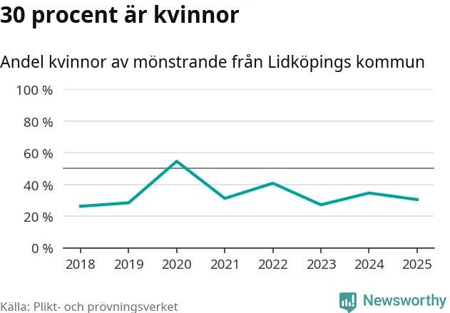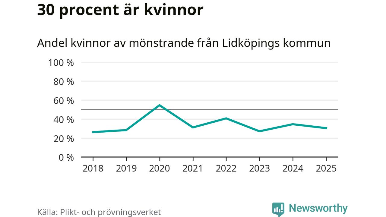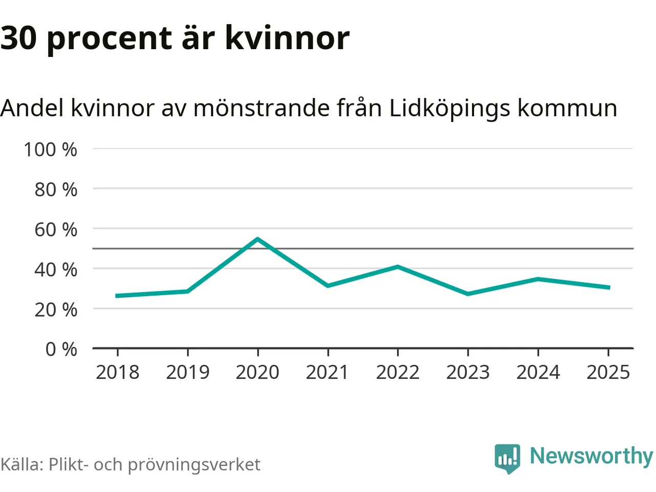 Av de som skrivits in till någon av Försvarmaktens grundutbildningar det senaste året, från juni 2024 till mars i år, kommer 39 (34 män och fem kvinnor) från Lidköping. 37 av dessa antogs efter att ha kallats till mönstring.