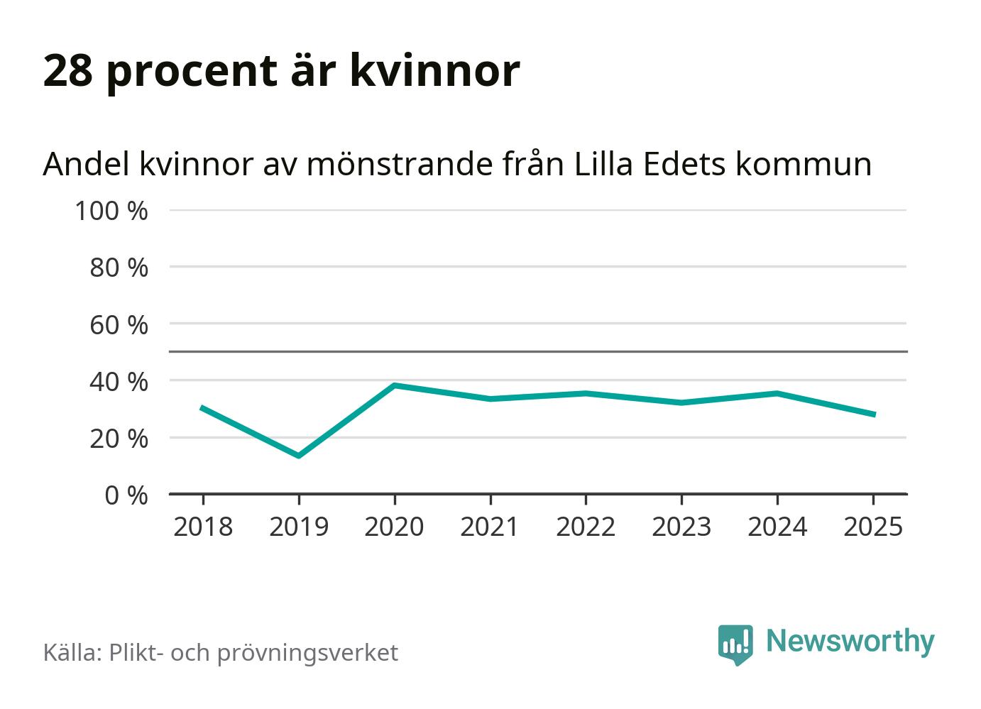 Sju av de som kallats till mönstring från Lilla Edet är kvinnor, vilket motsvarar 28 procent av de mönstrande. Som mest har tolv kvinnor kallats från kommunen (2024). I riket som helhet är 28 procent av de mönstrande tjejer.