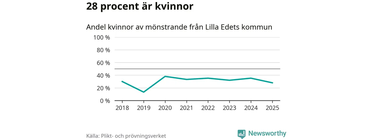 Av de som skrivits in till någon av Försvarmaktens grundutbildningar det senaste året, från juni 2024 till mars i år, kommer fem (fyra män och en kvinna) från Lilla Edet. Fyra av dessa antogs efter att ha kallats till mönstring.