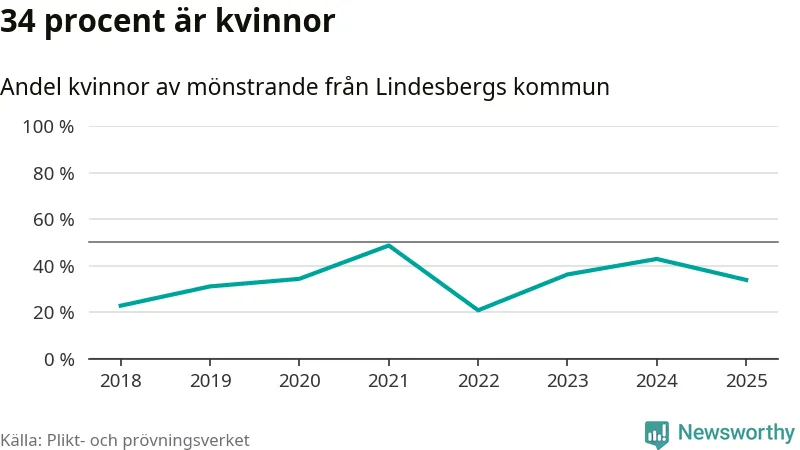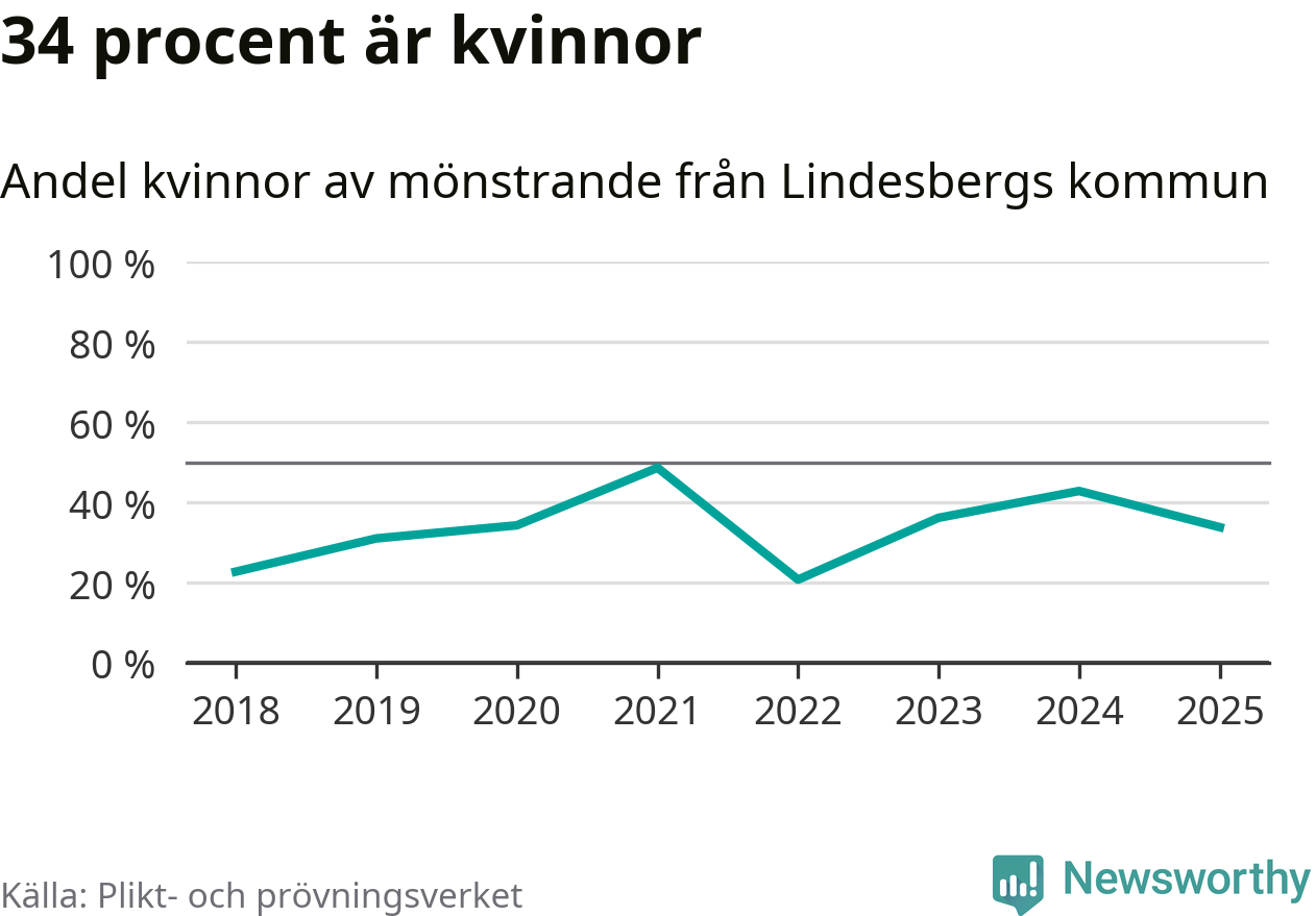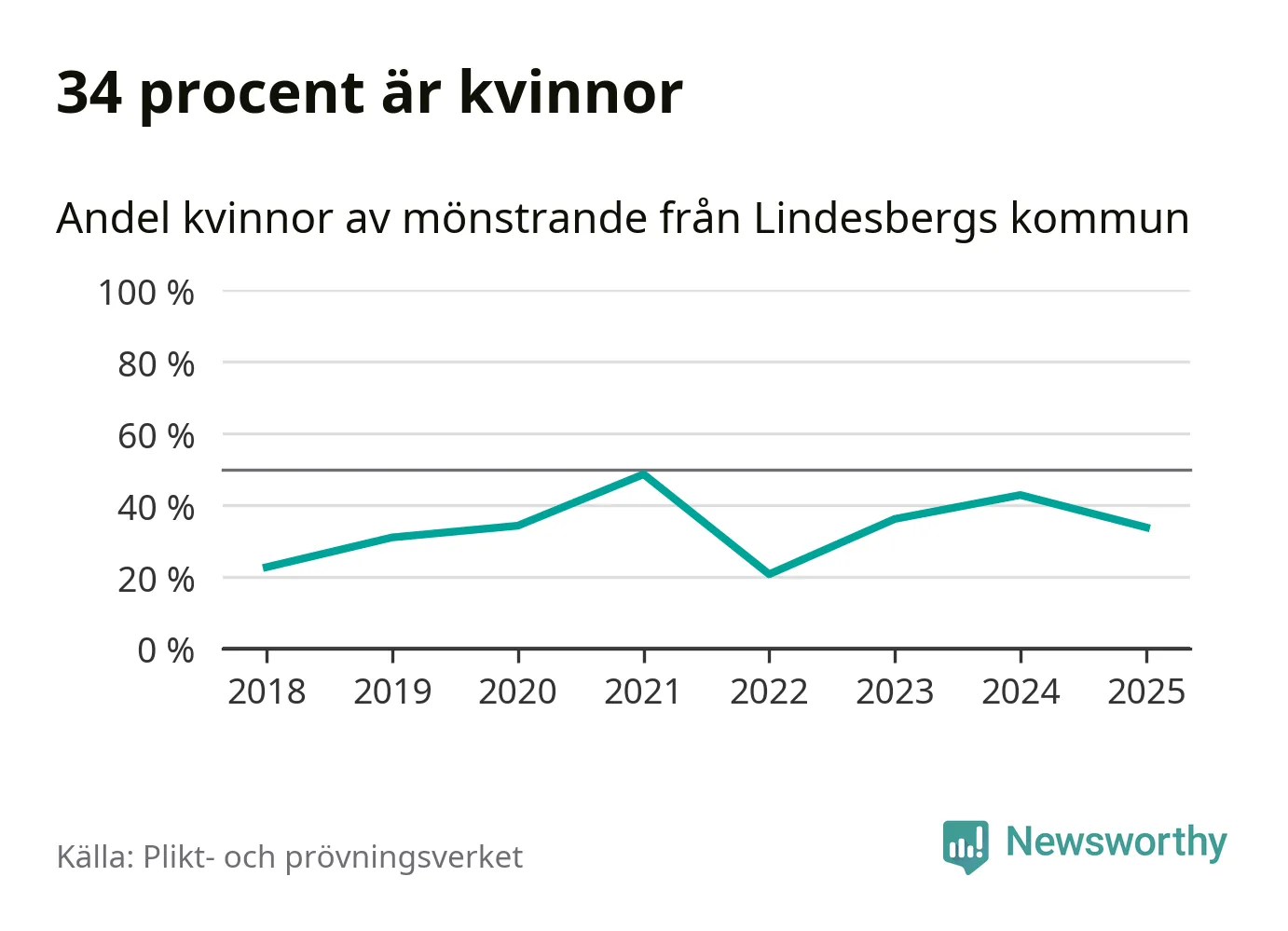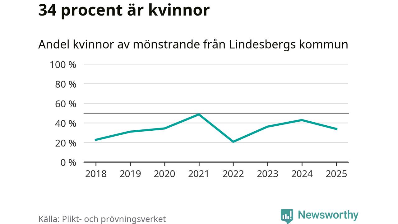 23 av de som kallats till mönstring från Lindesberg är kvinnor, vilket motsvarar 34 procent av de mönstrande. Som mest har 24 kvinnor kallats från kommunen (2024). I riket som helhet är 28 procent av de mönstrande tjejer.