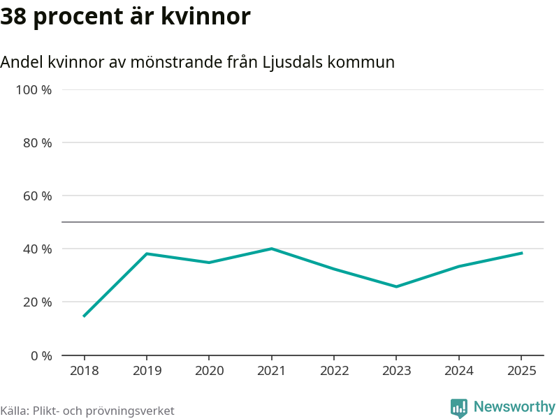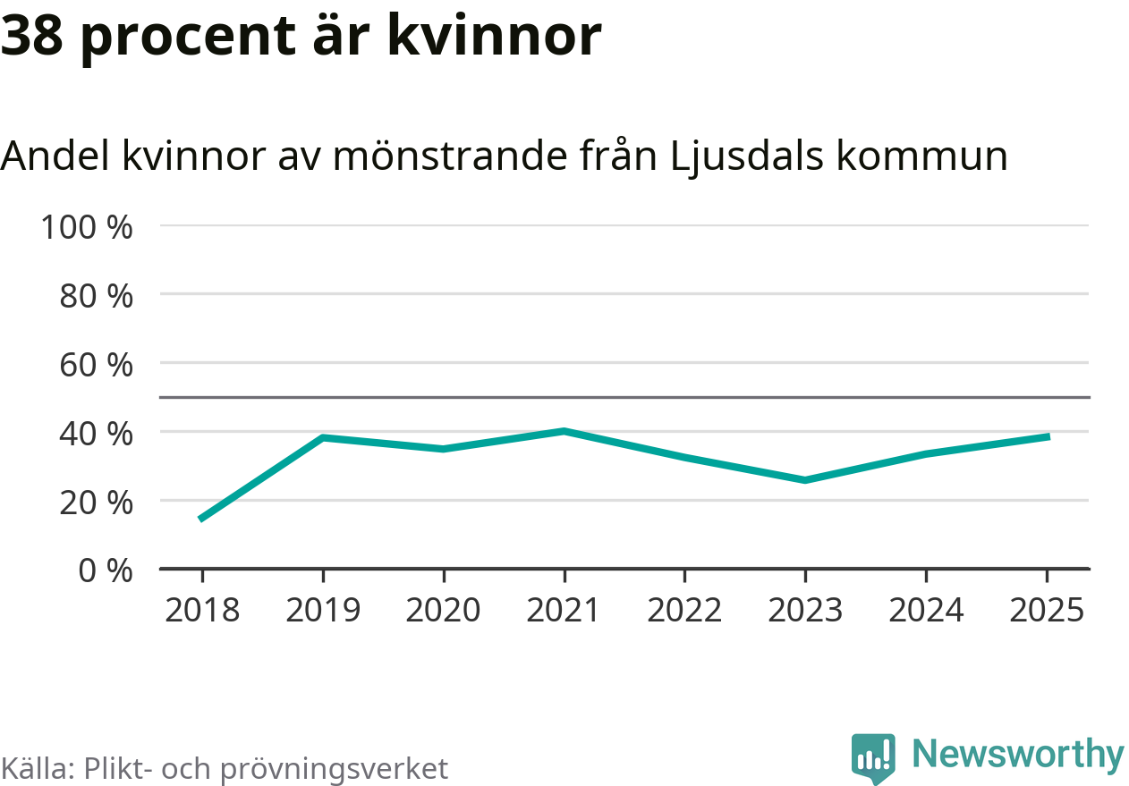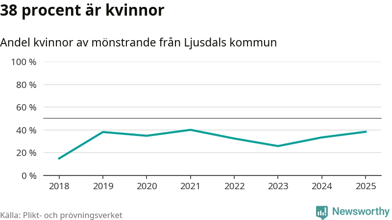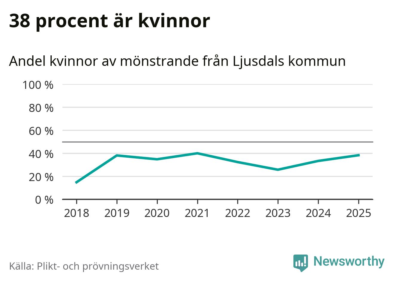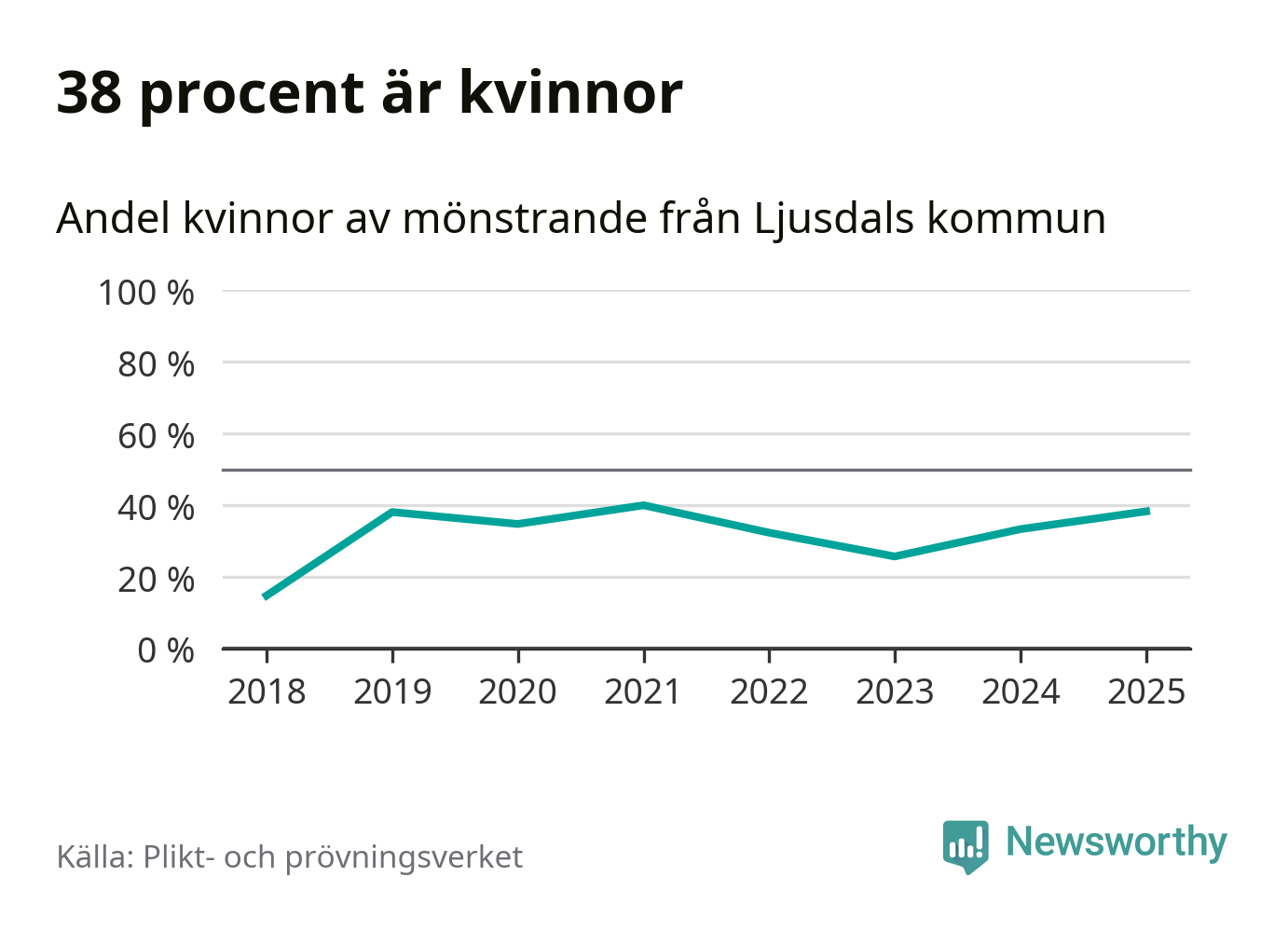 47 personer är det högsta antalet kallade i Ljusdal sedan 2018, som är första året med statistik på kommunnivå (värnplikten återinfördes 2017), och två mönstrande fler än 2024. Totalt från Gävleborgs län kallas 710 personer i år.