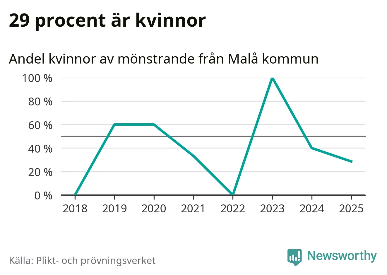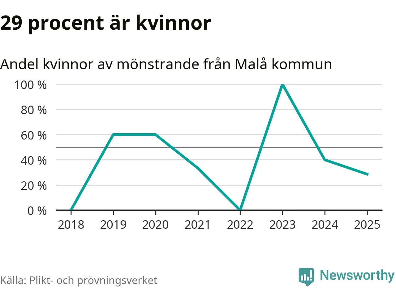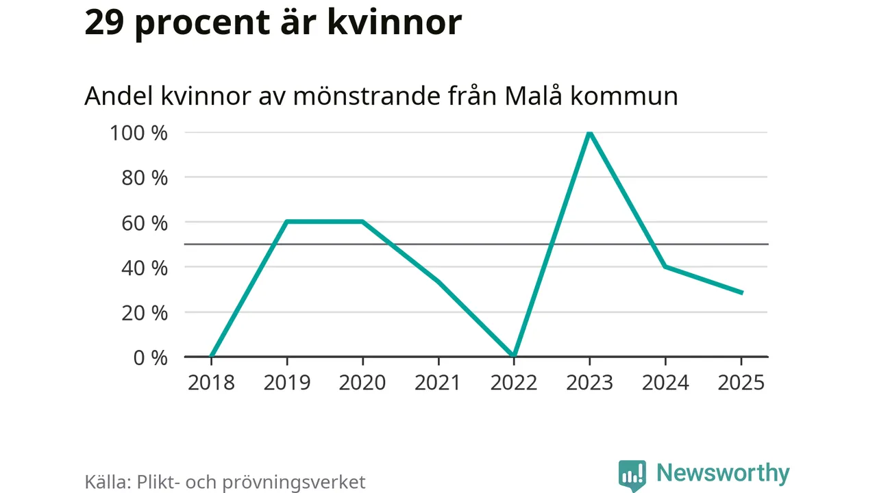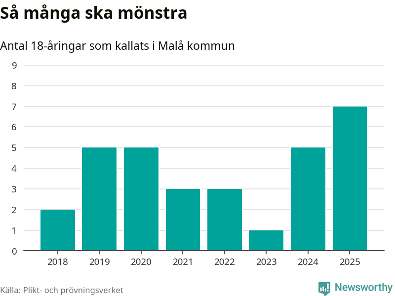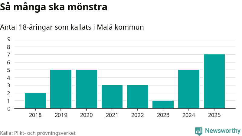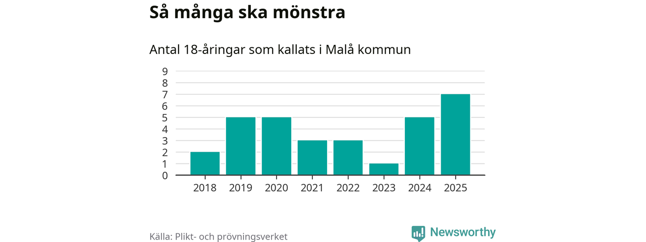 Sju personer är det högsta antalet kallade i Malå sedan 2018, som är första året med statistik på kommunnivå (värnplikten återinfördes 2017), och två mönstrande fler än 2024. Totalt från Västerbottens län kallas 671 personer i år.
