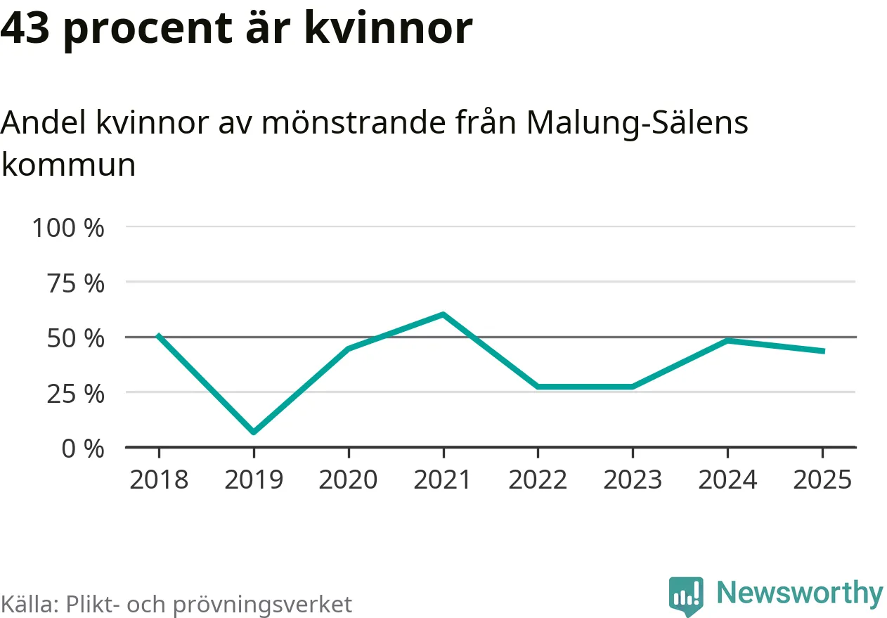 Av de som skrivits in till någon av Försvarmaktens grundutbildningar det senaste året, från juni 2024 till mars i år, kommer sju (alla män) från Malung-Sälen. Sex av dessa antogs efter att ha kallats till mönstring.