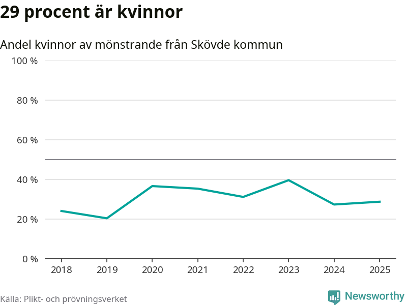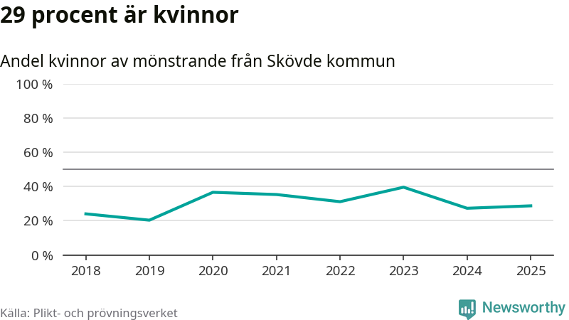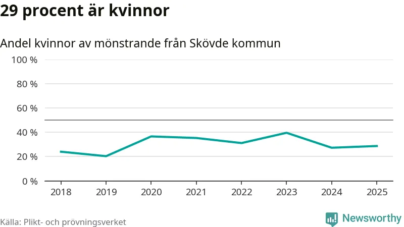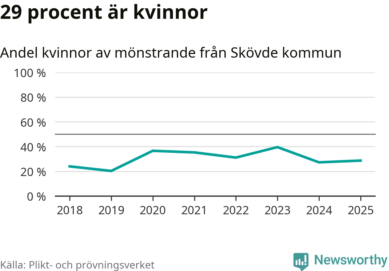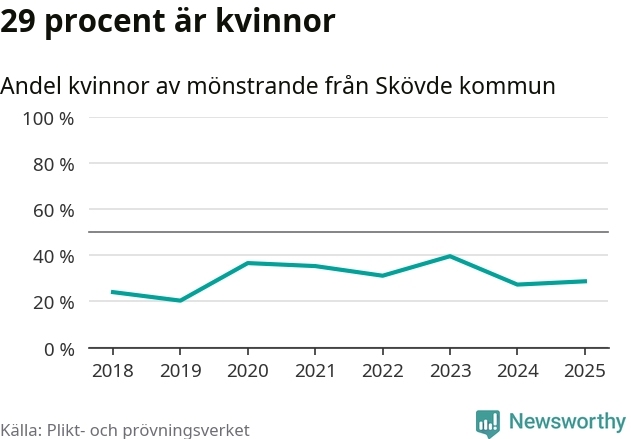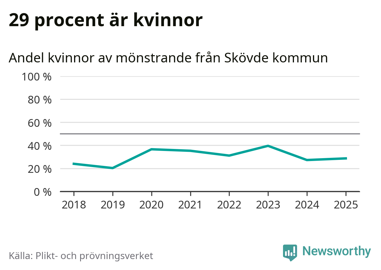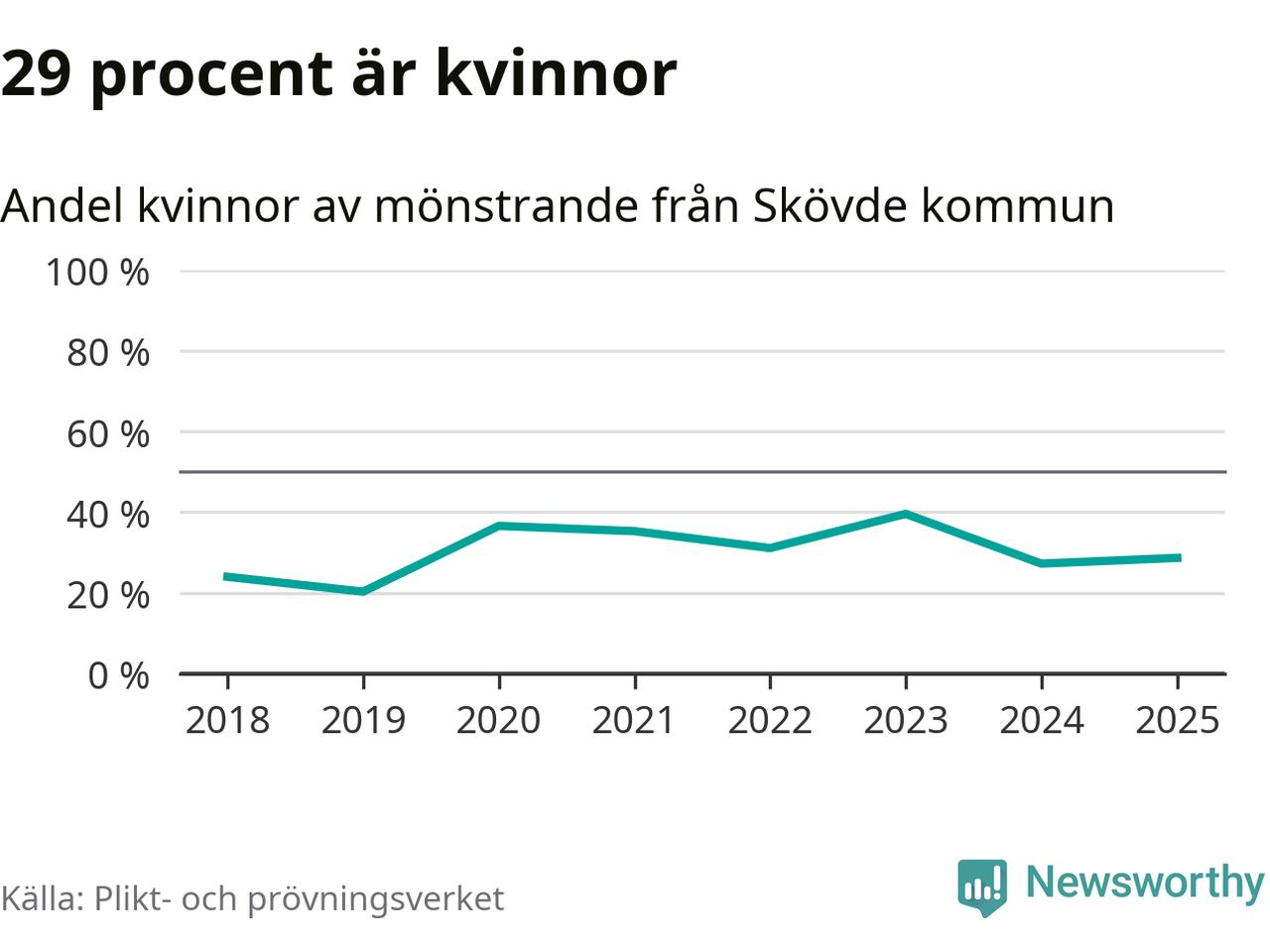 Av de som skrivits in till någon av Försvarmaktens grundutbildningar det senaste året, från juni 2024 till mars i år, kommer 53 (38 män och 15 kvinnor) från Skövde. 46 av dessa antogs efter att ha kallats till mönstring.
