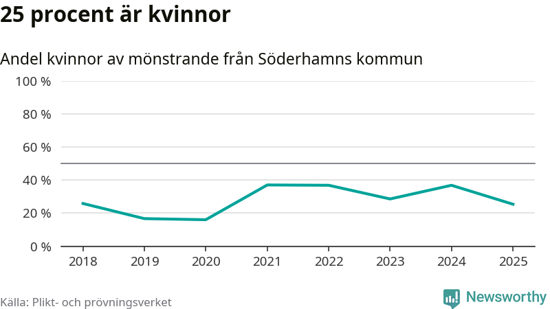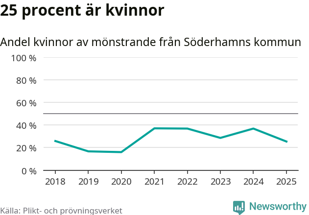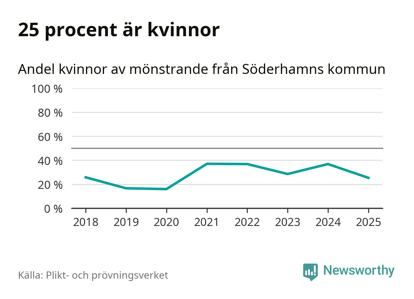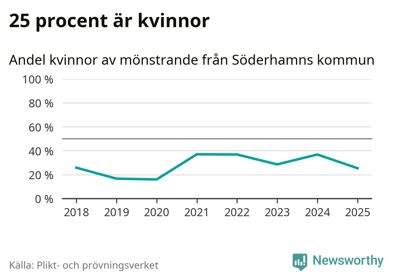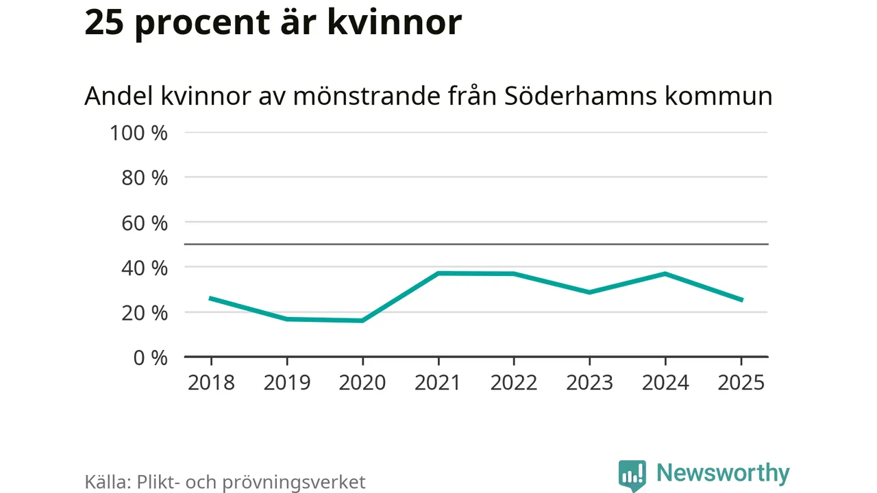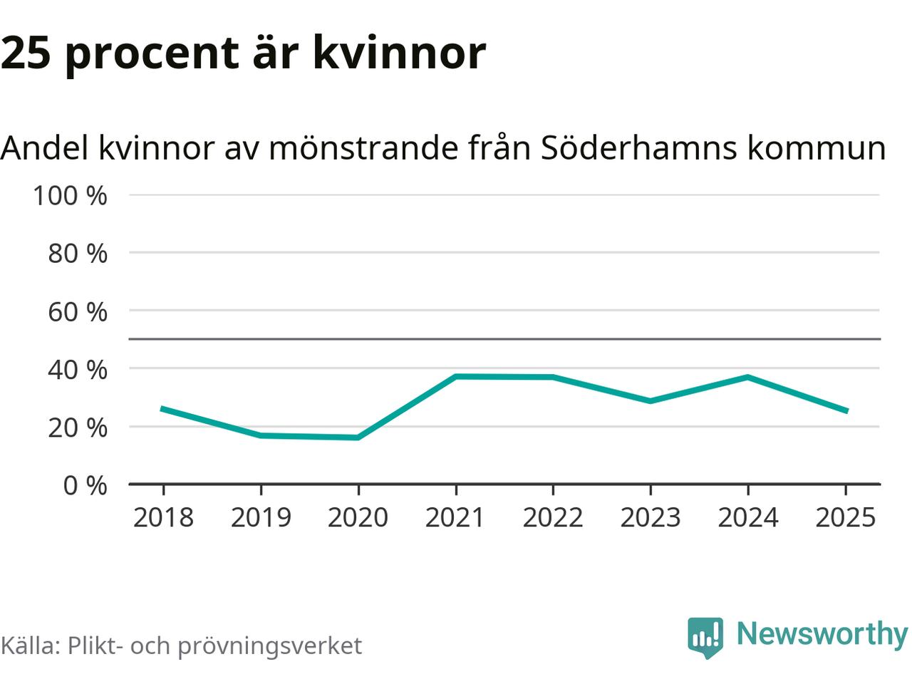 Av de som skrivits in till någon av Försvarmaktens grundutbildningar det senaste året, från juni 2024 till mars i år, kommer 16 (tolv män och fyra kvinnor) från Söderhamn. 15 av dessa antogs efter att ha kallats till mönstring.