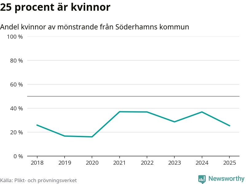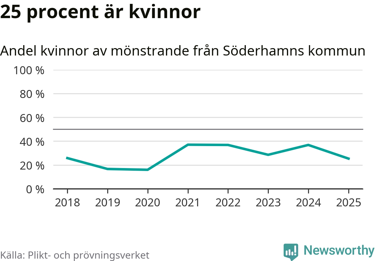 Nu kallas omkring 28 200 svenskar födda 2007 till mönstring. Och 67 av dem kommer från Söderhamn, enligt ny statistik från Plikt- och prövningsverket. Det innebär att var fjärde invånare i åldersgruppen i kommunen kallas till mönstring. Det är en högre andel än i Gävleborg totalt. I riket som helhet kallas nästan var fjärde person i årskullen.