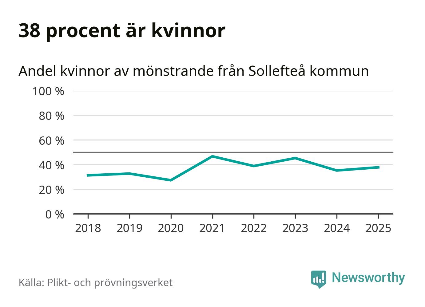 20 av de som kallats till mönstring från Sollefteå är kvinnor, vilket motsvarar 38 procent av de mönstrande. I absoluta tal är det fler kvinnor än något år sedan värnplikten återinfördes, men 2021 var en större andel av de mönstrande från kommunen kvinnor (47 procent). I riket som helhet är 28 procent av de mönstrande tjejer.
