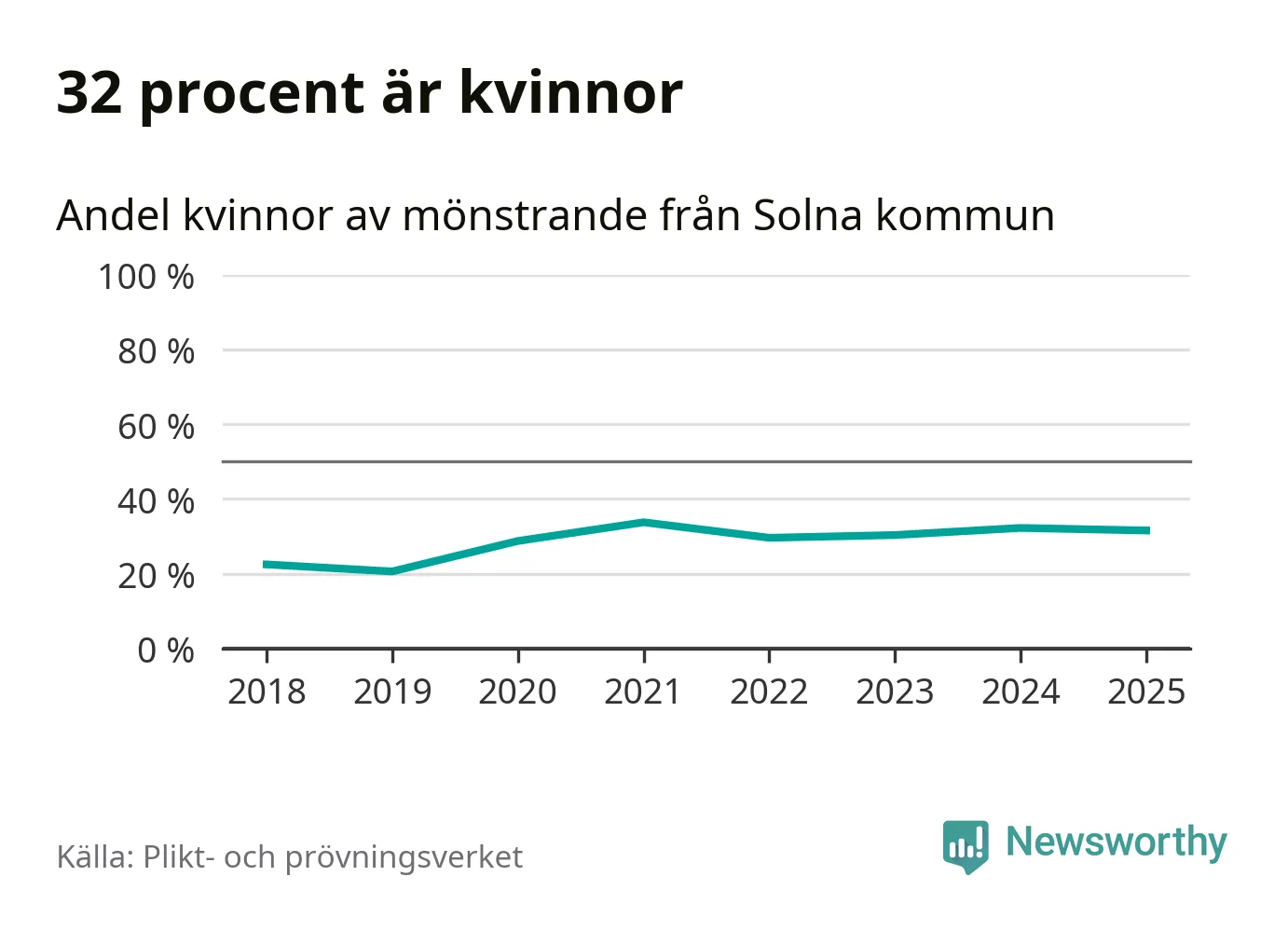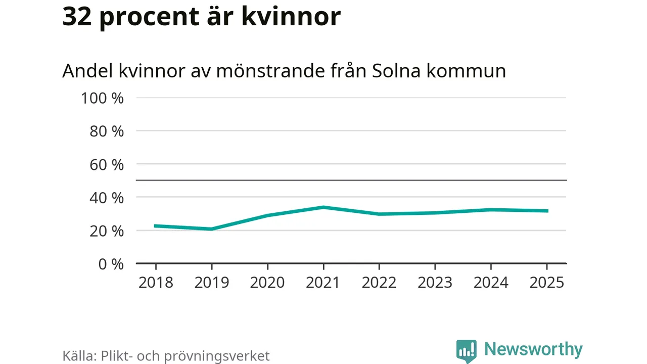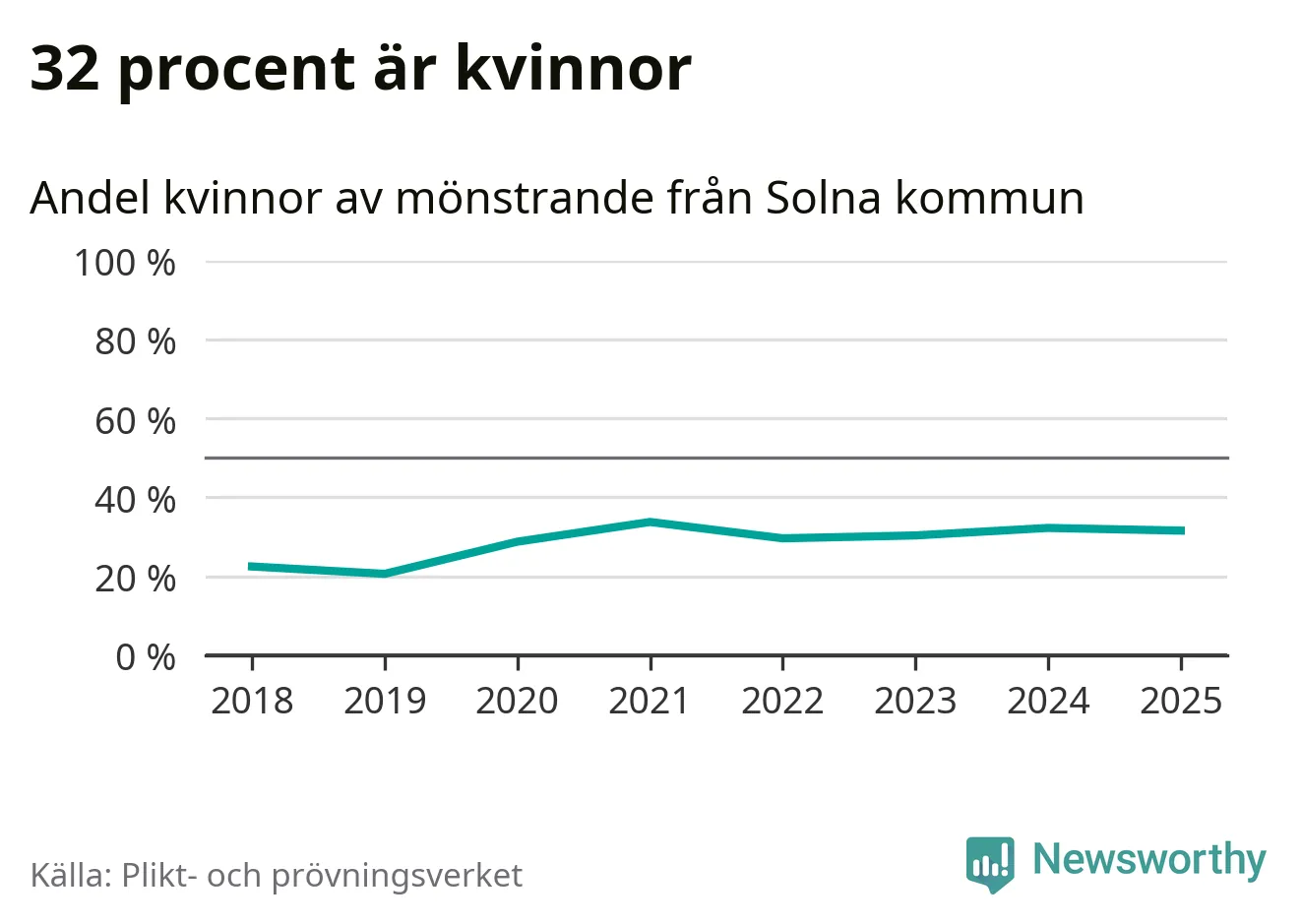Av de som skrivits in till någon av Försvarmaktens grundutbildningar det senaste året, från juni 2024 till mars i år, kommer 34 (28 män och sex kvinnor) från Solna. 26 av dessa antogs efter att ha kallats till mönstring.