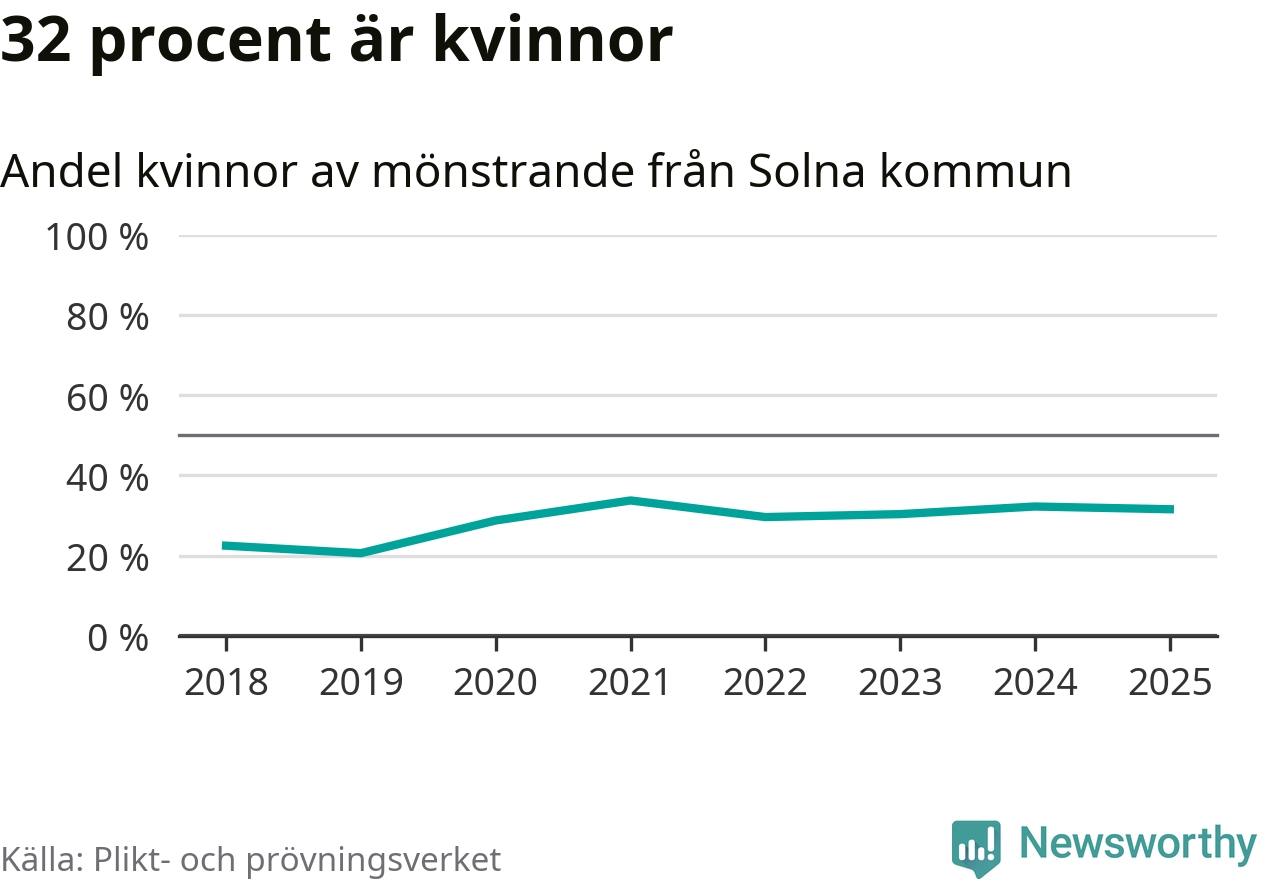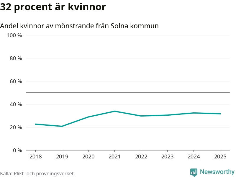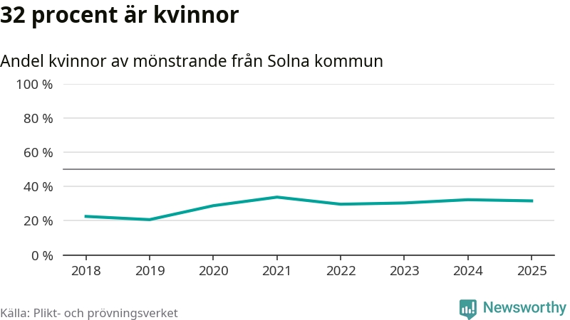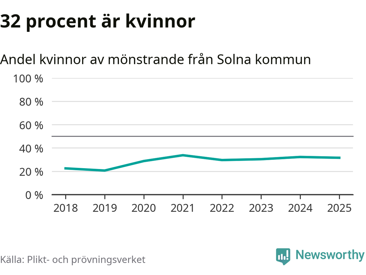 Av de som skrivits in till någon av Försvarmaktens grundutbildningar det senaste året, från juni 2024 till mars i år, kommer 34 (28 män och sex kvinnor) från Solna. 26 av dessa antogs efter att ha kallats till mönstring.