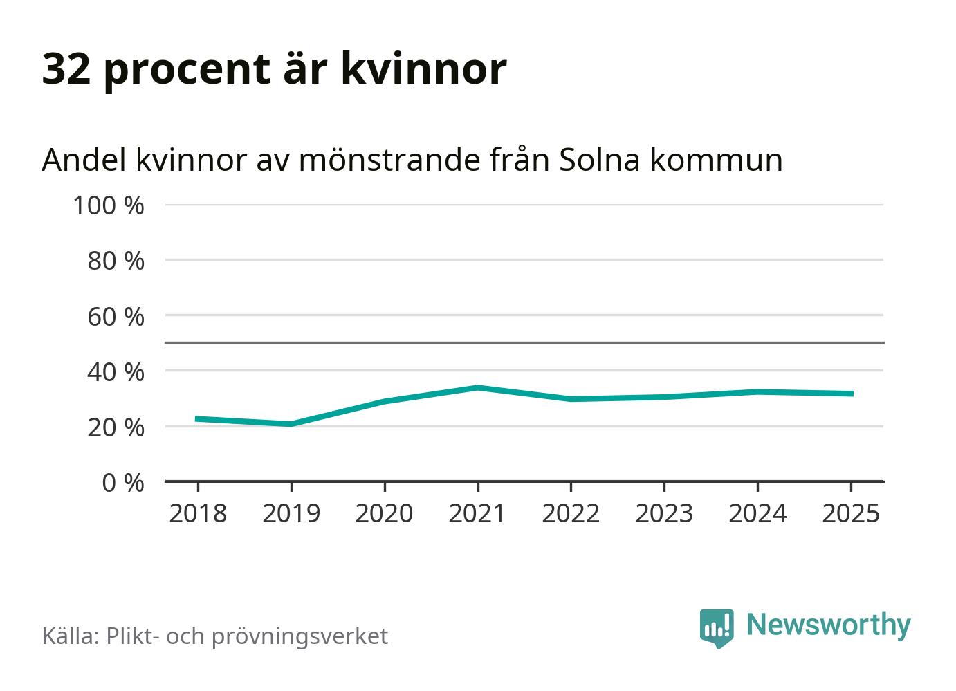 48 av de som kallats till mönstring från Solna är kvinnor, vilket motsvarar 32 procent av de mönstrande. I absoluta tal är det fler kvinnor än något år sedan värnplikten återinfördes, men 2021 var en större andel av de mönstrande från kommunen kvinnor (34 procent). I riket som helhet är 28 procent av de mönstrande tjejer.