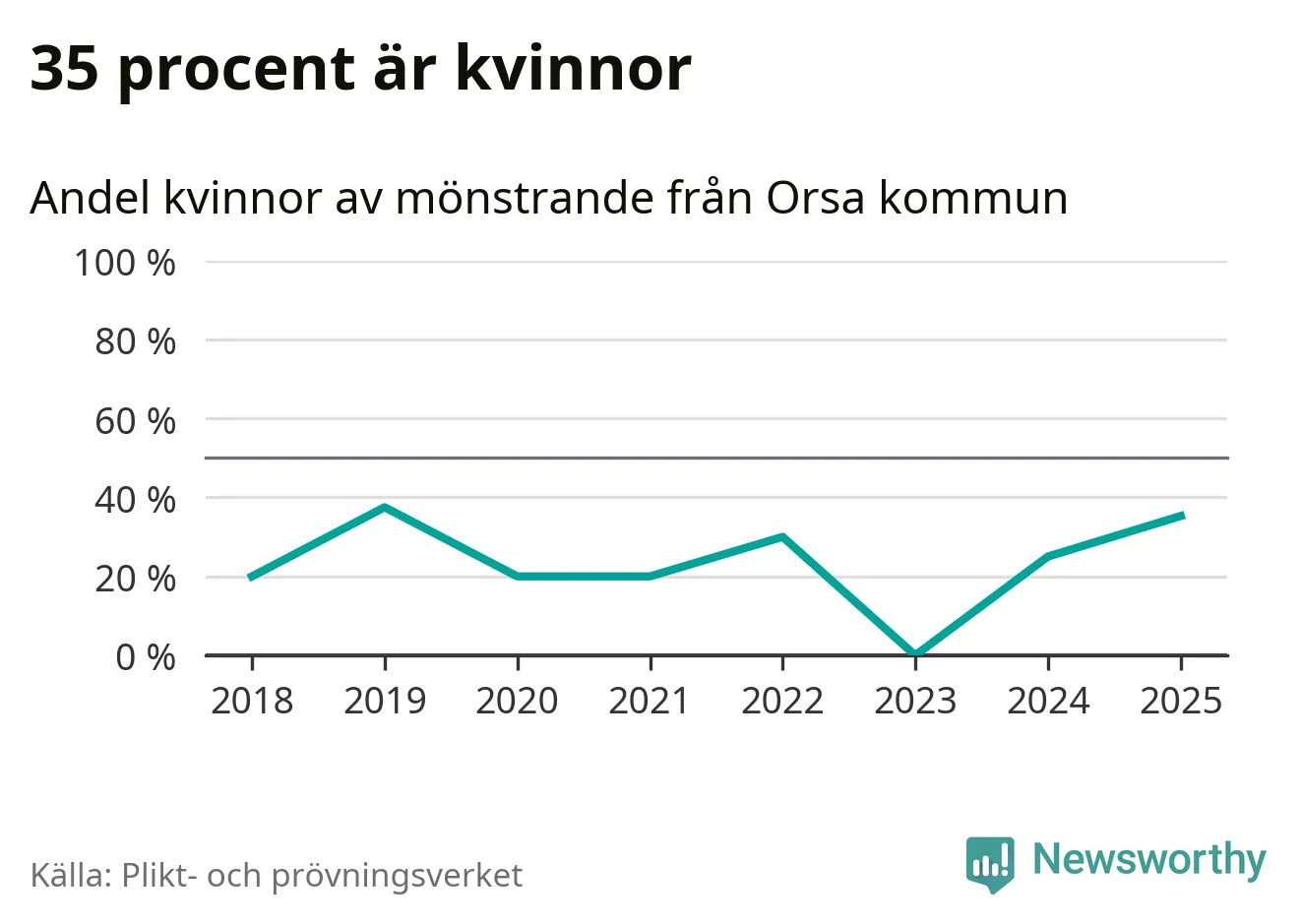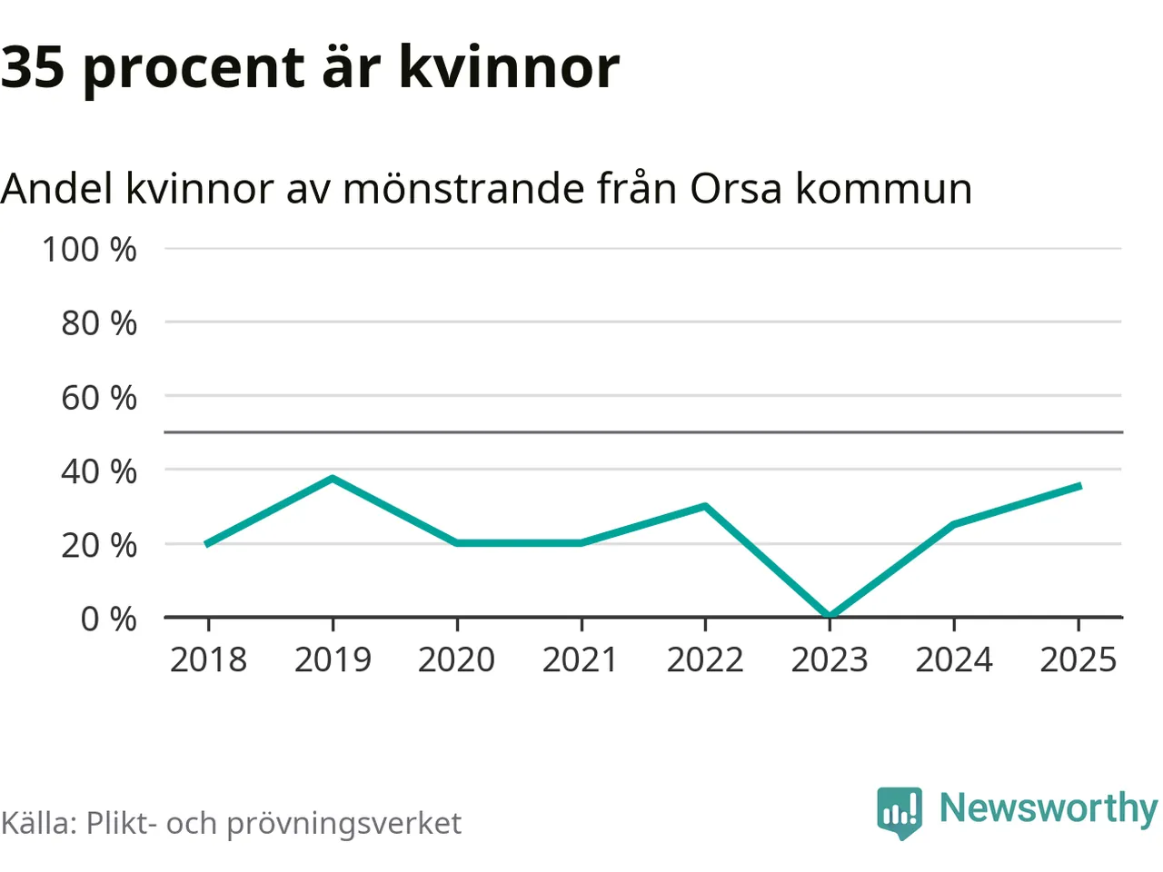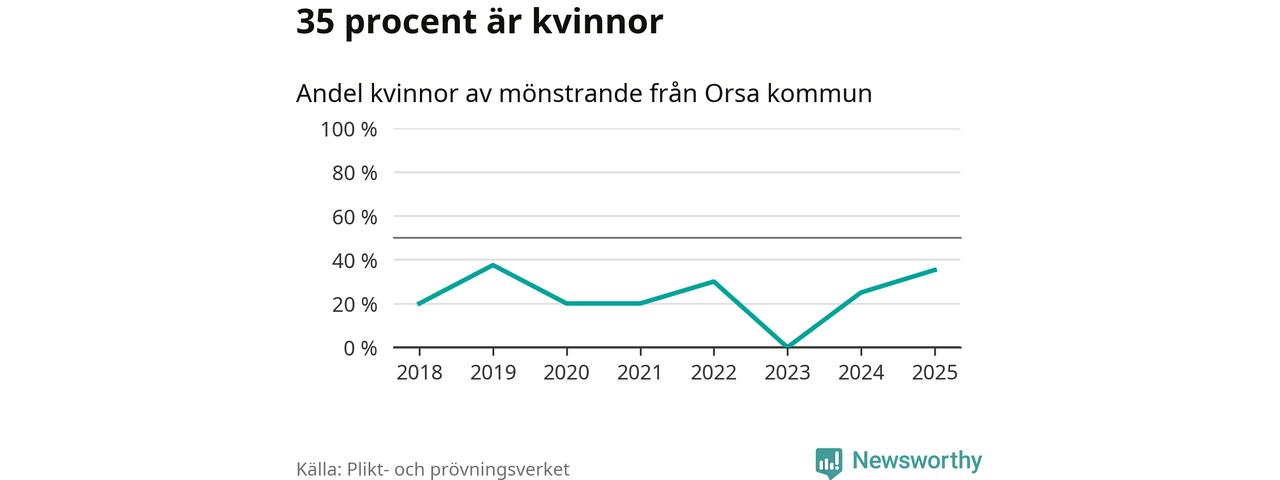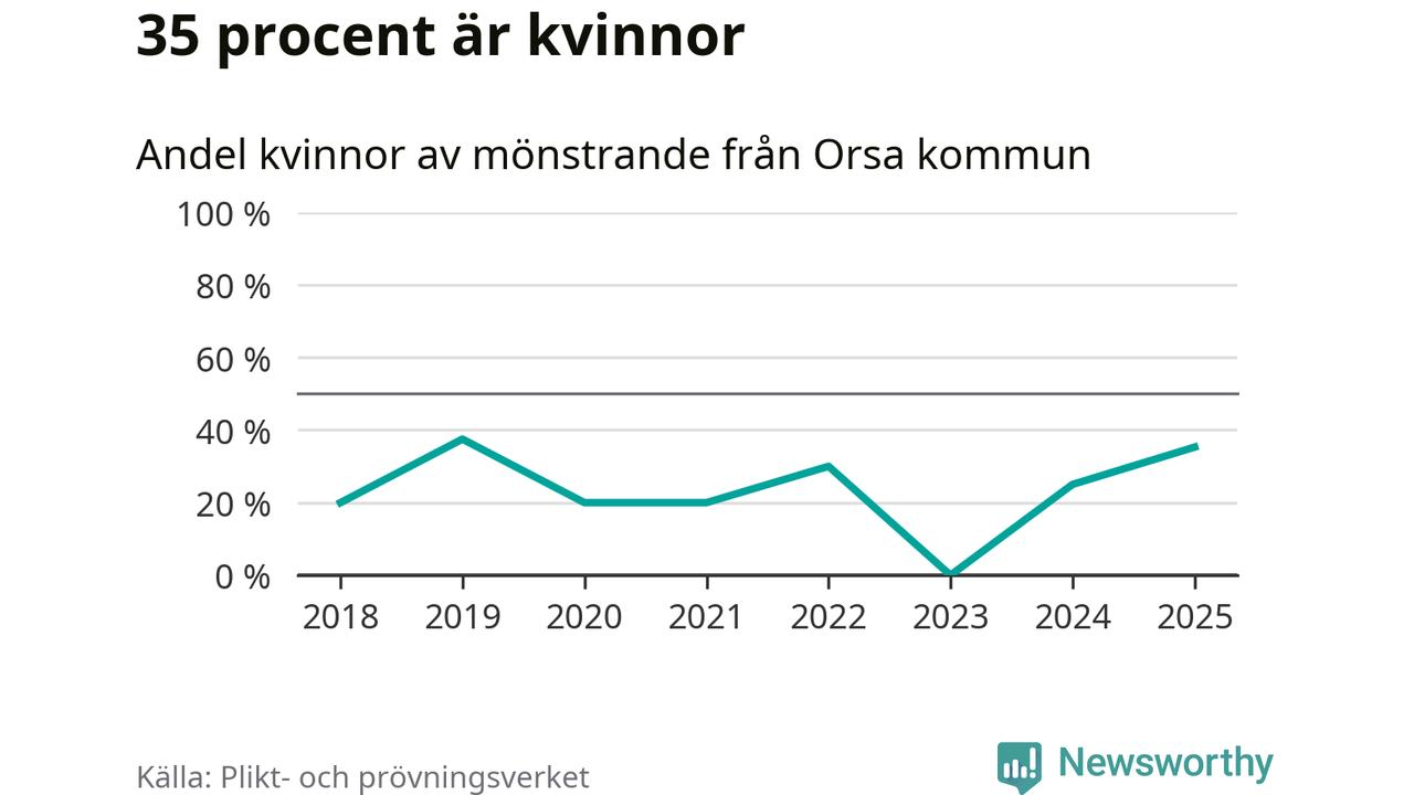 Av de som skrivits in till någon av Försvarmaktens grundutbildningar det senaste året, från juni 2024 till mars i år, kommer två (båda män) från Orsa. En av dessa antogs efter att ha kallats till mönstring.