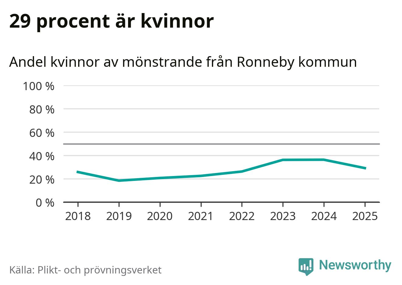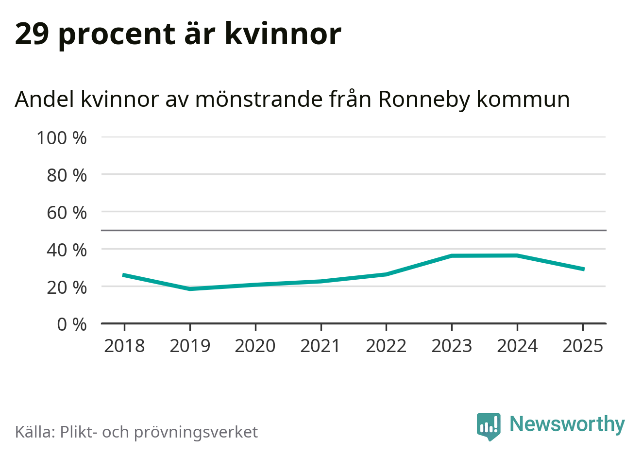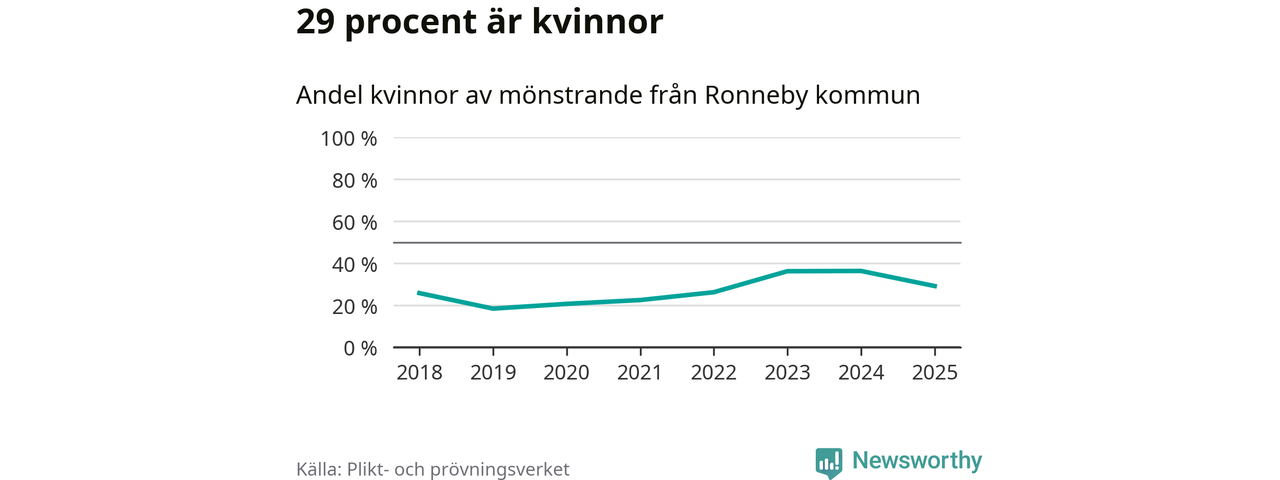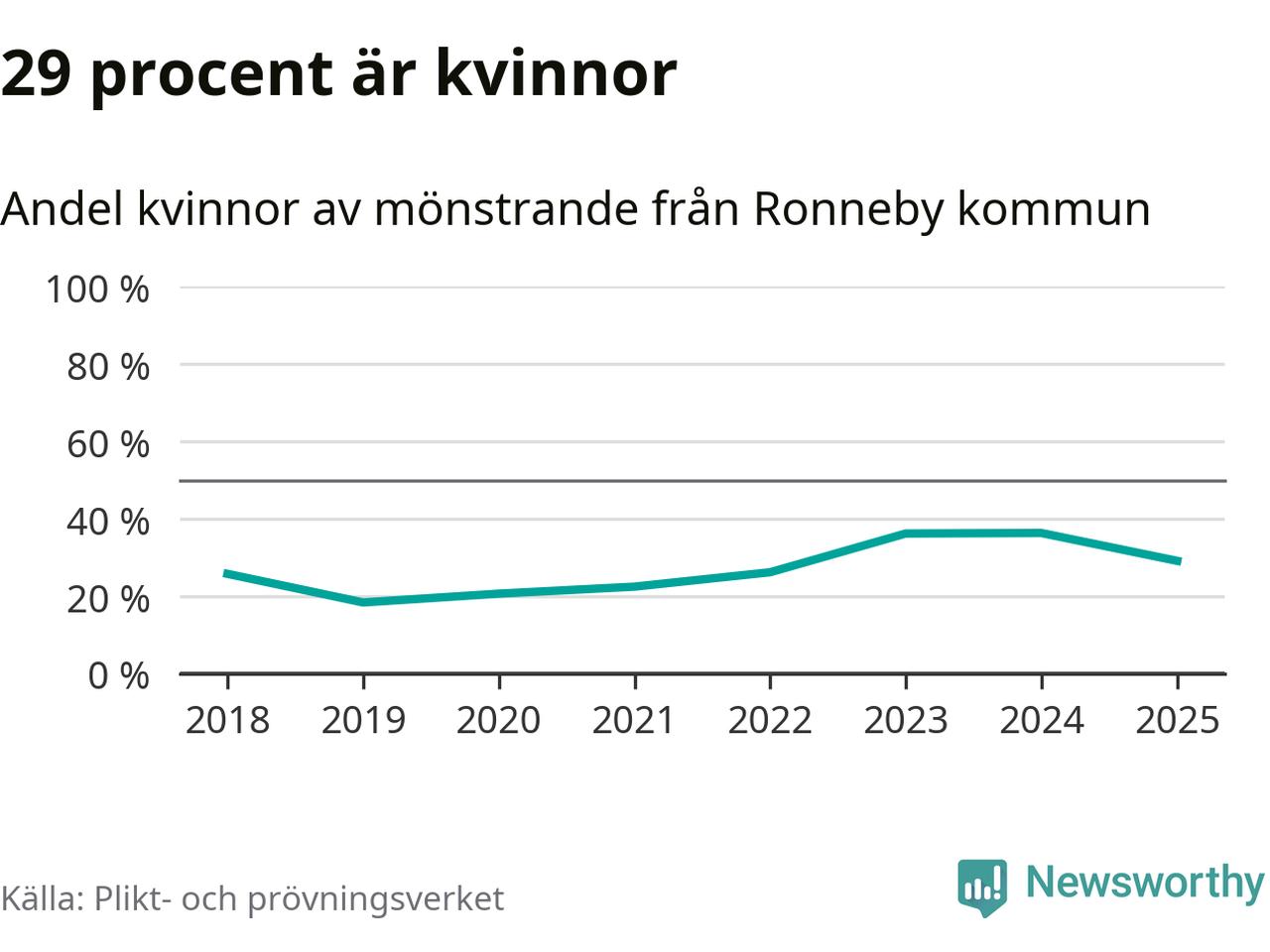 Av de som skrivits in till någon av Försvarmaktens grundutbildningar det senaste året, från juni 2024 till mars i år, kommer 16 (tio män och sex kvinnor) från Ronneby. 15 av dessa antogs efter att ha kallats till mönstring.