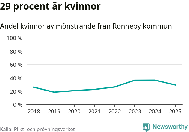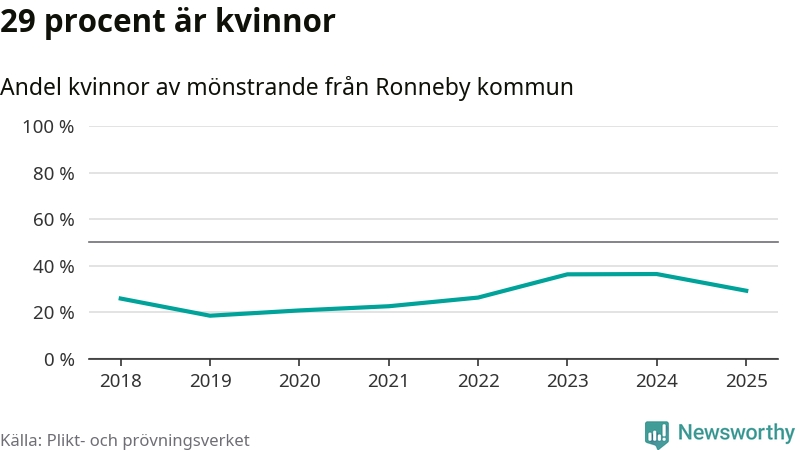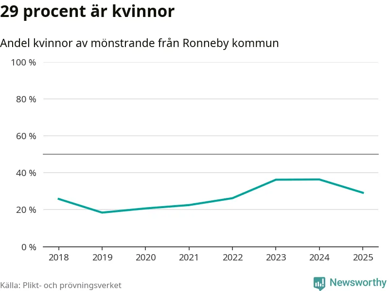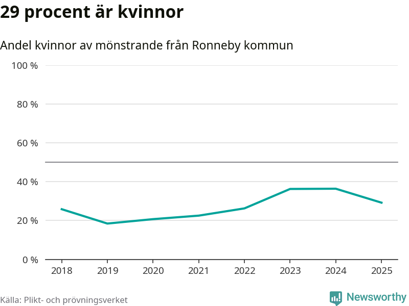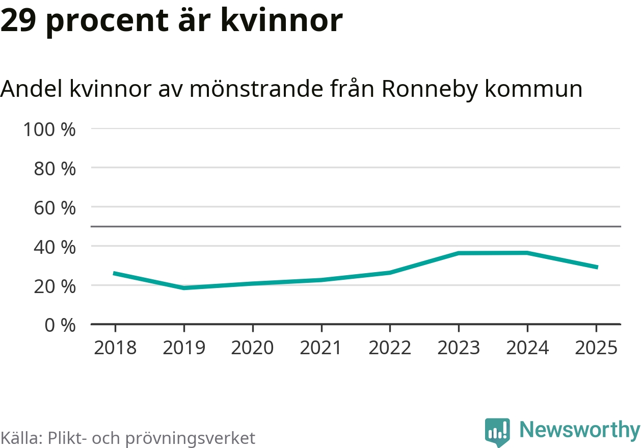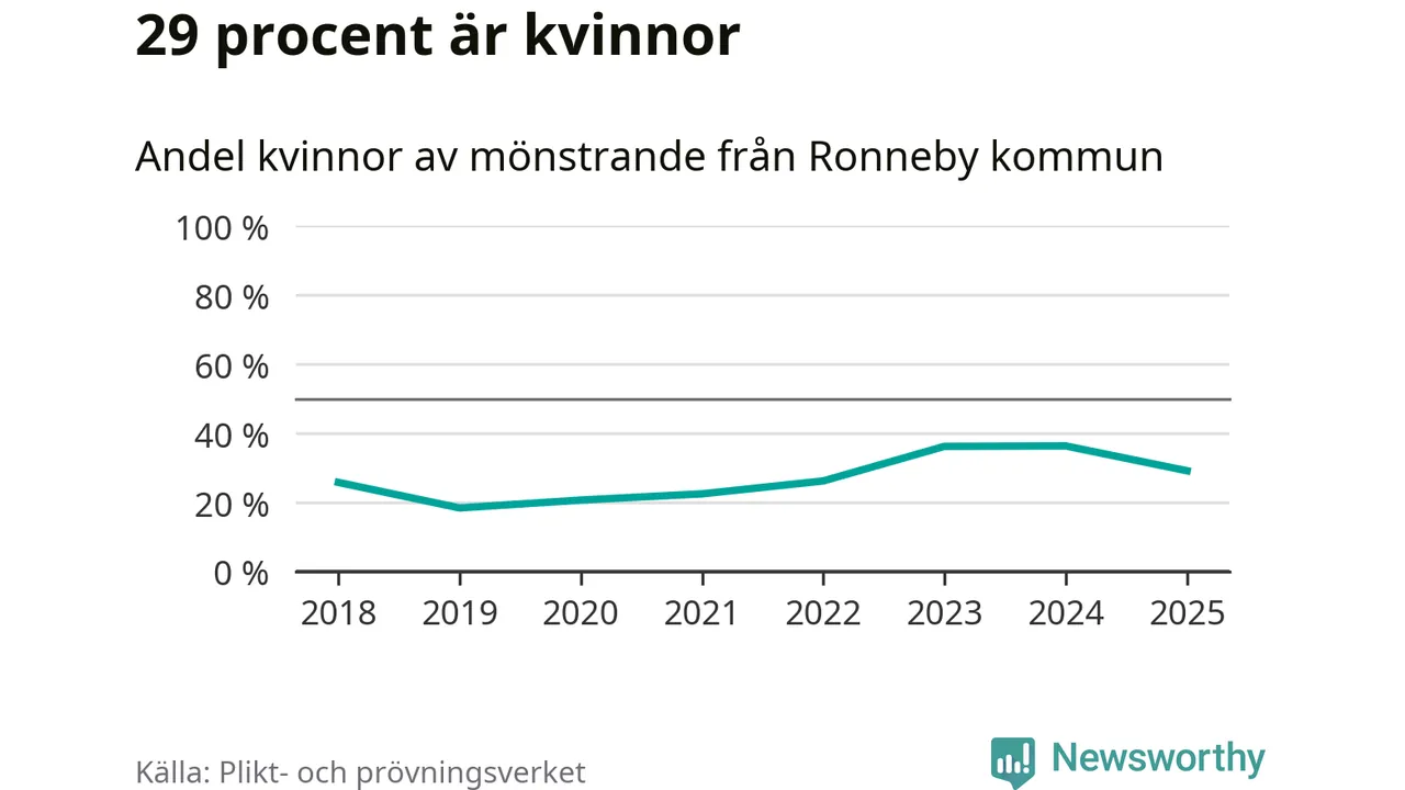 Av de som skrivits in till någon av Försvarmaktens grundutbildningar det senaste året, från juni 2024 till mars i år, kommer 16 (tio män och sex kvinnor) från Ronneby. 15 av dessa antogs efter att ha kallats till mönstring.