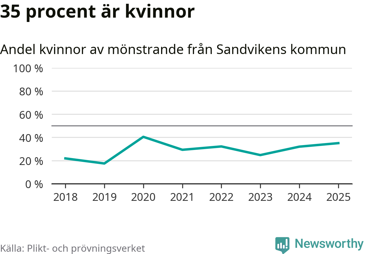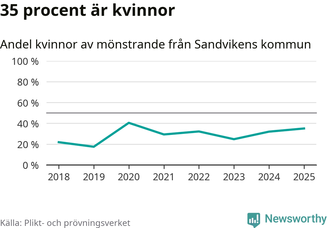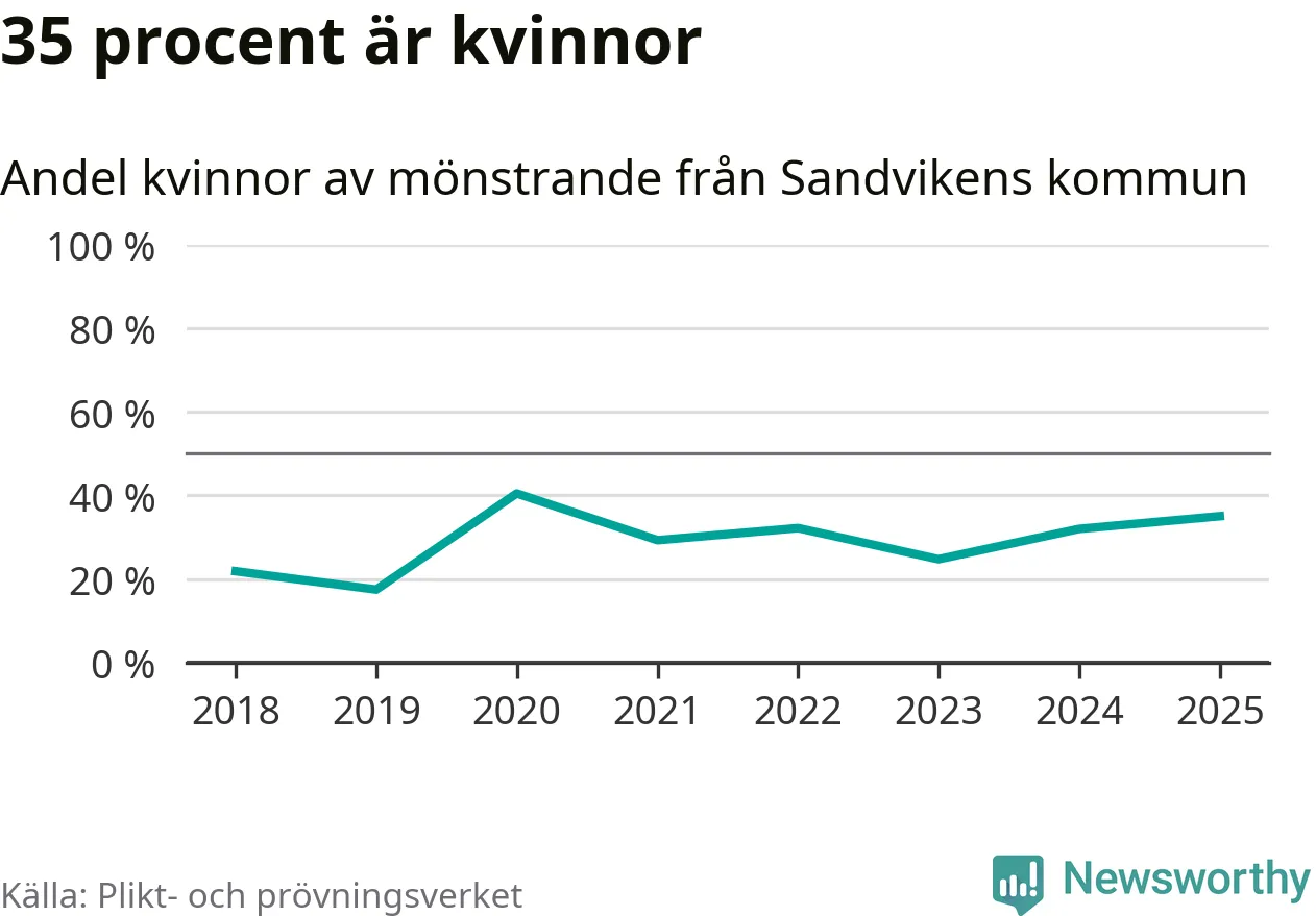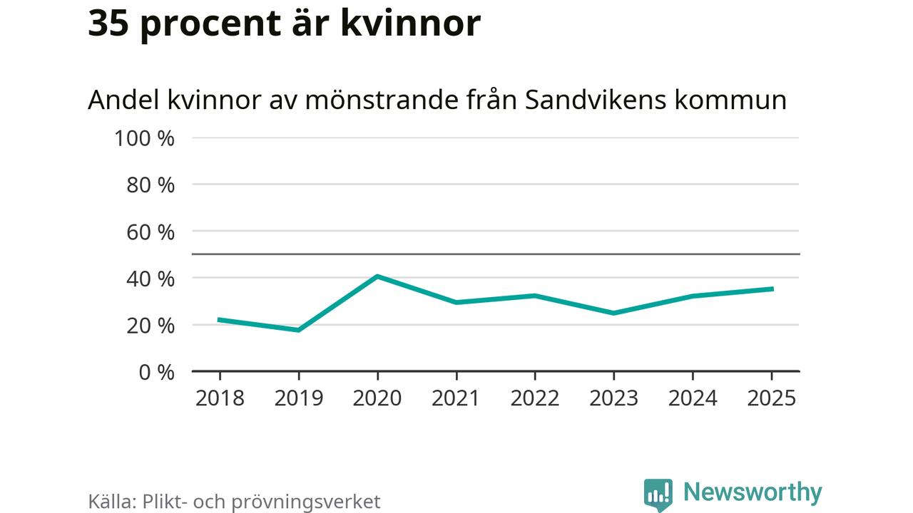 Av de som skrivits in till någon av Försvarmaktens grundutbildningar det senaste året, från juni 2024 till mars i år, kommer 37 (33 män och fyra kvinnor) från Sandviken. 33 av dessa antogs efter att ha kallats till mönstring.