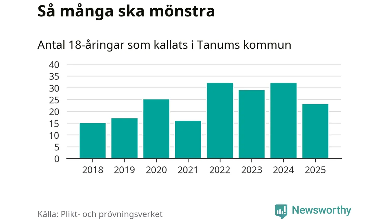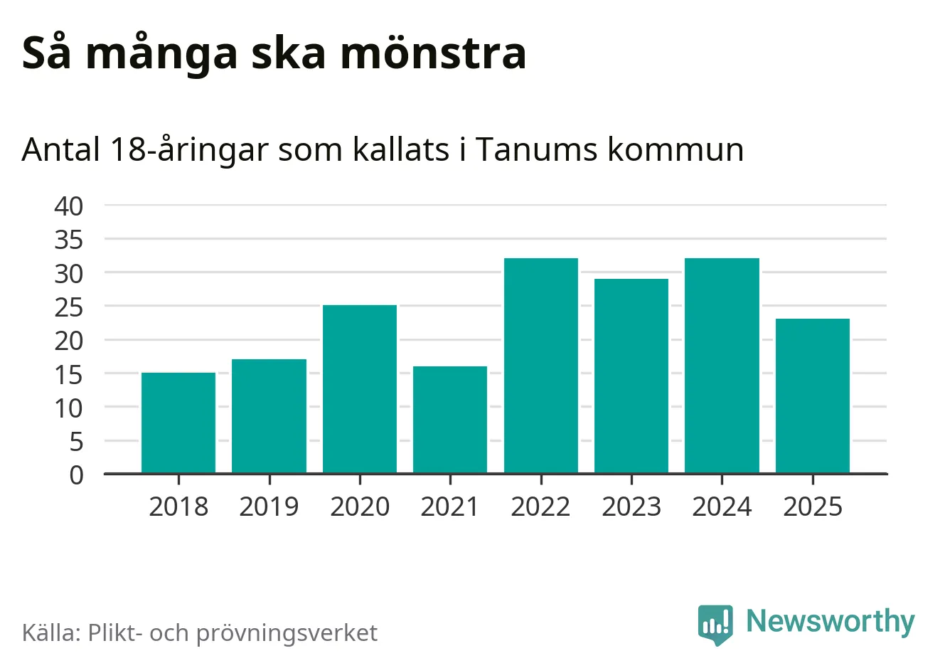 Av de som skrivits in till någon av Försvarmaktens grundutbildningar det senaste året, från juni 2024 till mars i år, kommer tio (åtta män och två kvinnor) från Tanum. Nio av dessa antogs efter att ha kallats till mönstring.
