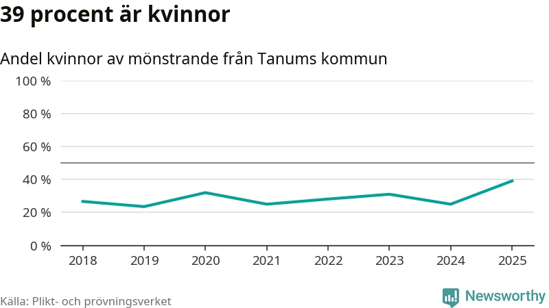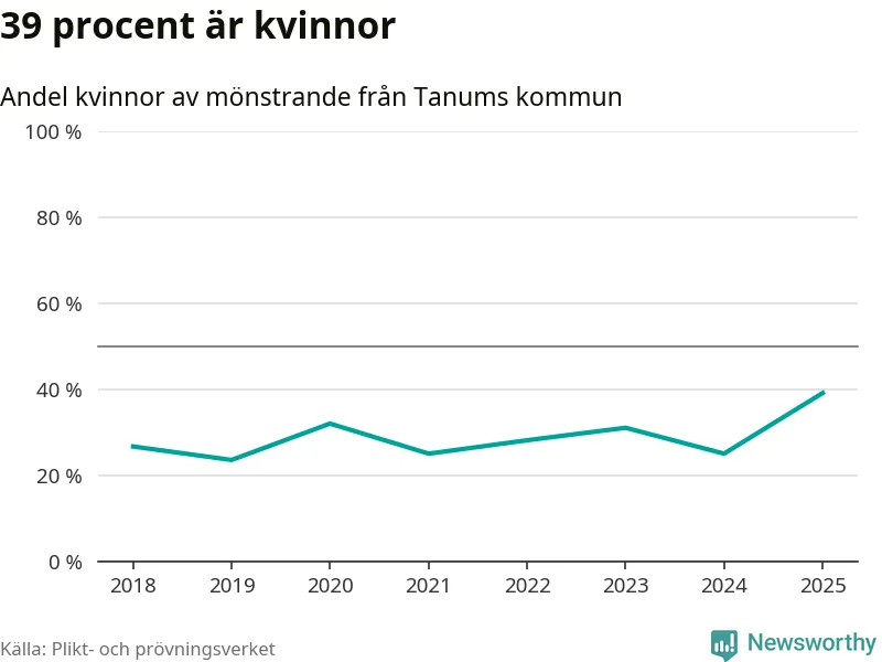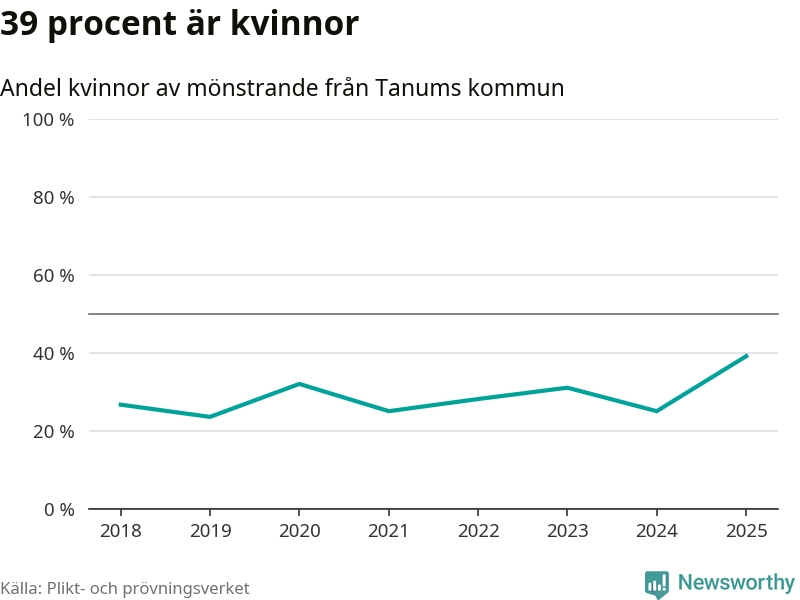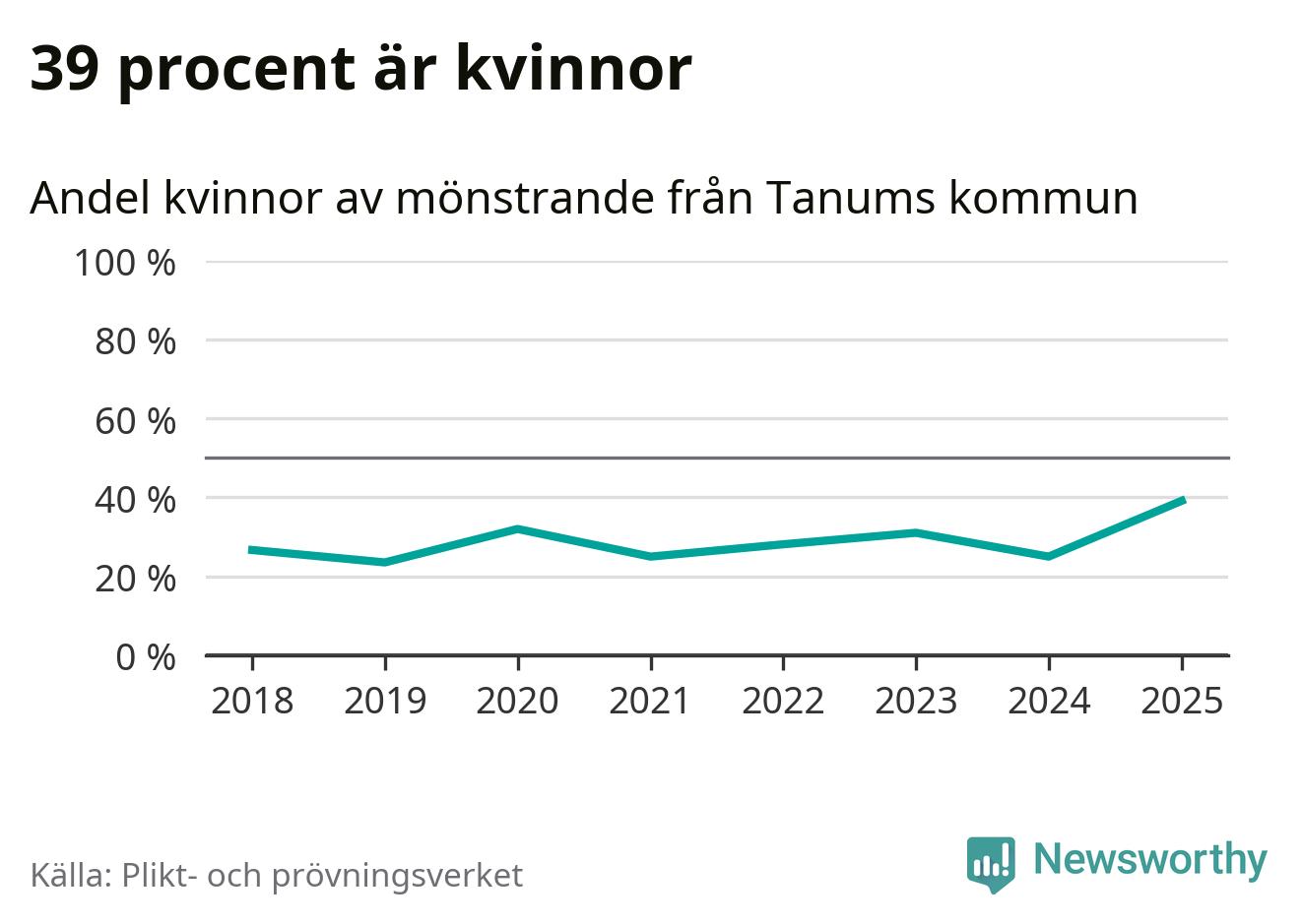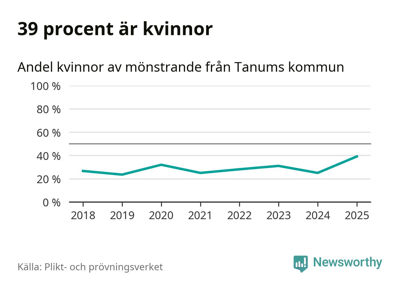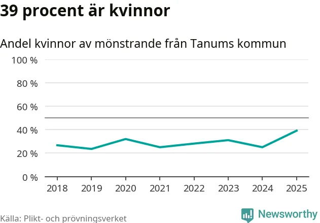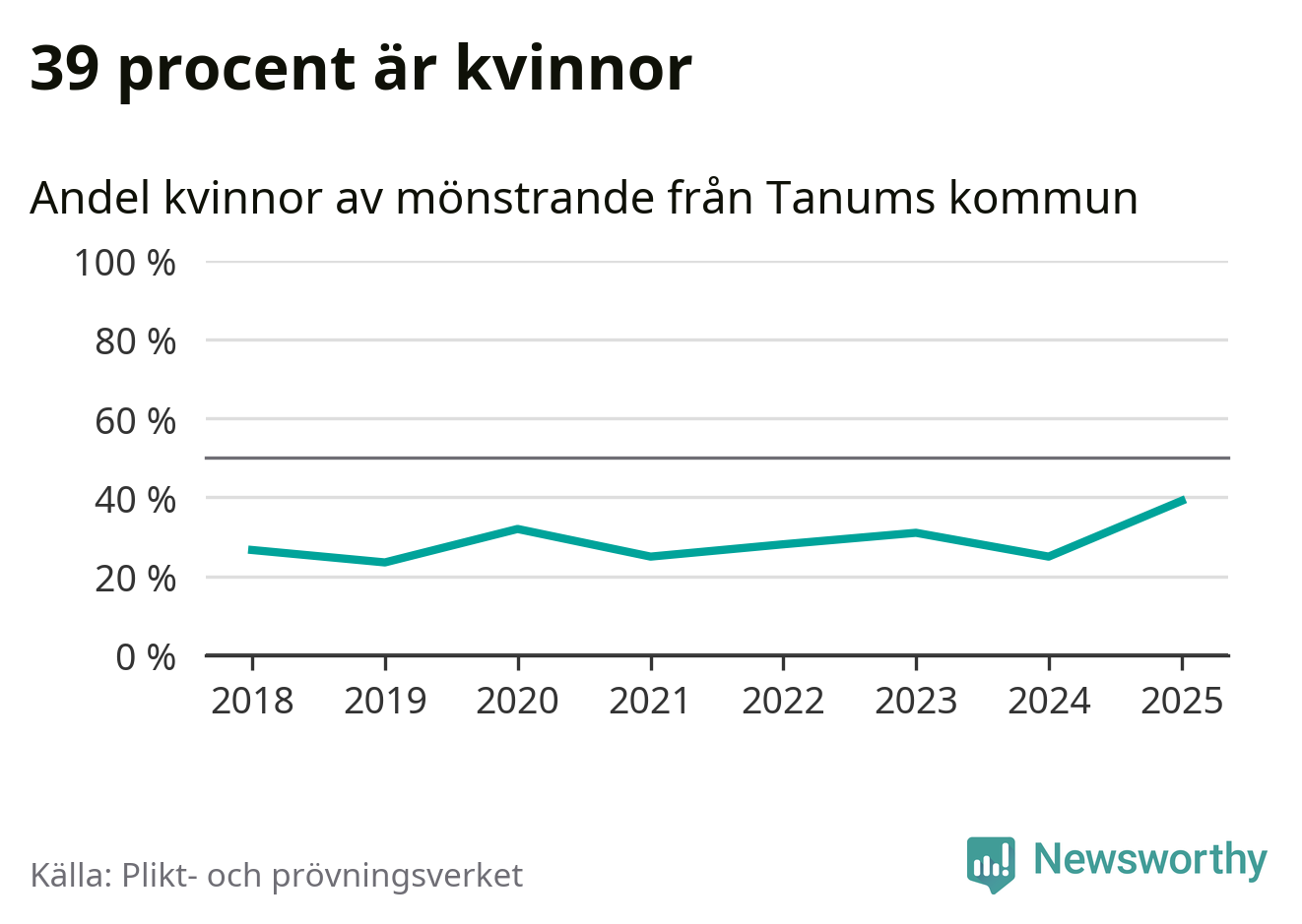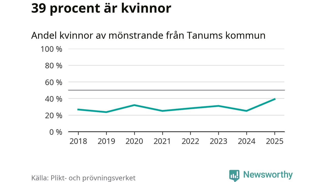 Nio av de som kallats till mönstring från Tanum är kvinnor, vilket motsvarar 39 procent av de mönstrande. Det är fler än något år sedan värnplikten återinfördes. I riket som helhet är 28 procent av de mönstrande tjejer.