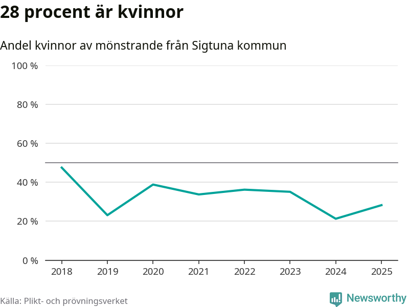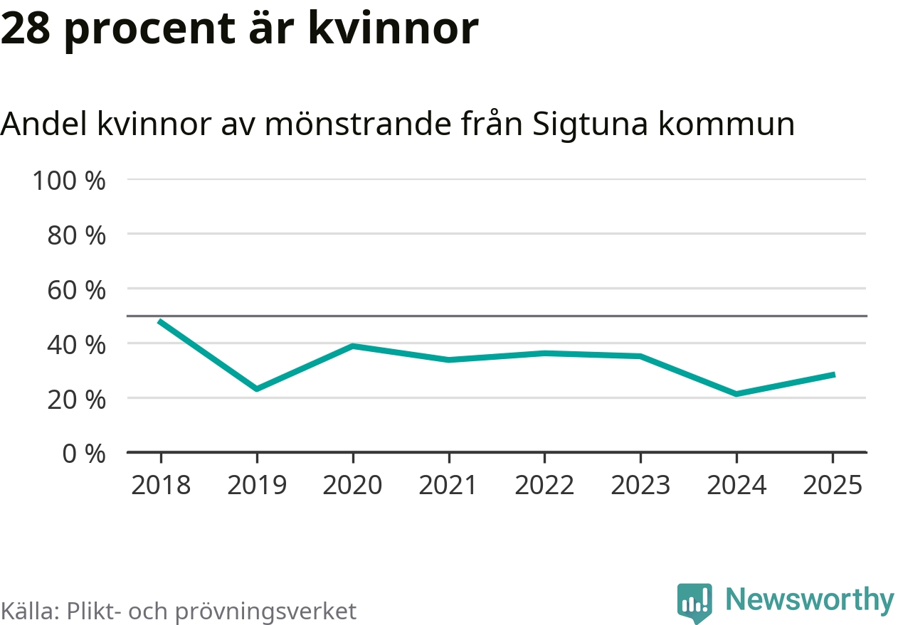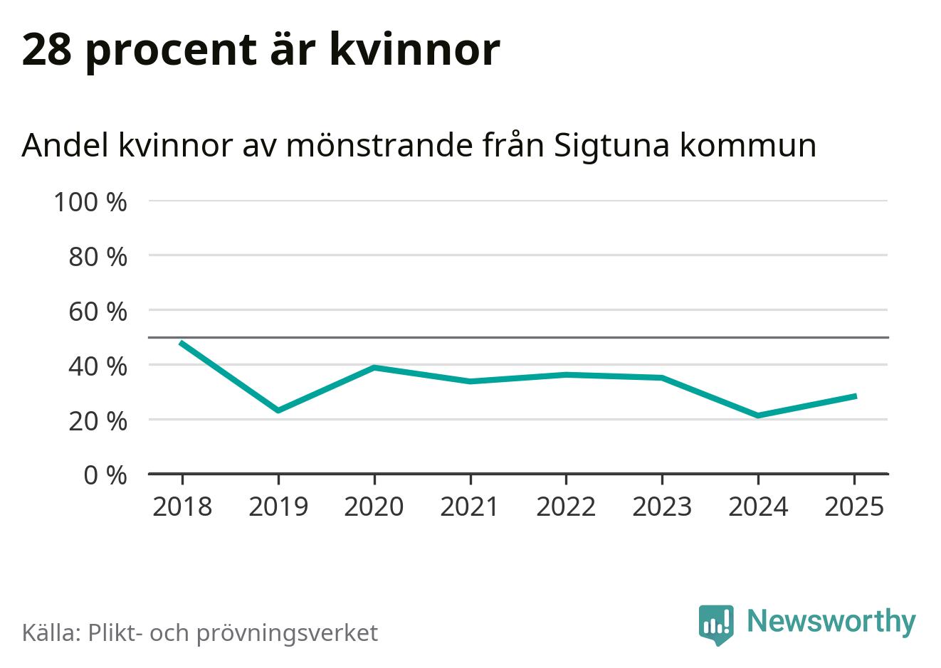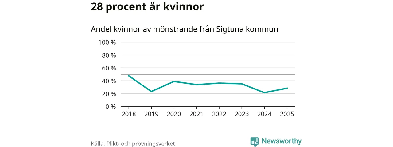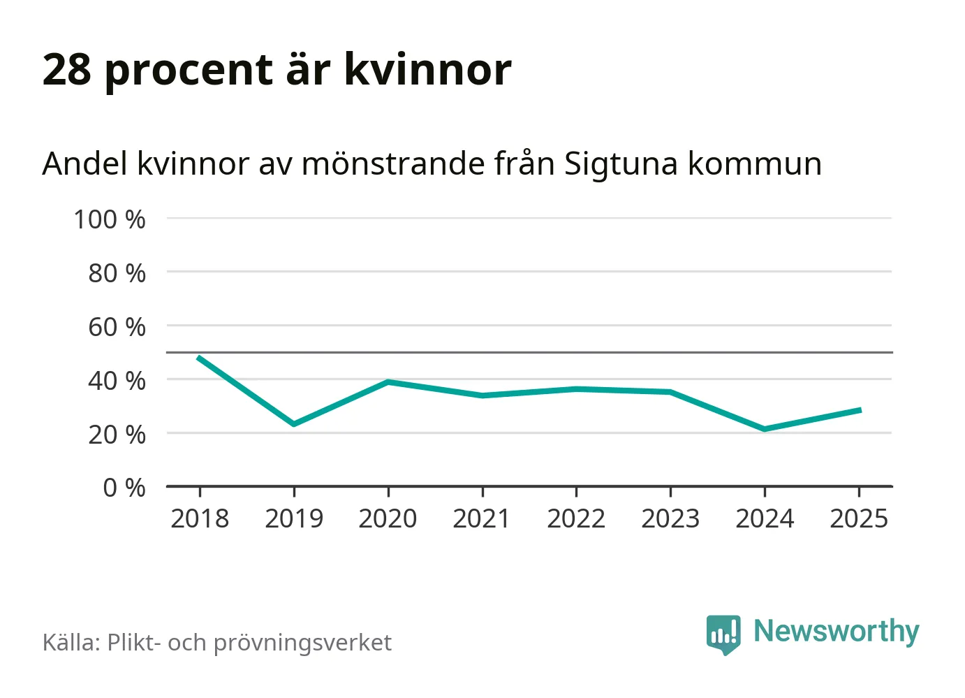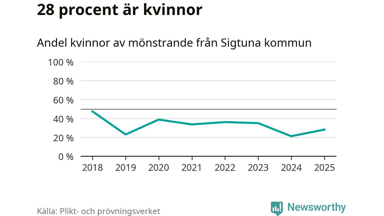 Av de som skrivits in till någon av Försvarmaktens grundutbildningar det senaste året, från juni 2024 till mars i år, kommer 39 (31 män och åtta kvinnor) från Sigtuna. 32 av dessa antogs efter att ha kallats till mönstring.
