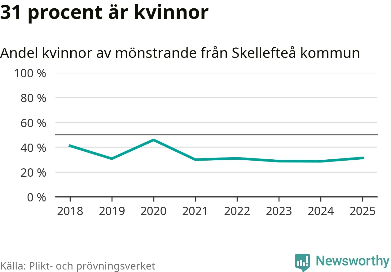 Av de som skrivits in till någon av Försvarmaktens grundutbildningar det senaste året, från juni 2024 till mars i år, kommer 58 (51 män och sju kvinnor) från Skellefteå. 54 av dessa antogs efter att ha kallats till mönstring.