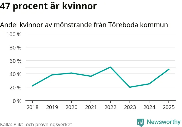 47 procent av de kallade från Töreboda är kvinnor