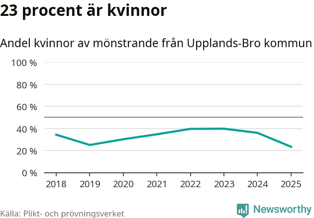 23 procent av de kallade från Upplands-Bro är kvinnor