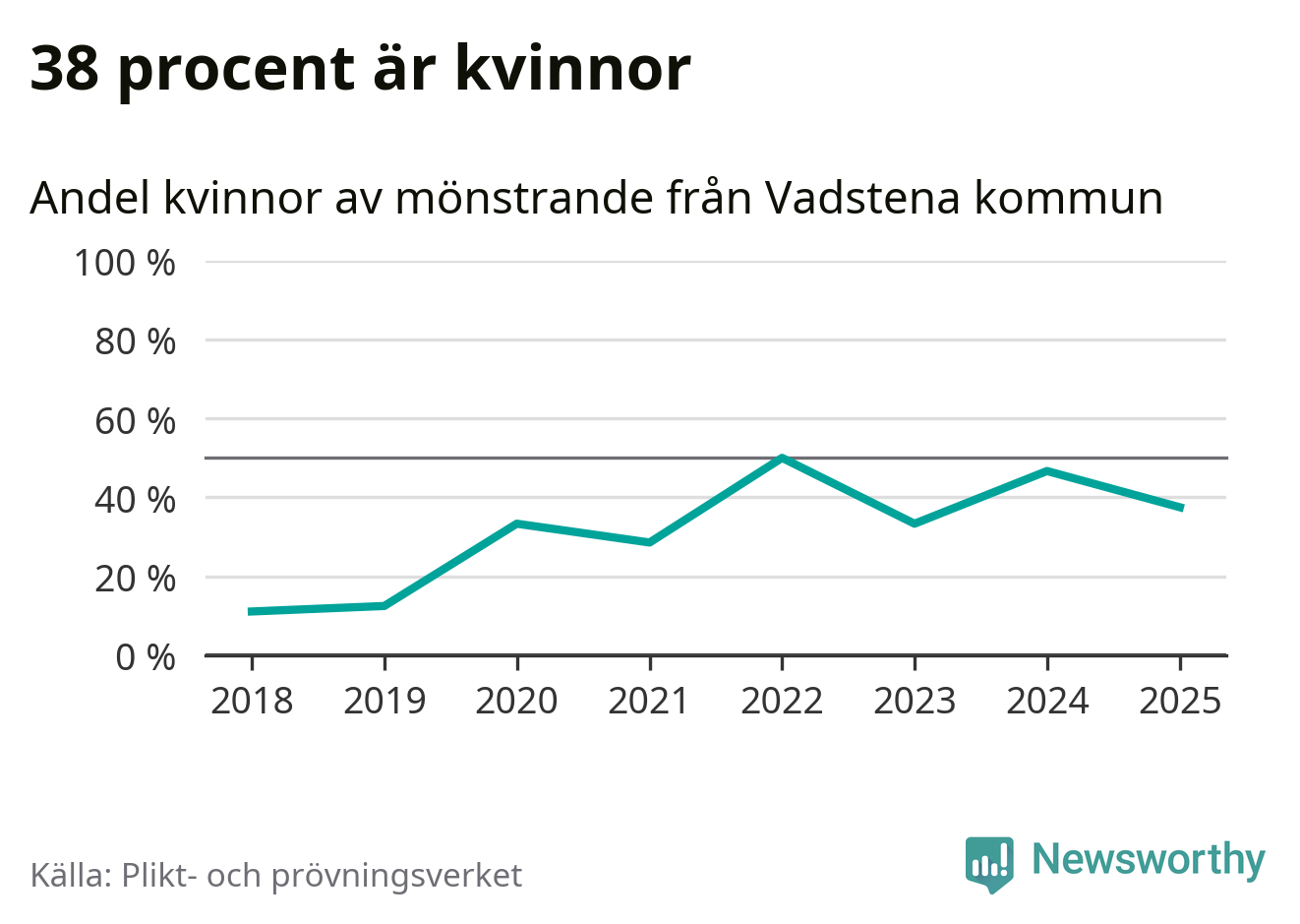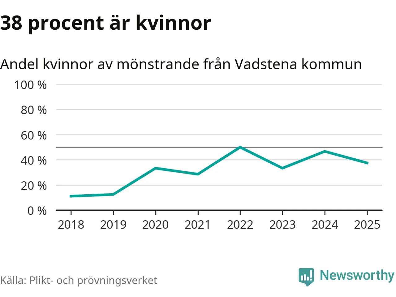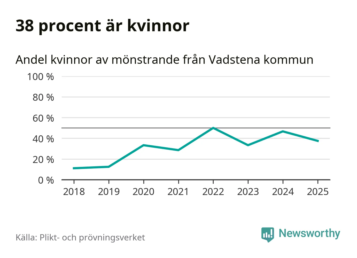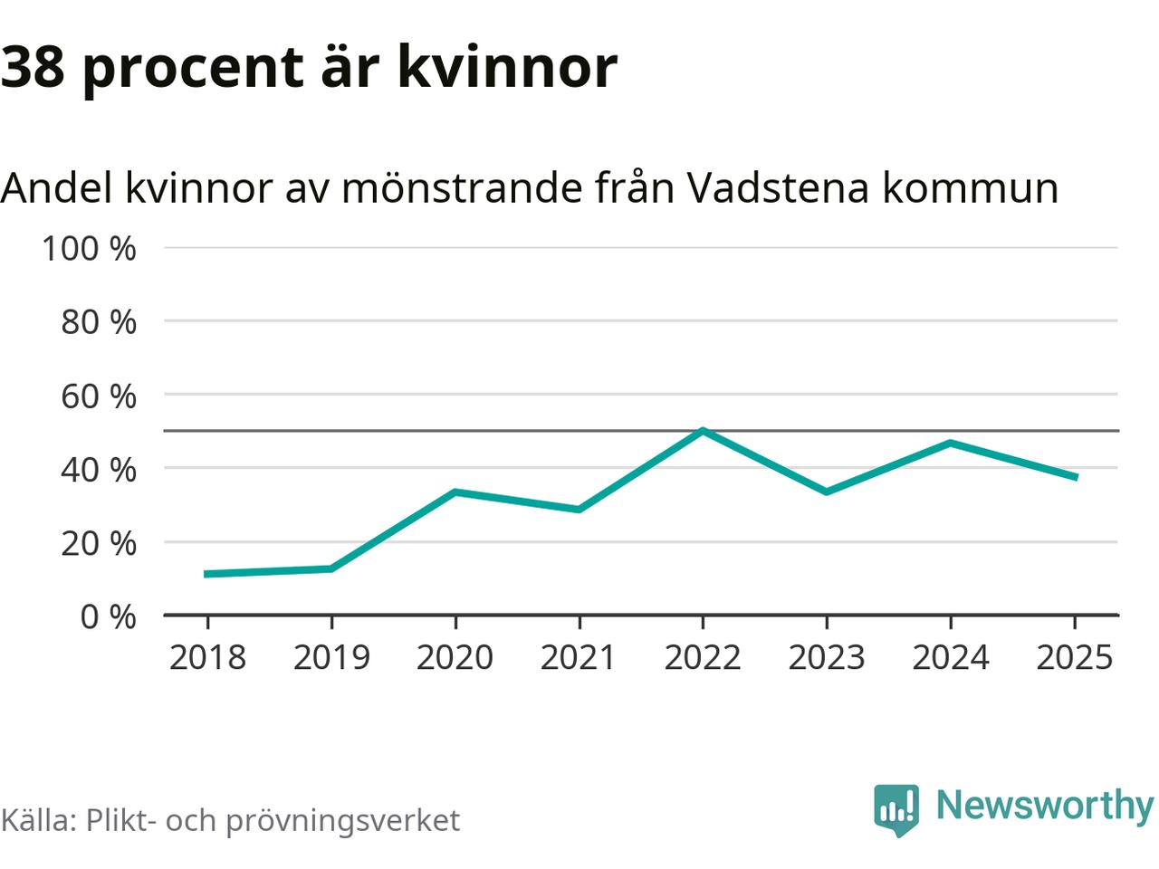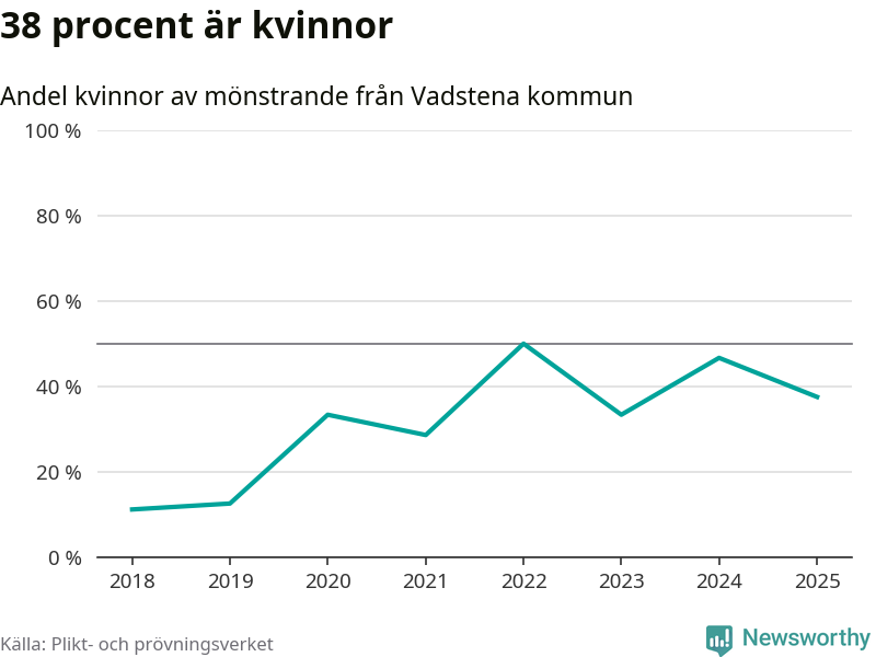 24 personer är det högsta antalet kallade i Vadstena sedan 2018, som är första året med statistik på kommunnivå (värnplikten återinfördes 2017), och nio mönstrande fler än 2024. Totalt från Östergötlands län kallas 1 306 personer i år.