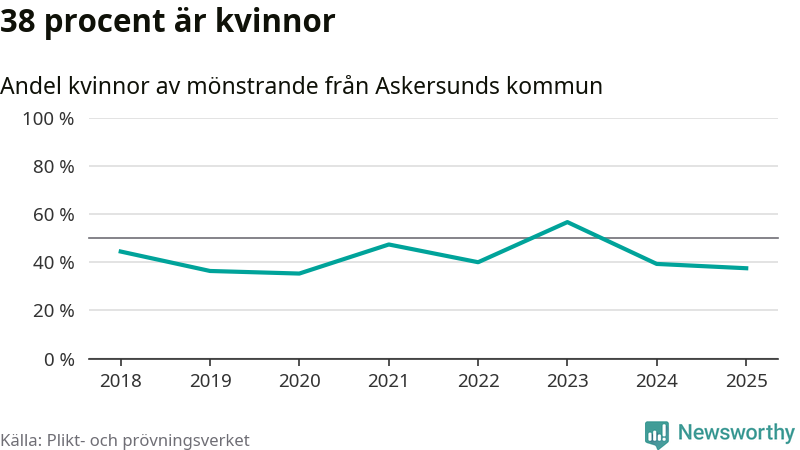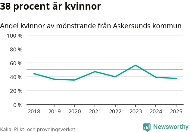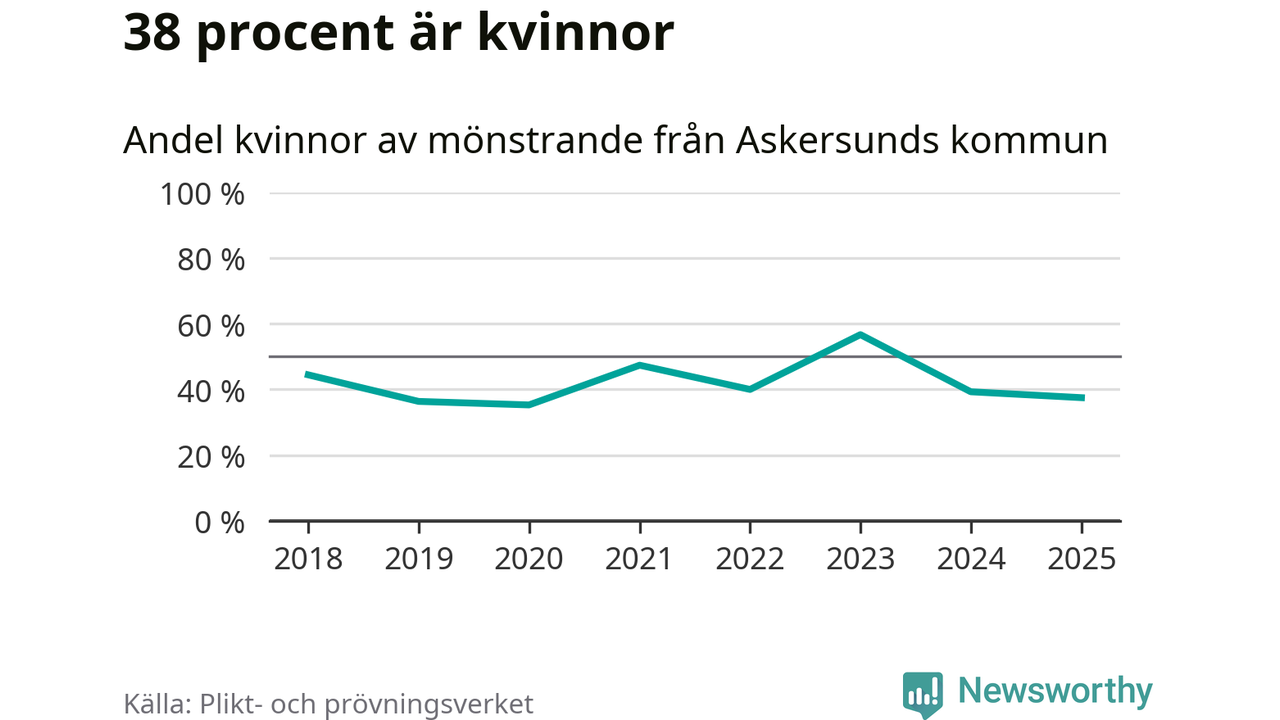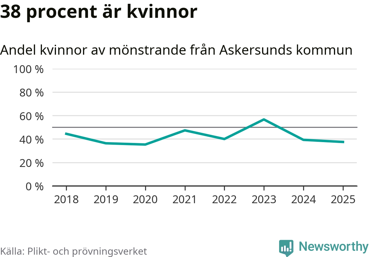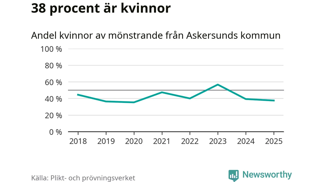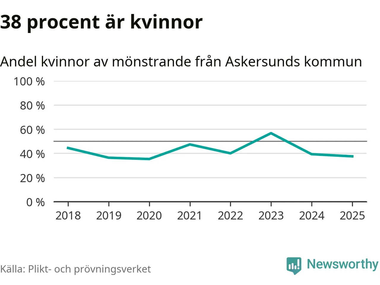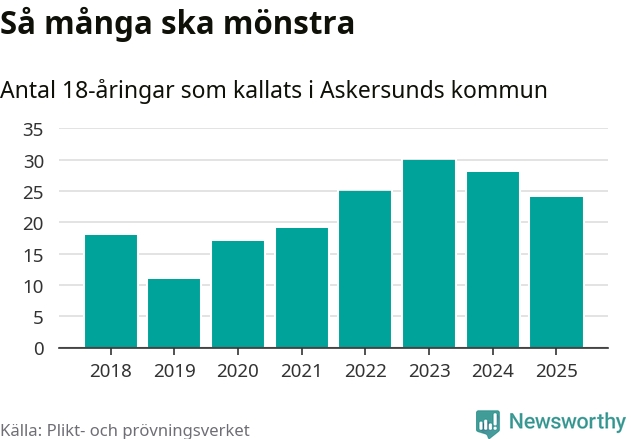 Av de som skrivits in till någon av Försvarmaktens grundutbildningar det senaste året, från juni 2024 till mars i år, kommer sju (fyra män och tre kvinnor) från Askersund. Sex av dessa antogs efter att ha kallats till mönstring.