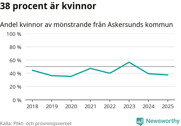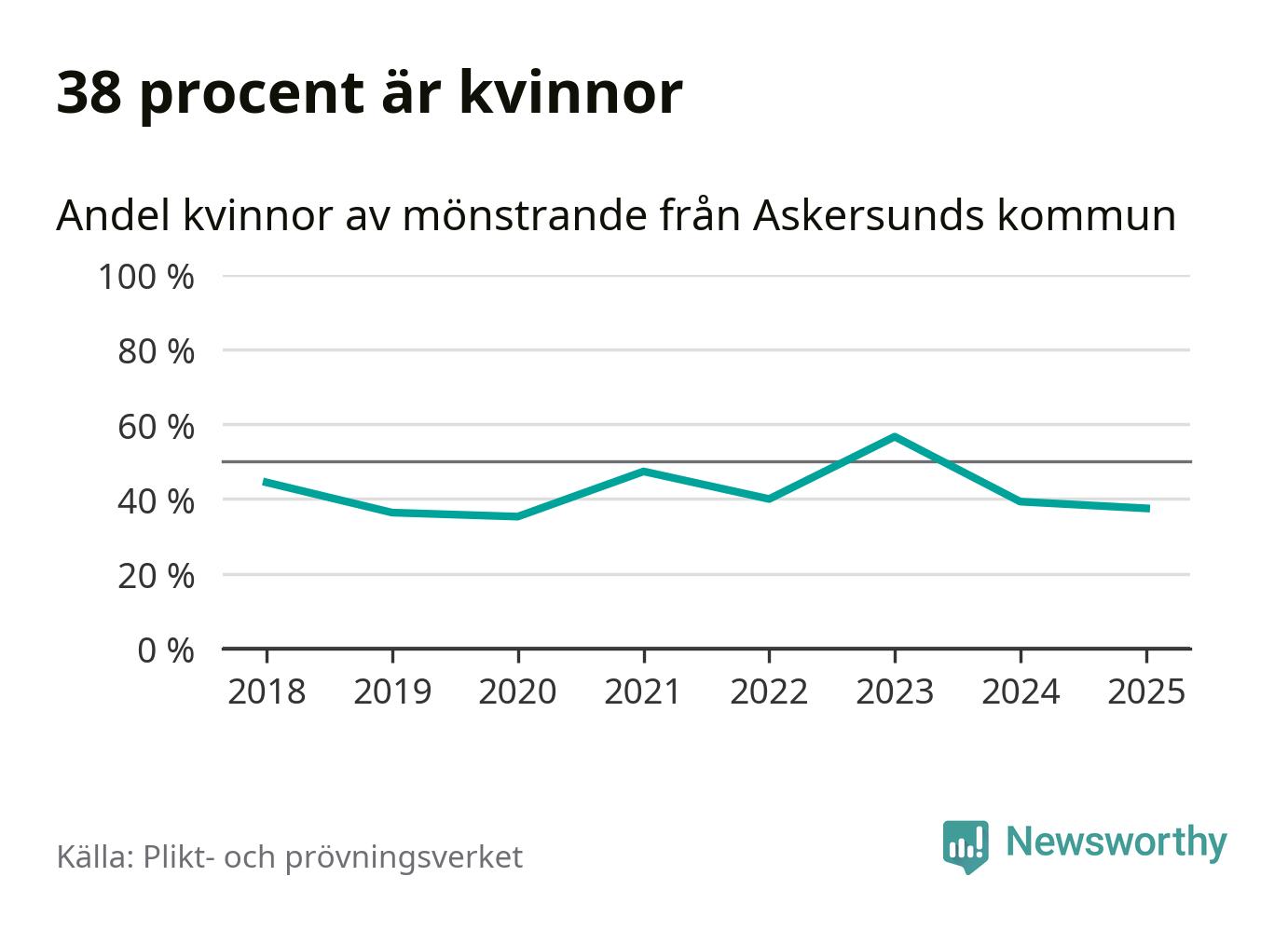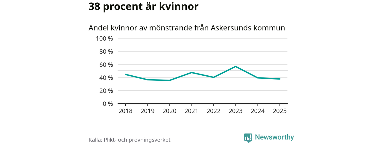 Nio av de som kallats till mönstring från Askersund är kvinnor, vilket motsvarar 38 procent av de mönstrande. Som mest har 17 kvinnor kallats från kommunen (2023). I riket som helhet är 28 procent av de mönstrande tjejer.