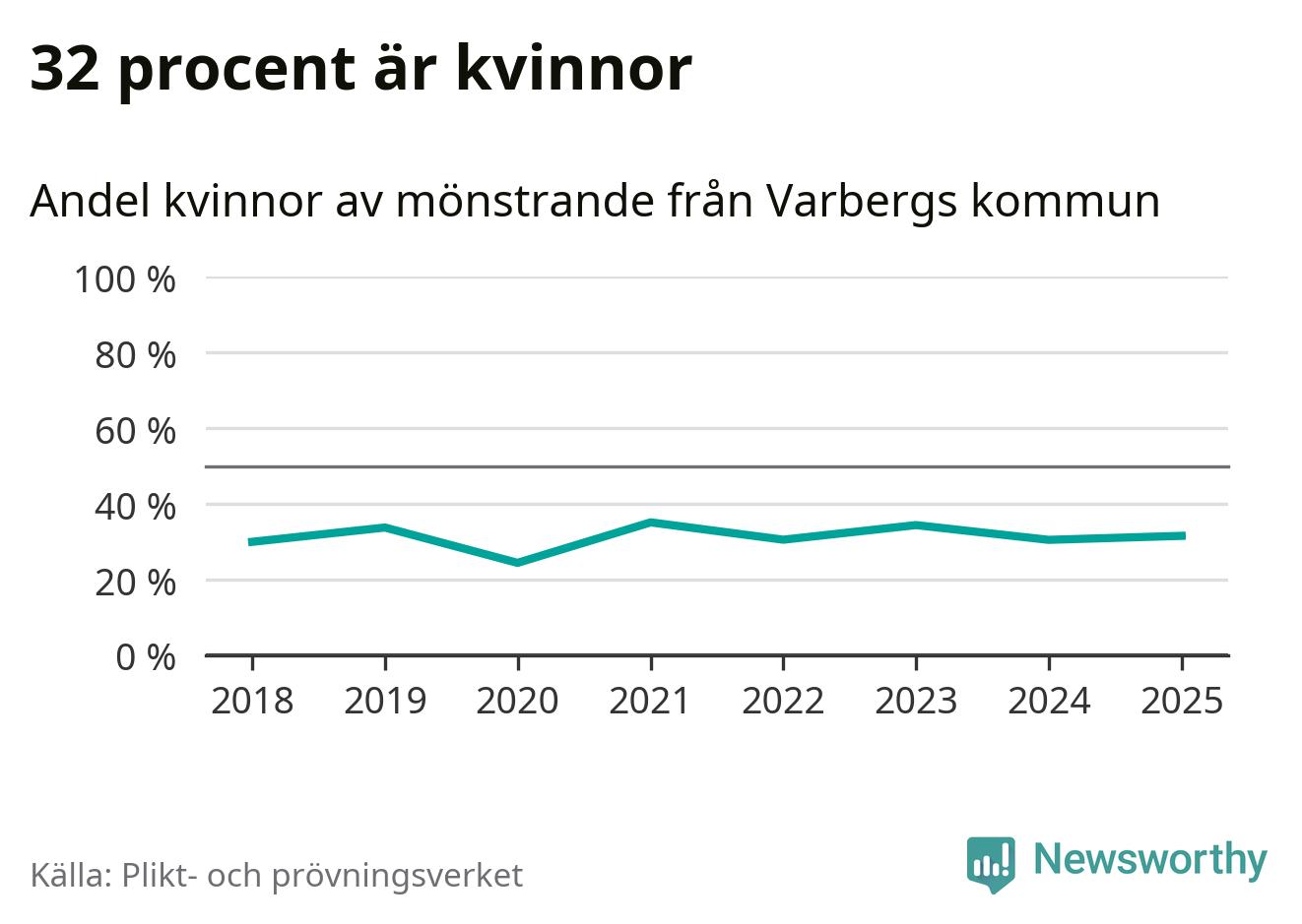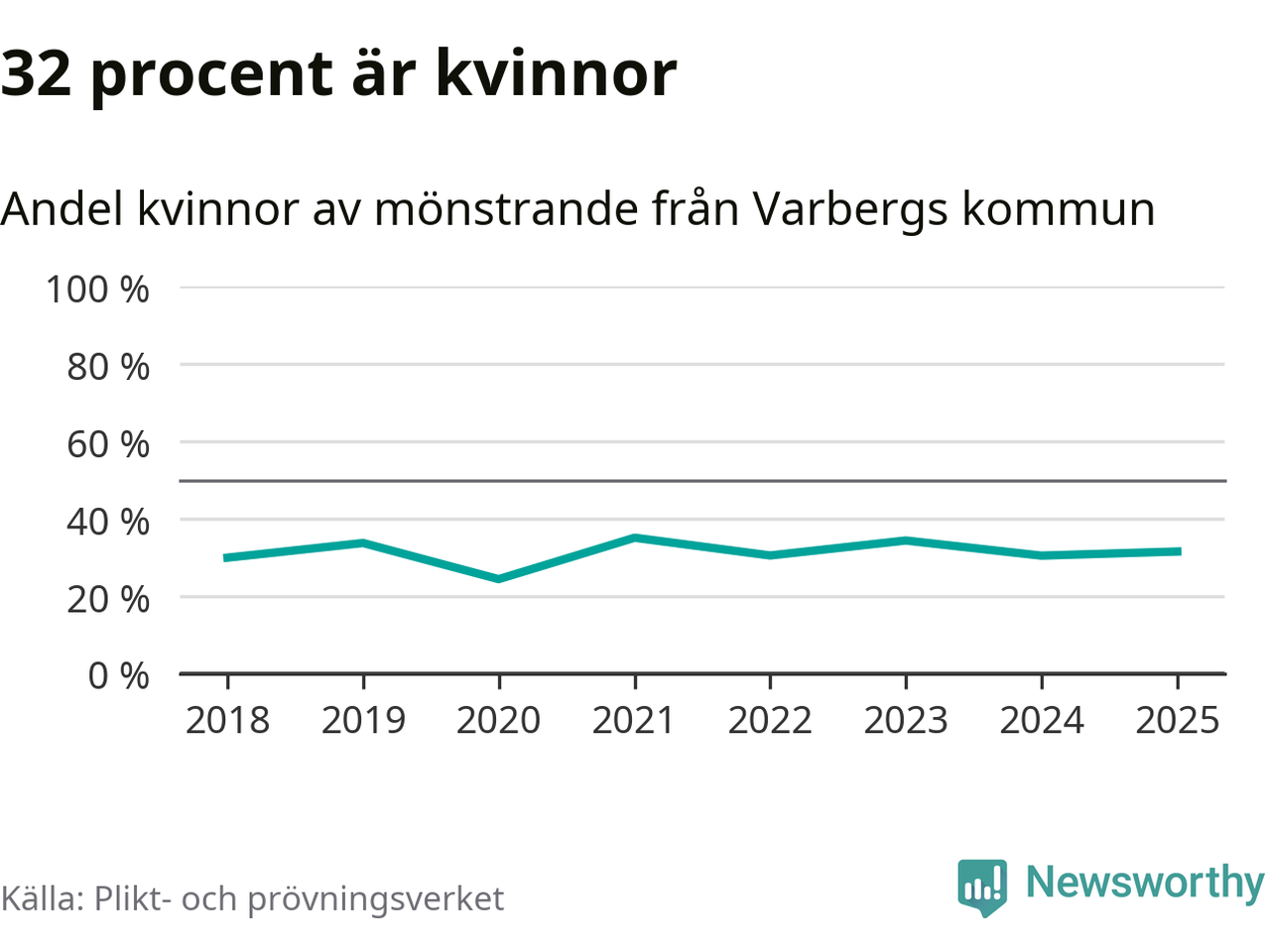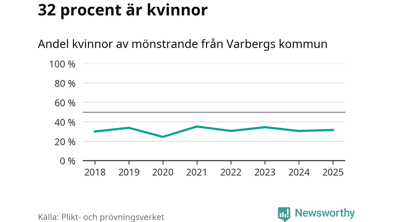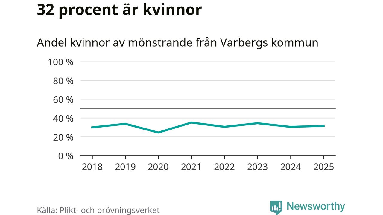 Av de som skrivits in till någon av Försvarmaktens grundutbildningar det senaste året, från juni 2024 till mars i år, kommer 43 (40 män och tre kvinnor) från Varberg. 36 av dessa antogs efter att ha kallats till mönstring.
