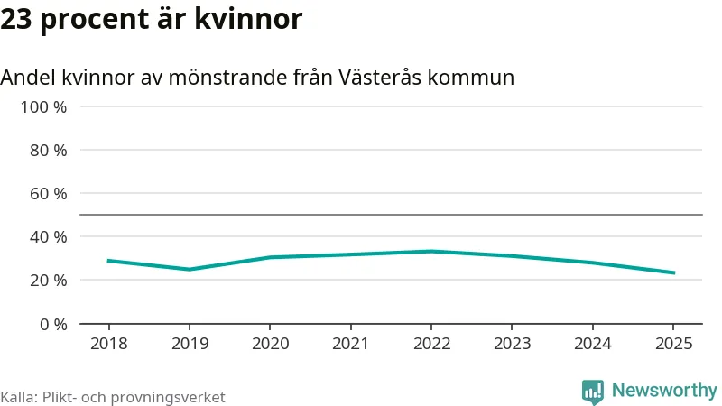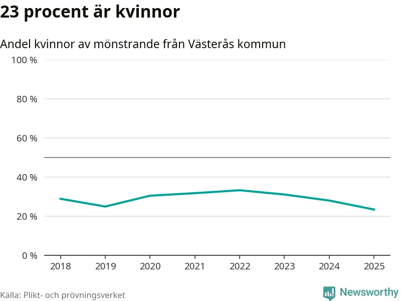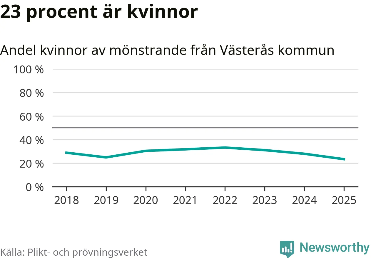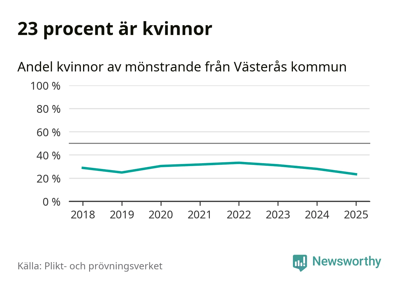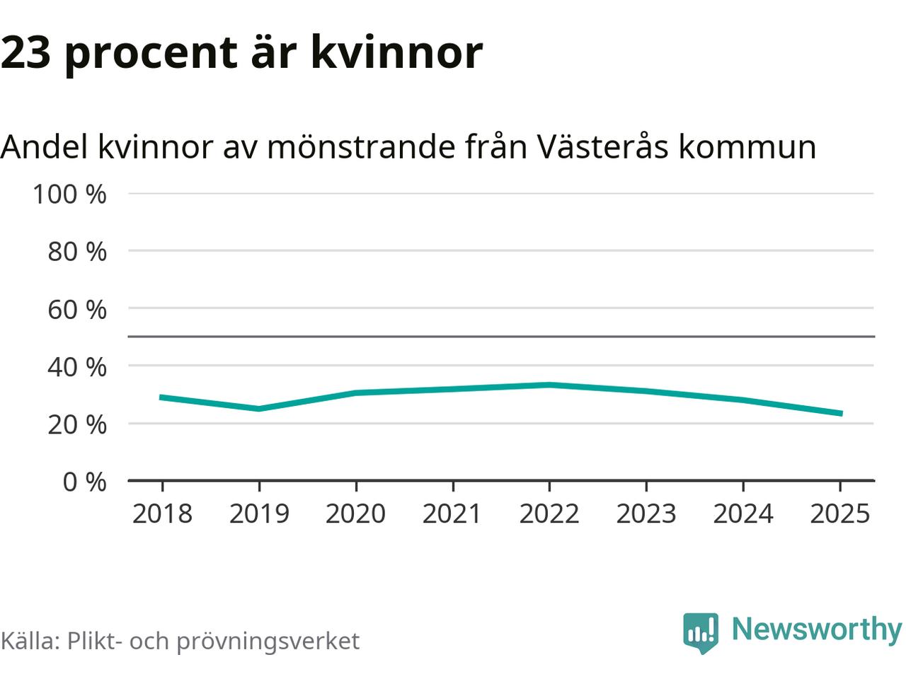 Nu kallas omkring 28 200 svenskar födda 2007 till mönstring. Och 437 av dem kommer från Västerås, enligt ny statistik från Plikt- och prövningsverket. Det innebär att nästan var fjärde invånare i åldersgruppen i kommunen kallas till mönstring. Det är ungefär lika stor andel som i Västmanland totalt. Även i riket som helhet kallas nästan var fjärde person i årskullen.