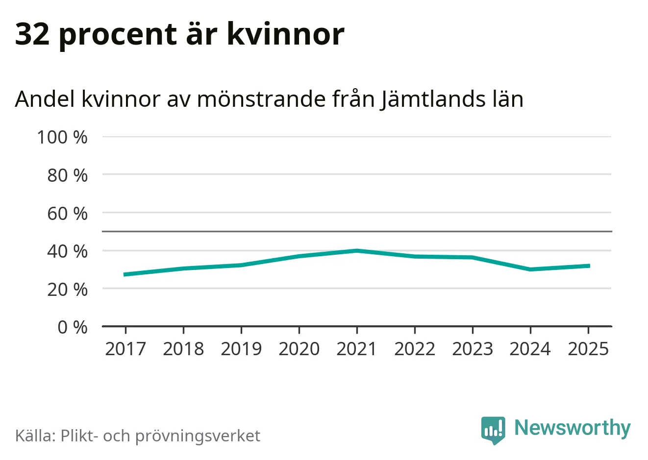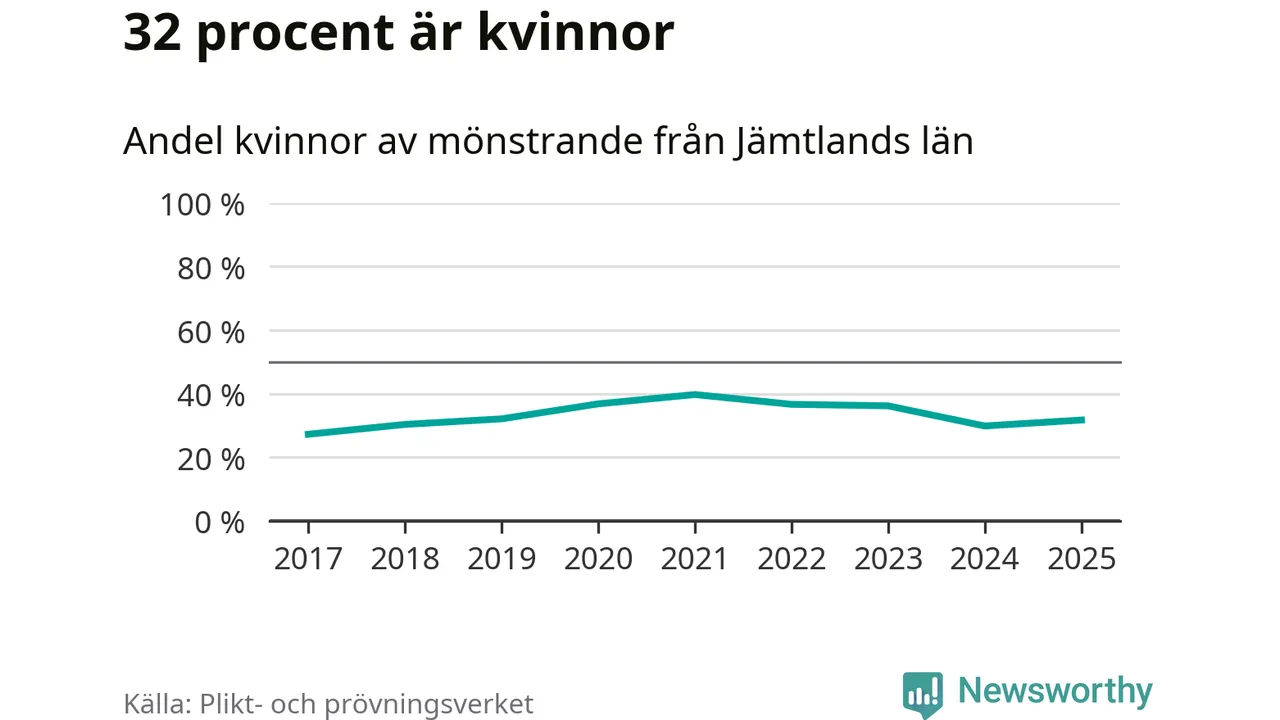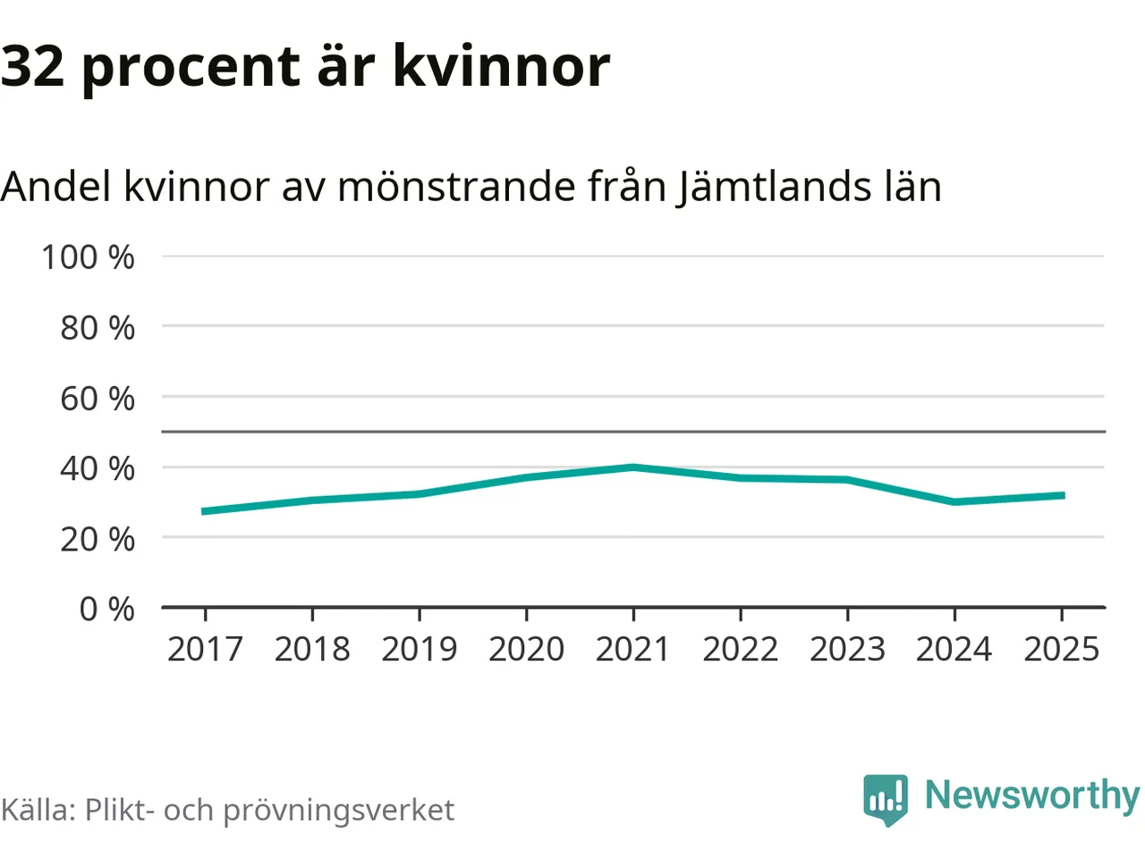 Av de som skrivits in till någon av Försvarmaktens grundutbildningar det senaste året, från juni 2024 till mars i år, kommer 186 (139 män och 47 kvinnor) från Jämtland. 160 av dessa antogs efter att ha kallats till mönstring.