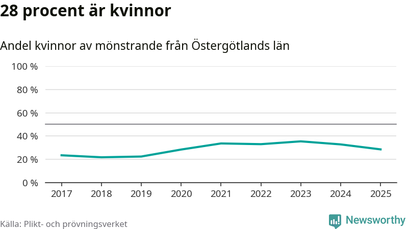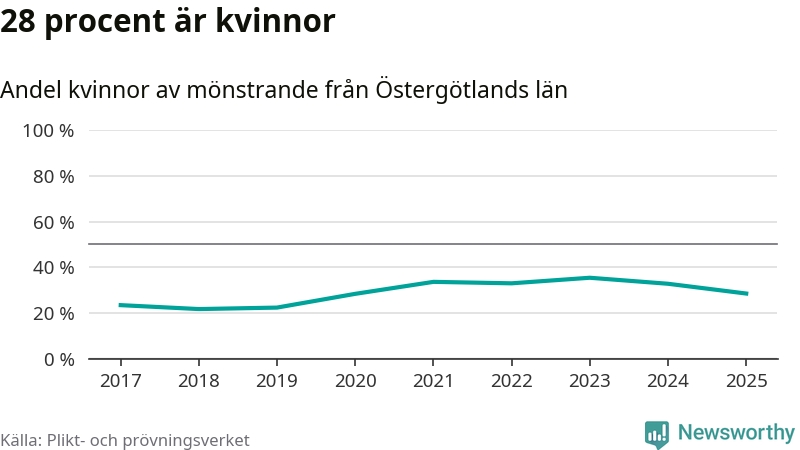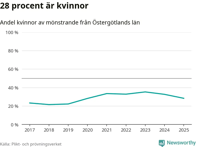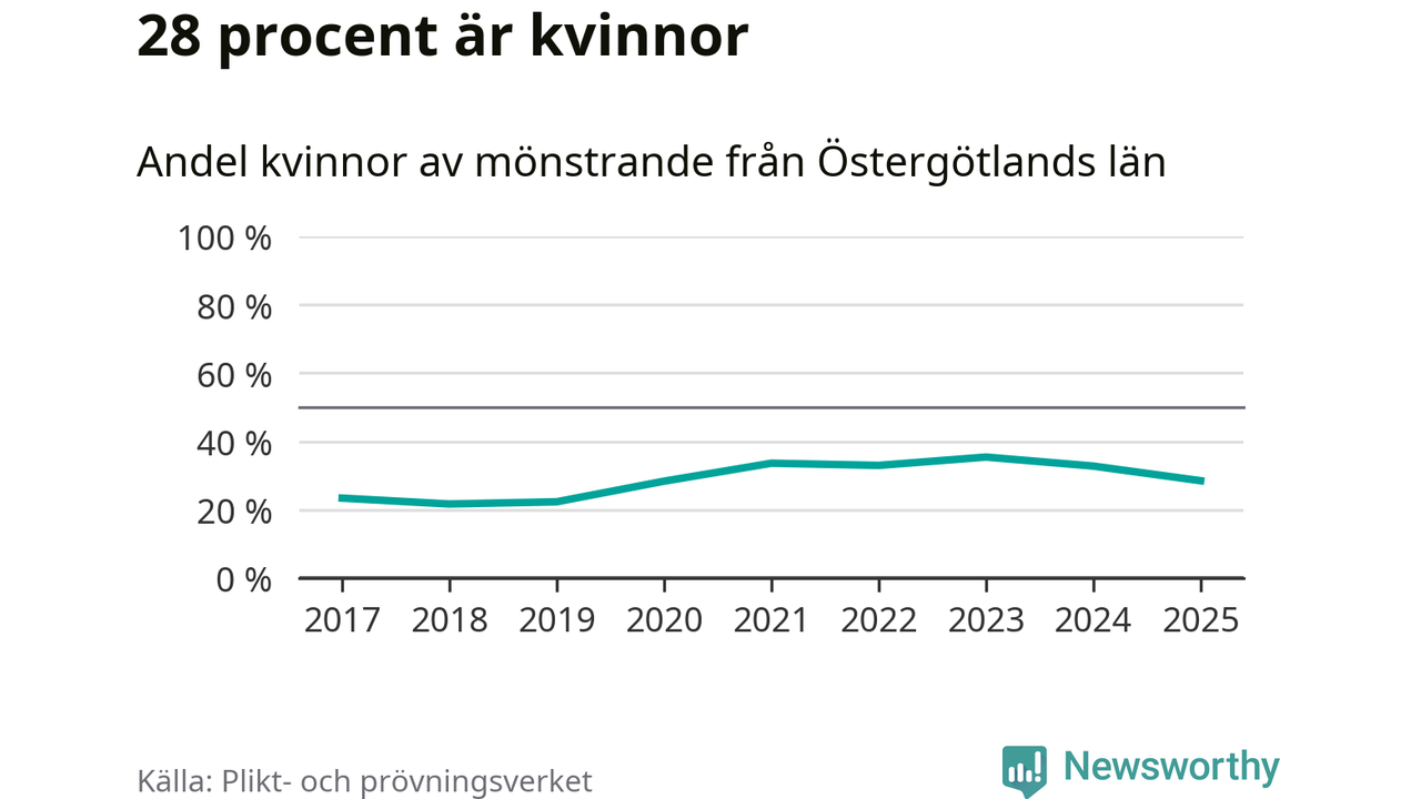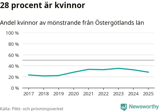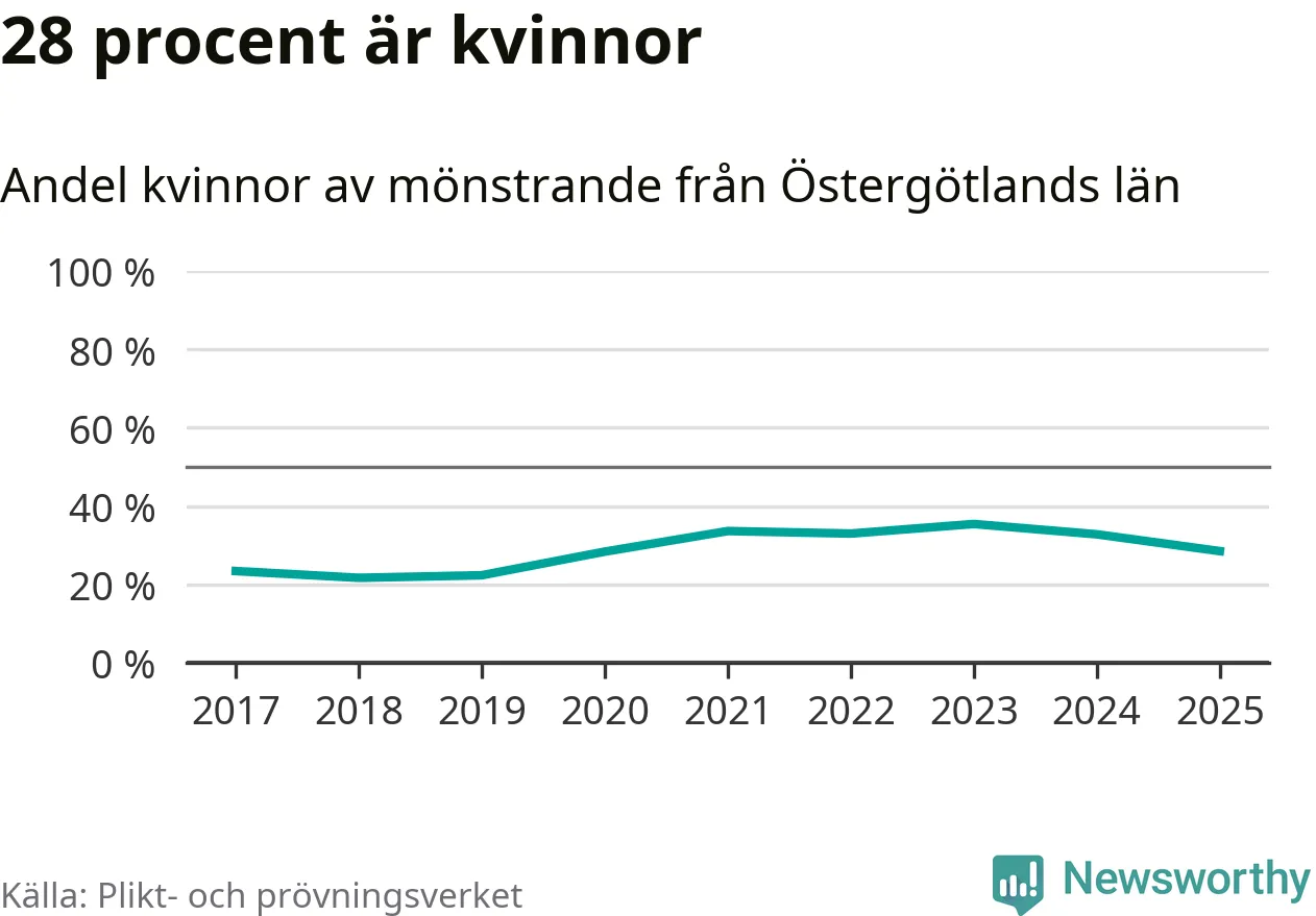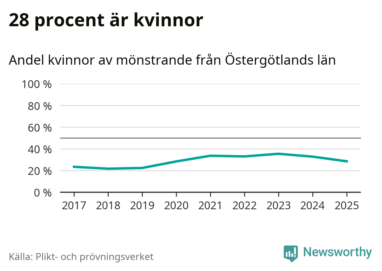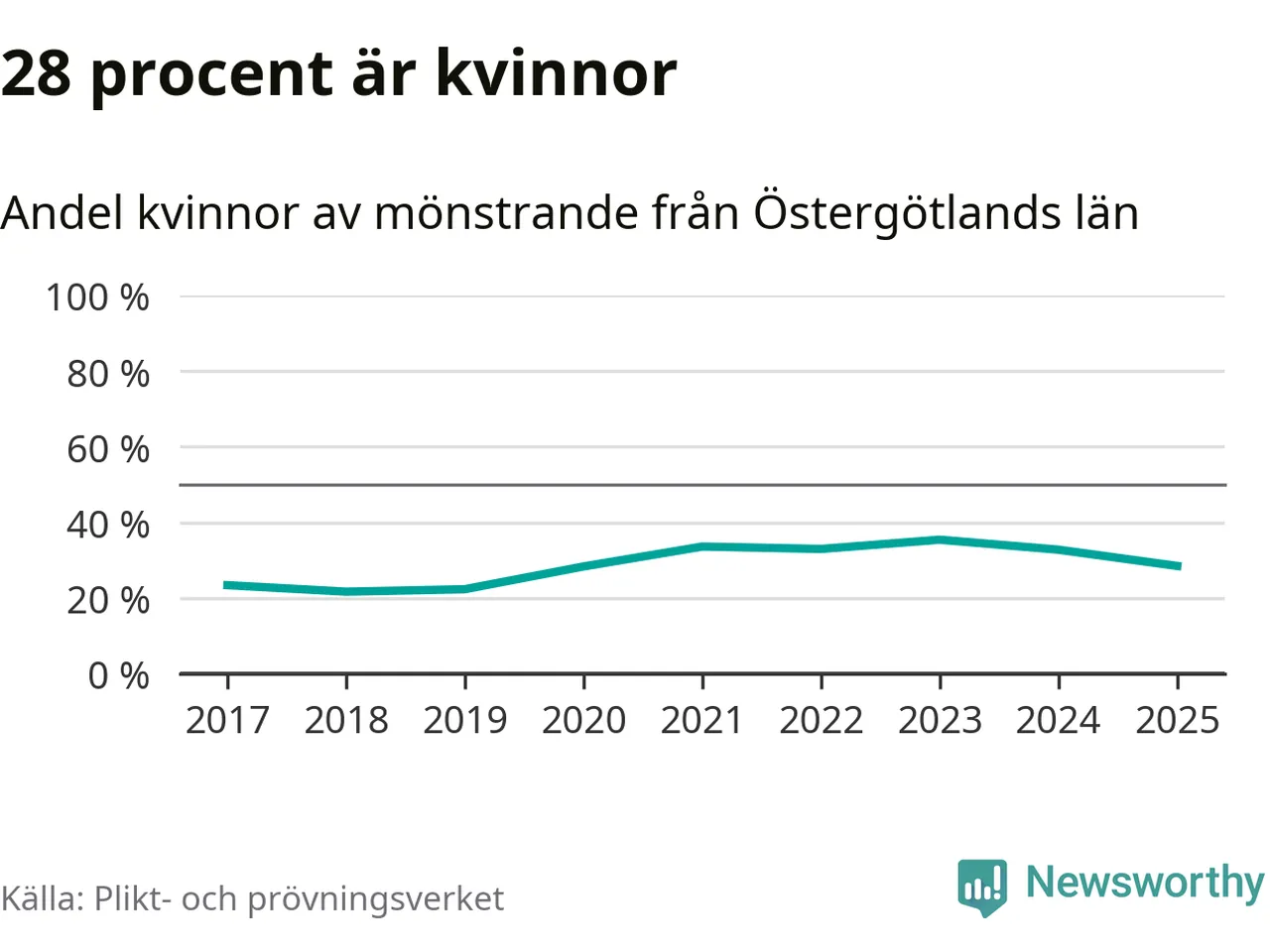 Av de som skrivits in till någon av Försvarmaktens grundutbildningar det senaste året, från juni 2024 till mars i år, kommer 354 (277 män och 77 kvinnor) från Östergötland. 318 av dessa antogs efter att ha kallats till mönstring.