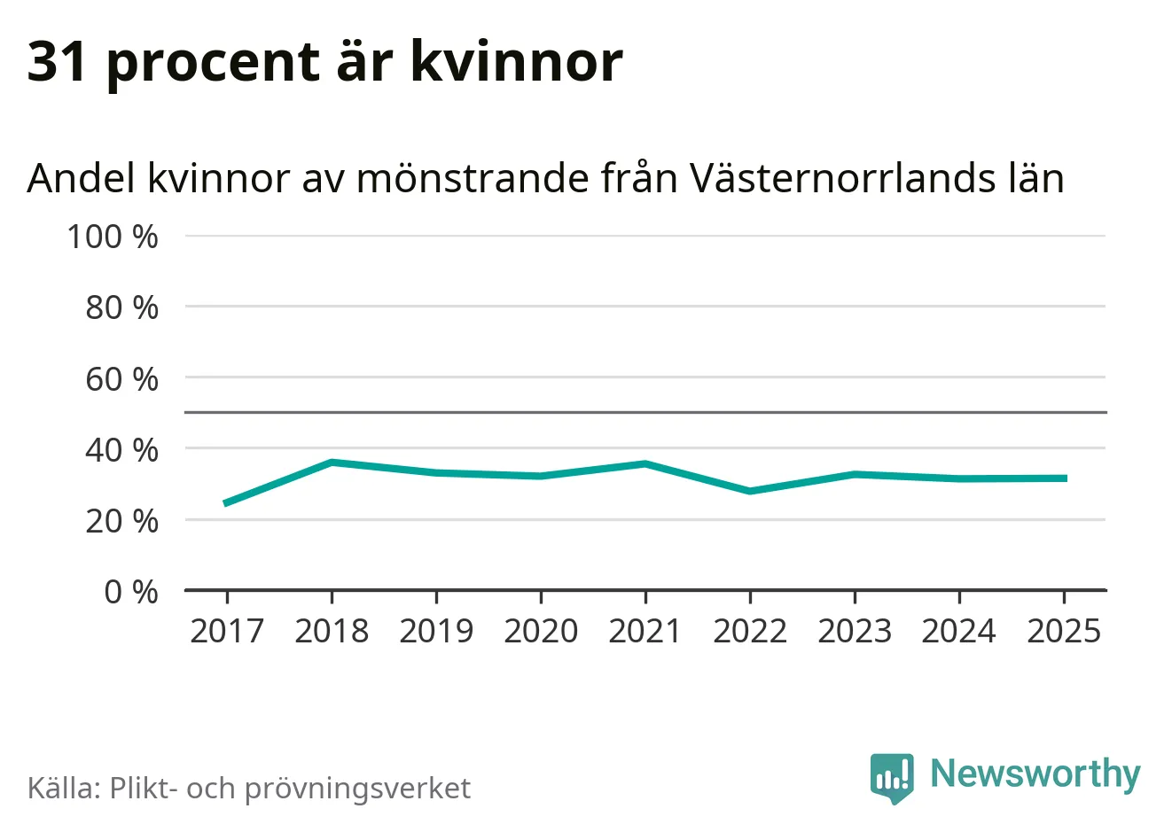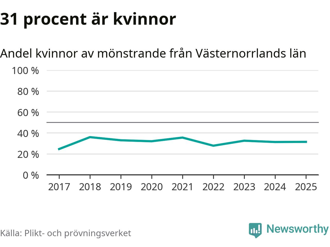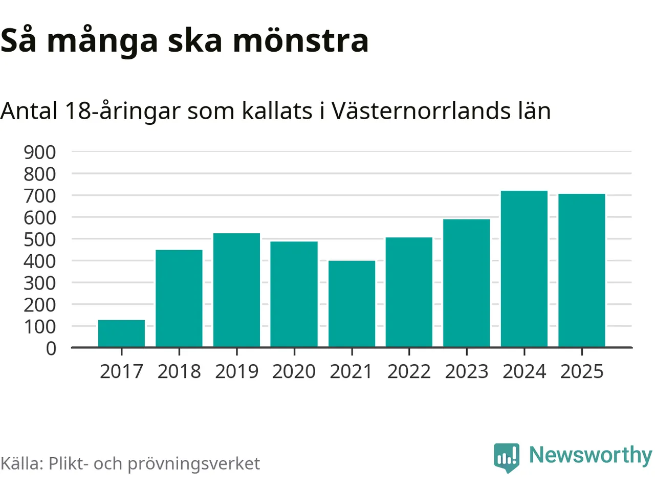 Av de som skrivits in till någon av Försvarmaktens grundutbildningar det senaste året, från juni 2024 till mars i år, kommer 201 (167 män och 34 kvinnor) från Västernorrland. 178 av dessa antogs efter att ha kallats till mönstring.