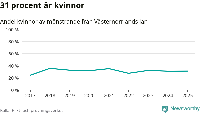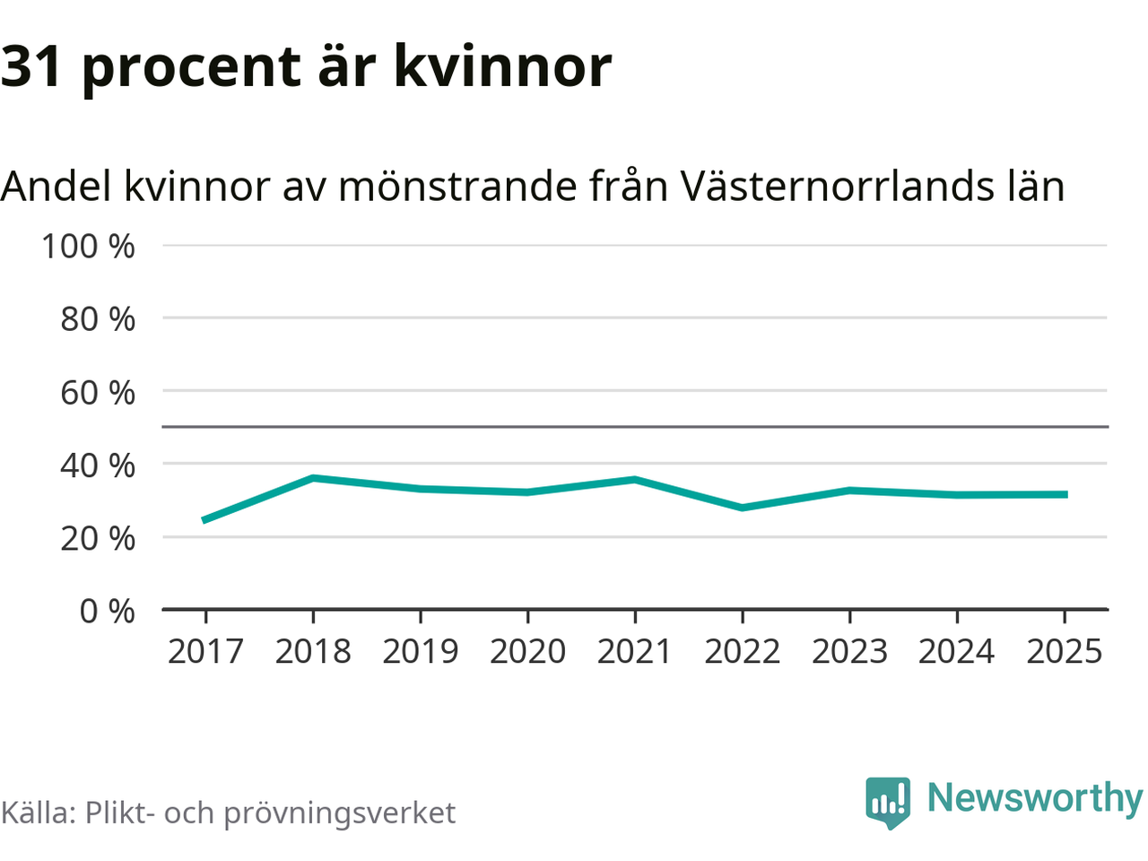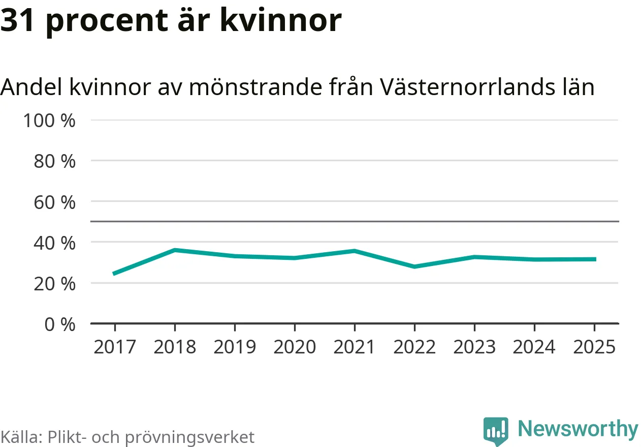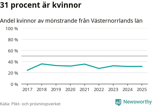 Av de som skrivits in till någon av Försvarmaktens grundutbildningar det senaste året, från juni 2024 till mars i år, kommer 201 (167 män och 34 kvinnor) från Västernorrland. 178 av dessa antogs efter att ha kallats till mönstring.