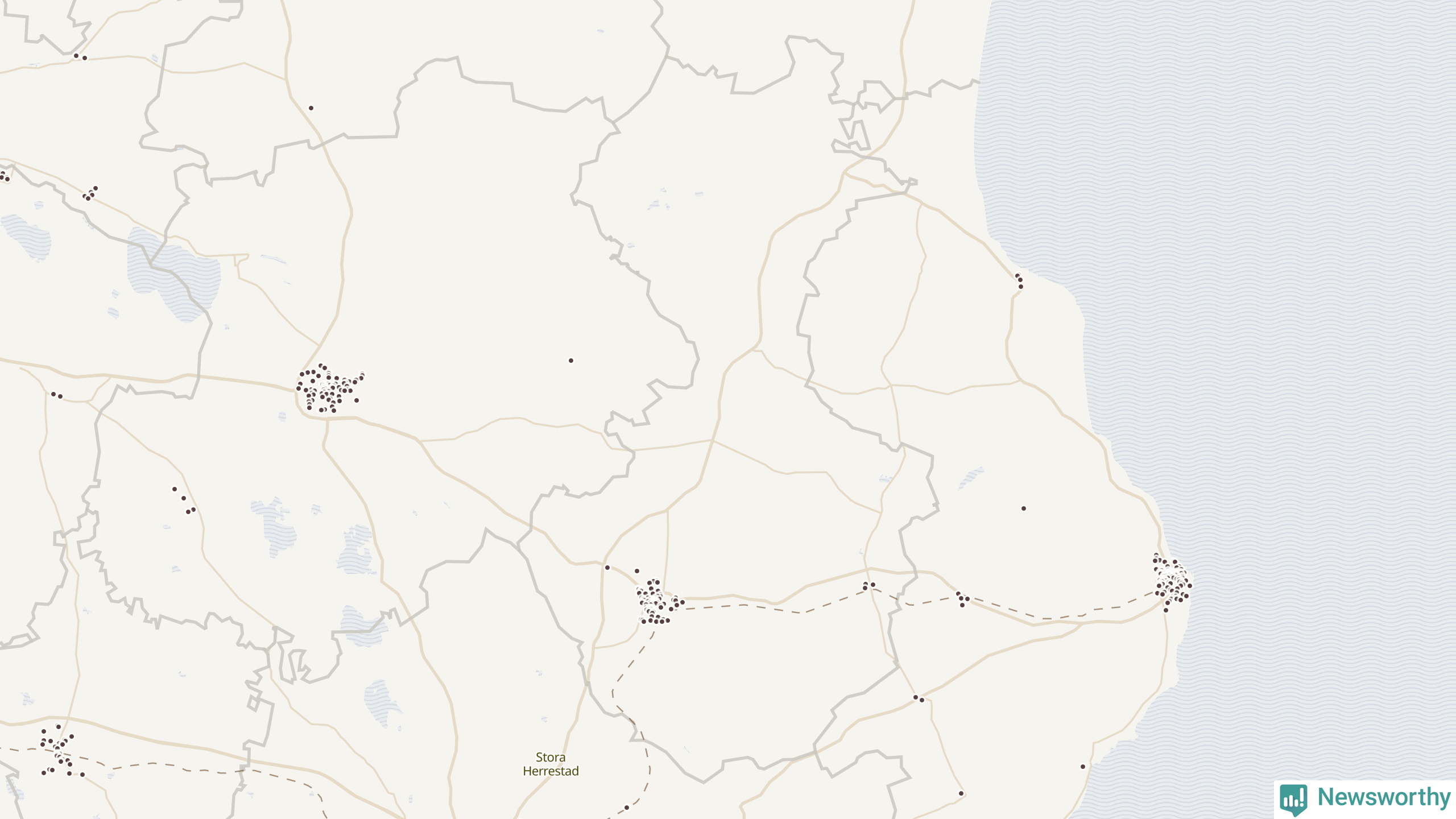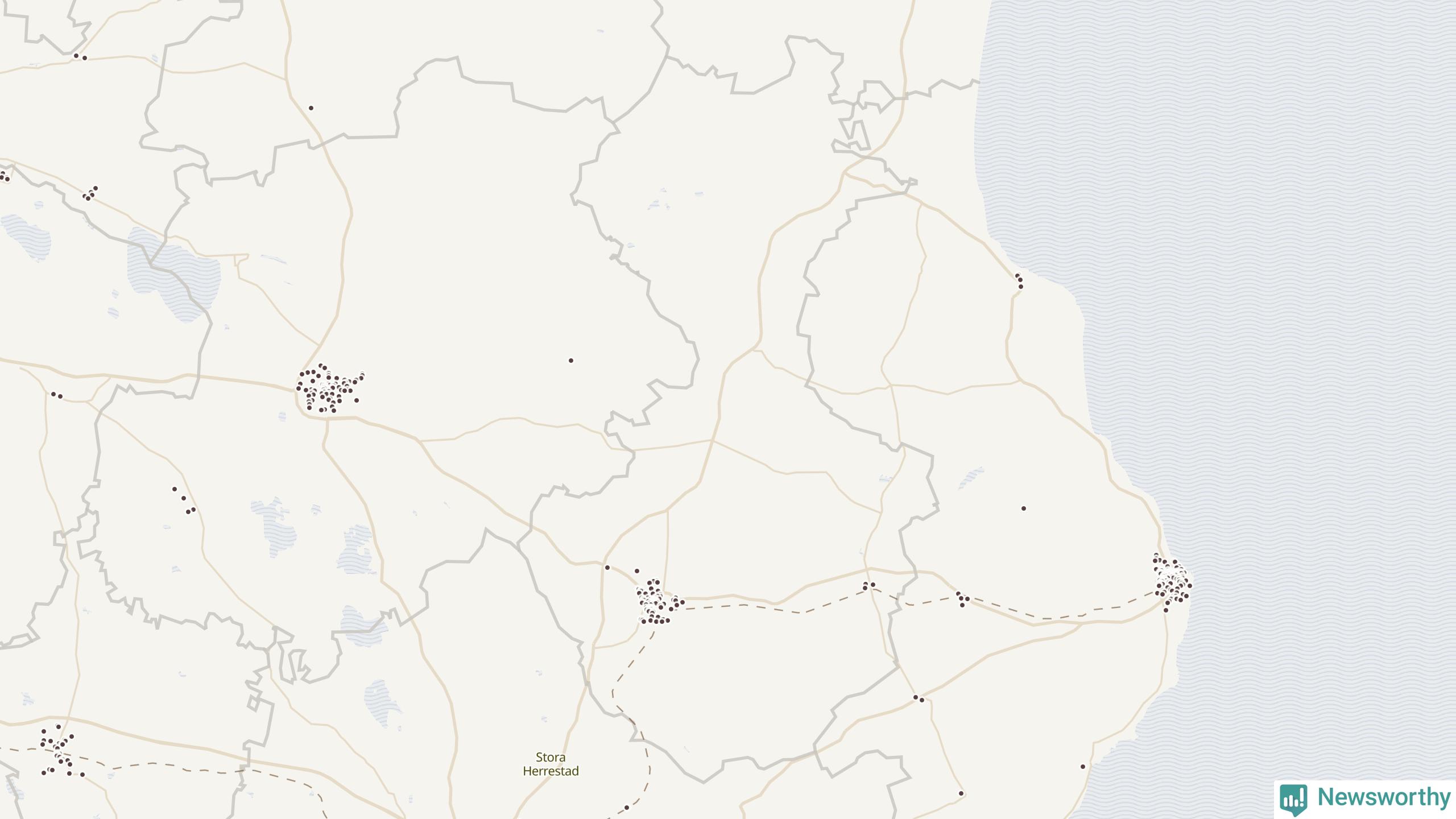 | Östra Göinge | 47 | 2 877 | 21 % |