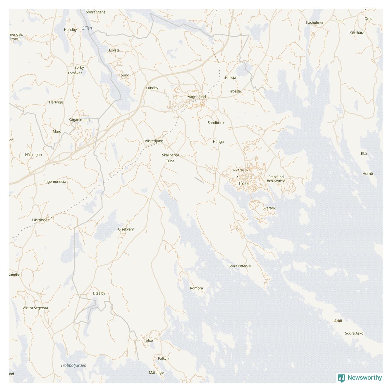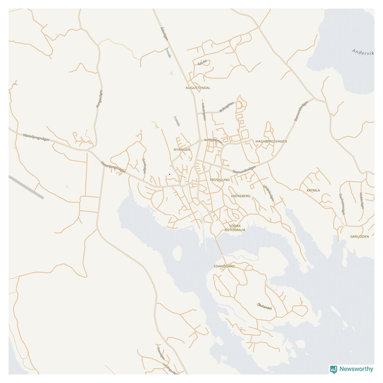 I Trosa kommun finns bara ett skyddsrum på MSB:s karta, på fastigheten Trosa 10:64. Det har 134 platser. Det innebär att det finns plats för mindre än en procent av befolkningen i kommunen. Det är minst skyddsrumsplatser per capita i Södermanland.