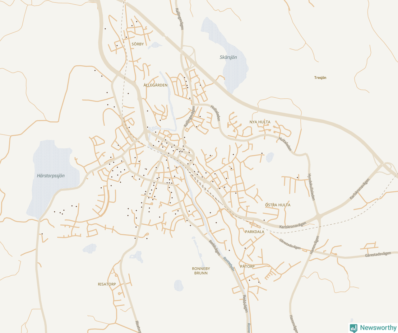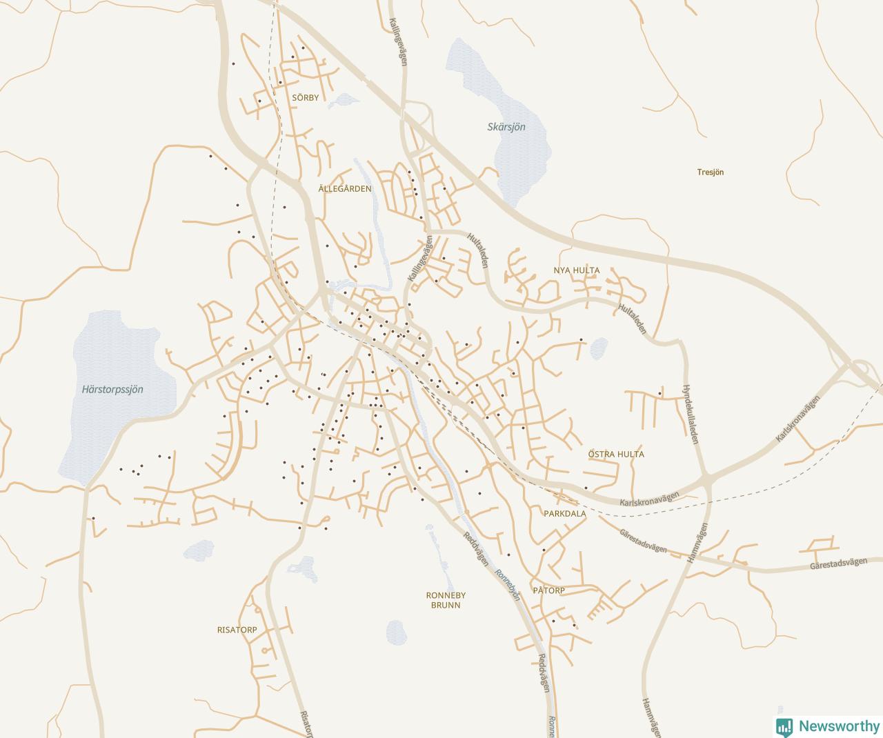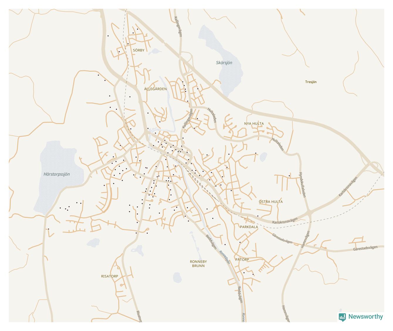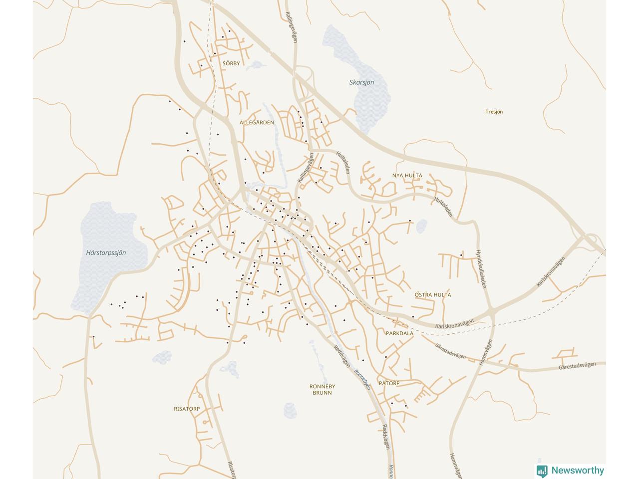 Karta över Ronneby kommun