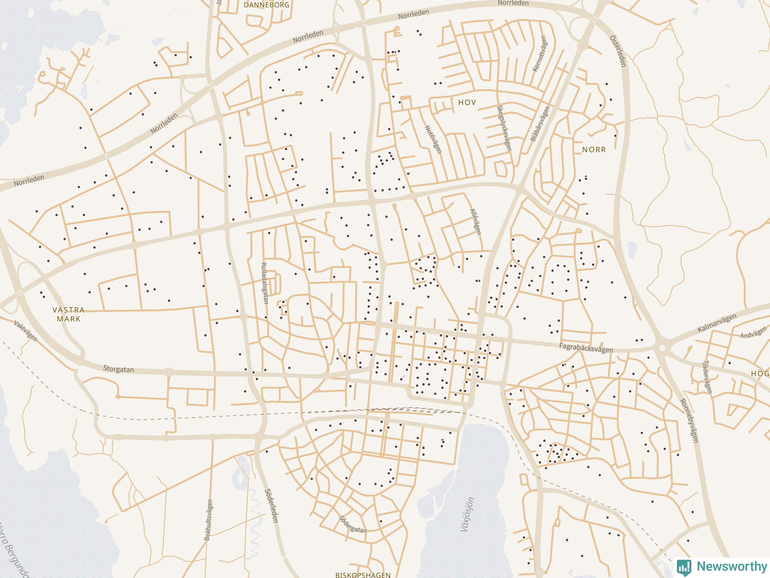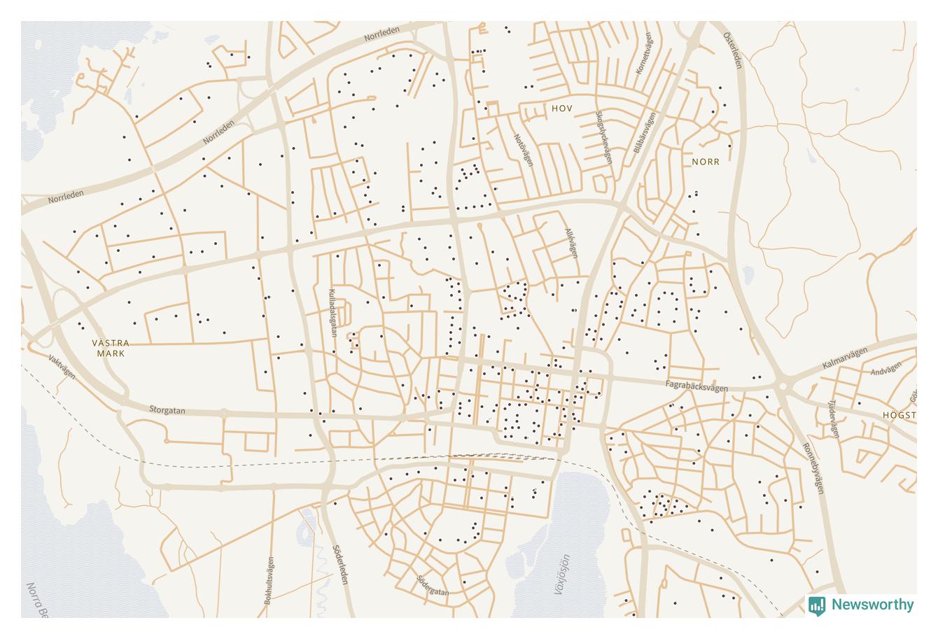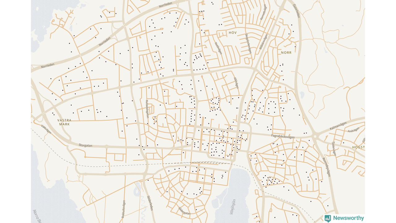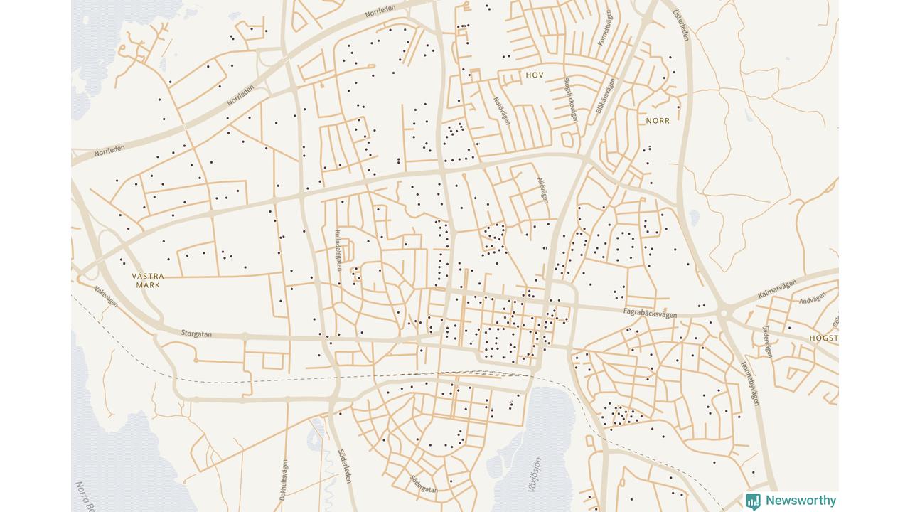| Växjö | 591 | 69 798 | 71 % |