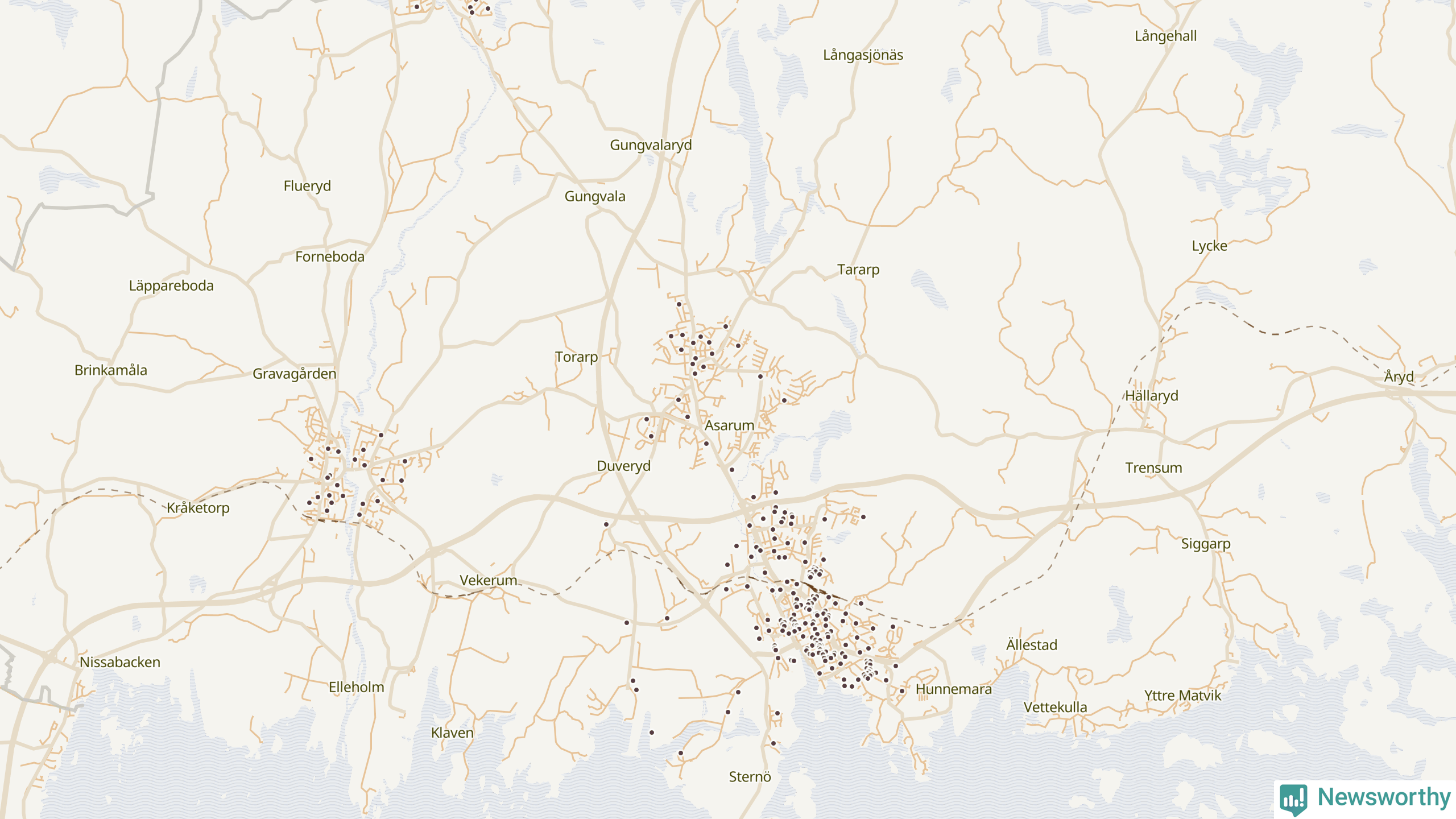 Newsworthy är en nyhetssajt som gör lokal journalistik baserat på data. Vi är datajournalister som analyserar och tolkar världen på siffror, snarare än tyckande.
