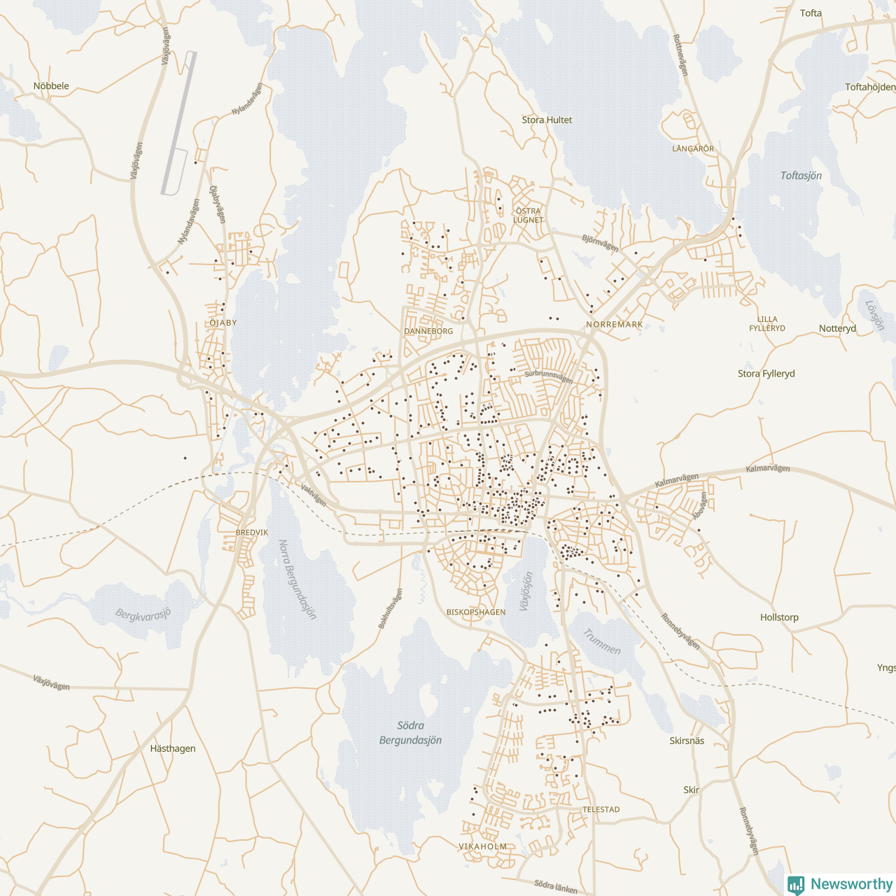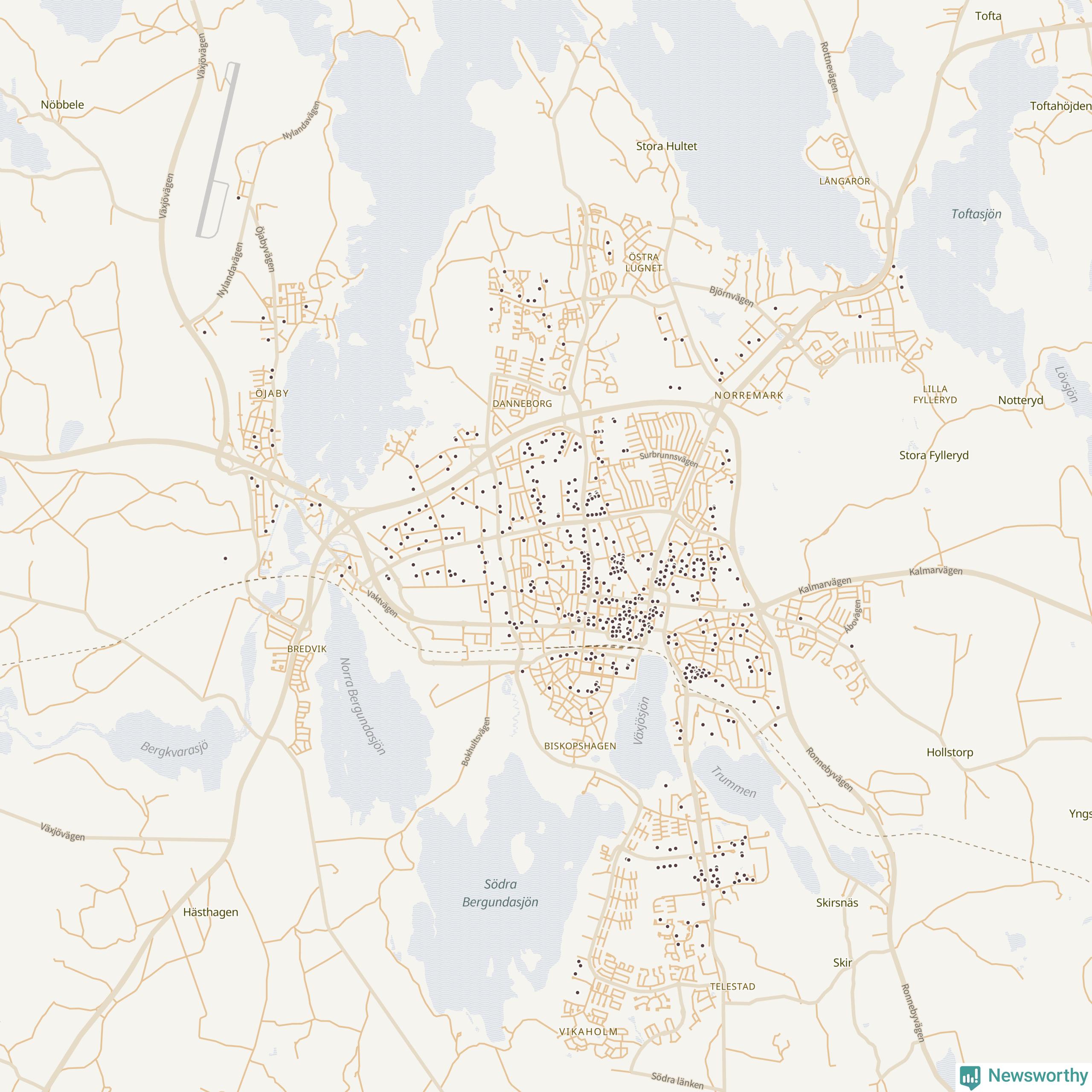 Vid tiden för invasionen av Ukraina fanns omkring 63 900 skyddsrum listade över hela landet på MSB:s karta. I början av mars 2025 var de cirka 63 500, alltså ungefär 400 färre. Även i Växjö saknas nu sex skyddsrum som fanns med på kartan i mars 2022, bland annat på fastigheterna Bagaren 7, Lågan 18 och Eken 7. Samtidigt har fem nya skyddsrum – bland annat på fastigheterna Bivacken 1, Växjö 7:120 och Saga 2 – tillkommit på kartan. Totalt rör det sig om drygt 20 färre platser i kommunen.
