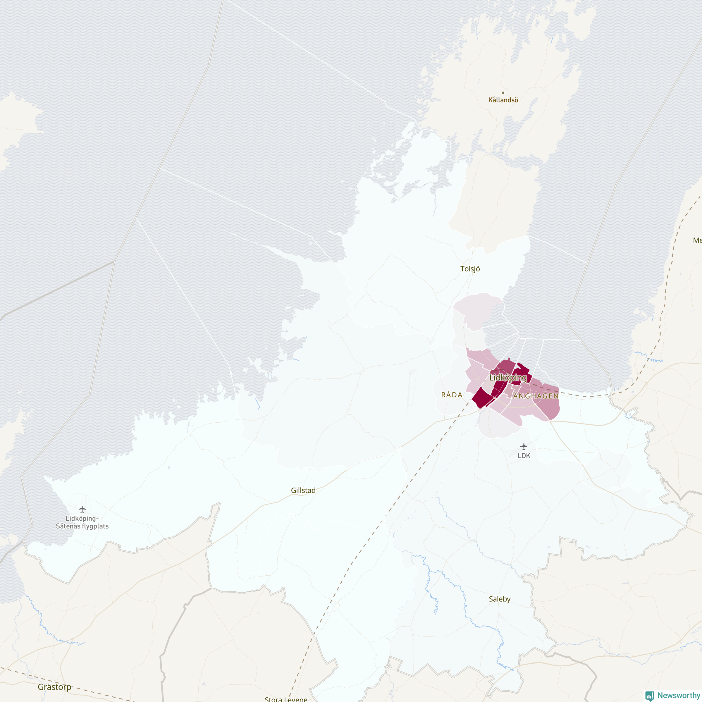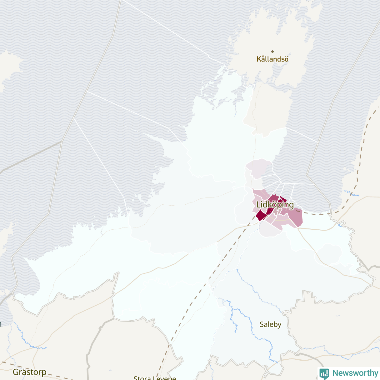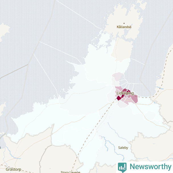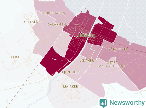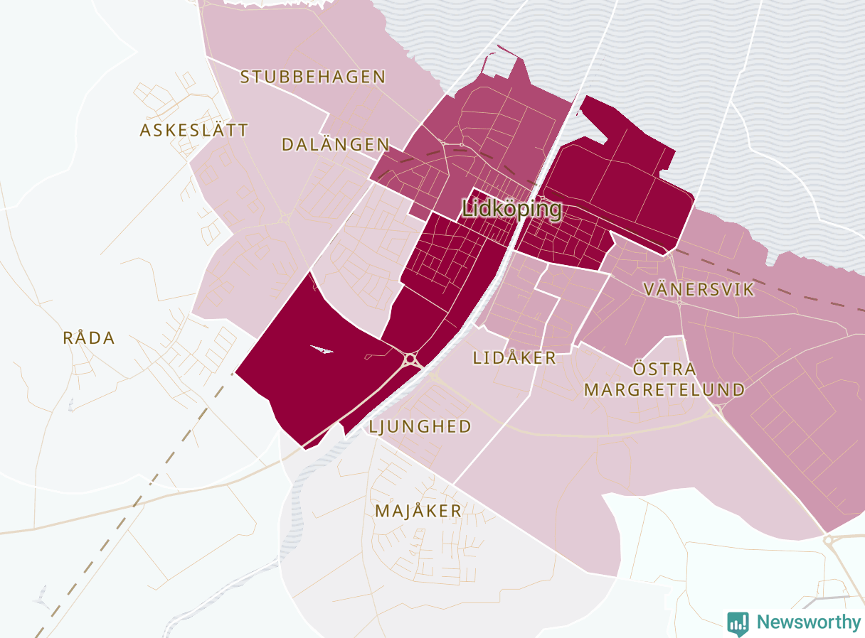 Men alla delar av Lidköping är inte lika hårt drabbade. Det visar data för de senaste fem åren, som Newsworthy begärt ut från polisen. De anmälda stölderna har kopplats till SCB:s 23 statistiska områden i kommunen. I ett område finns inga cykelstölder registrerade, men i de övriga rör det sig om mellan en handfull och drygt 200 anmälda stölder per område.