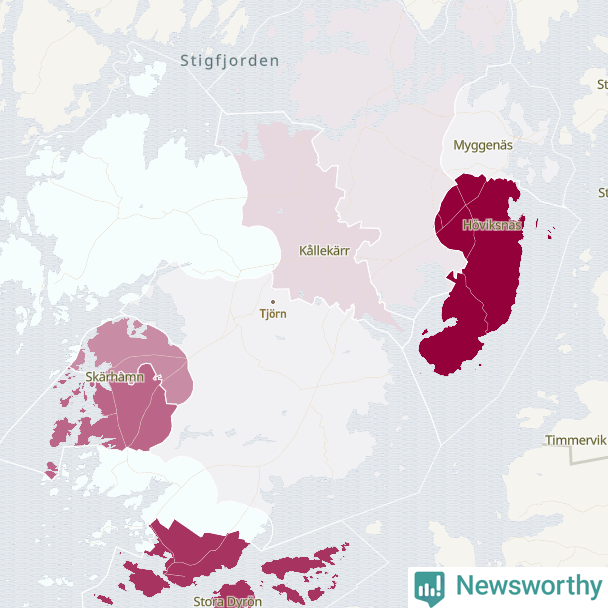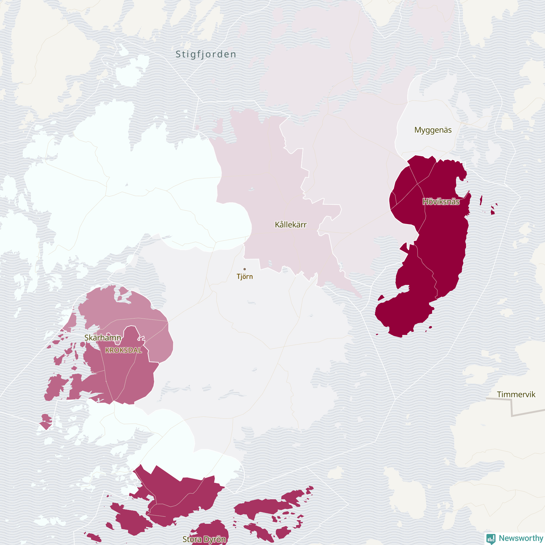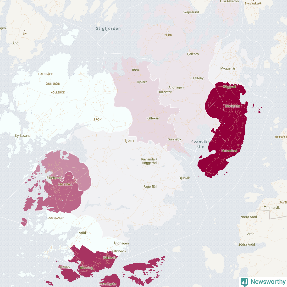 Skillnaderna mellan olika områden på Tjörn är relativt små. Det visar data för de senaste fem åren, som Newsworthy begärt ut från polisen. De anmälda stölderna har kopplats till SCB:s tio statistiska områden i kommunen. Det rör sig om mellan en handfull och ett tjugotal anmälda stölder per område.