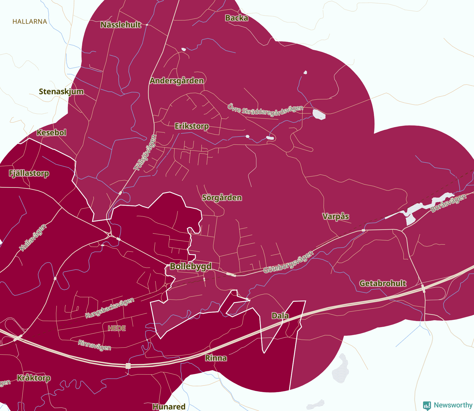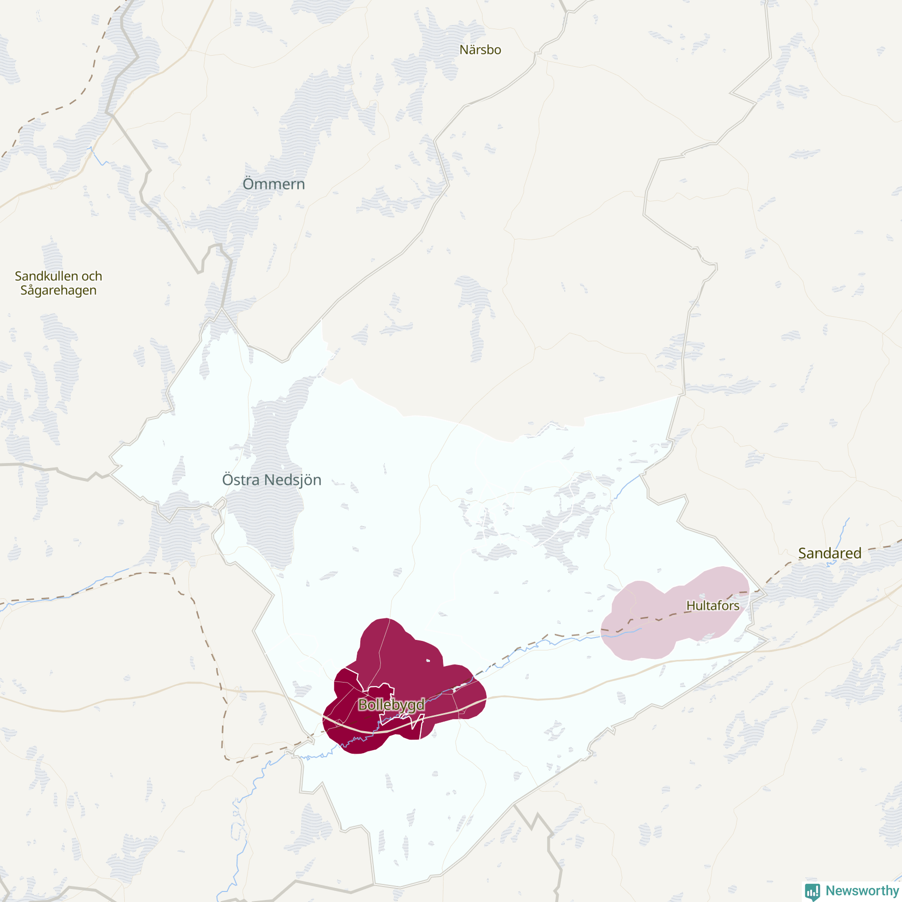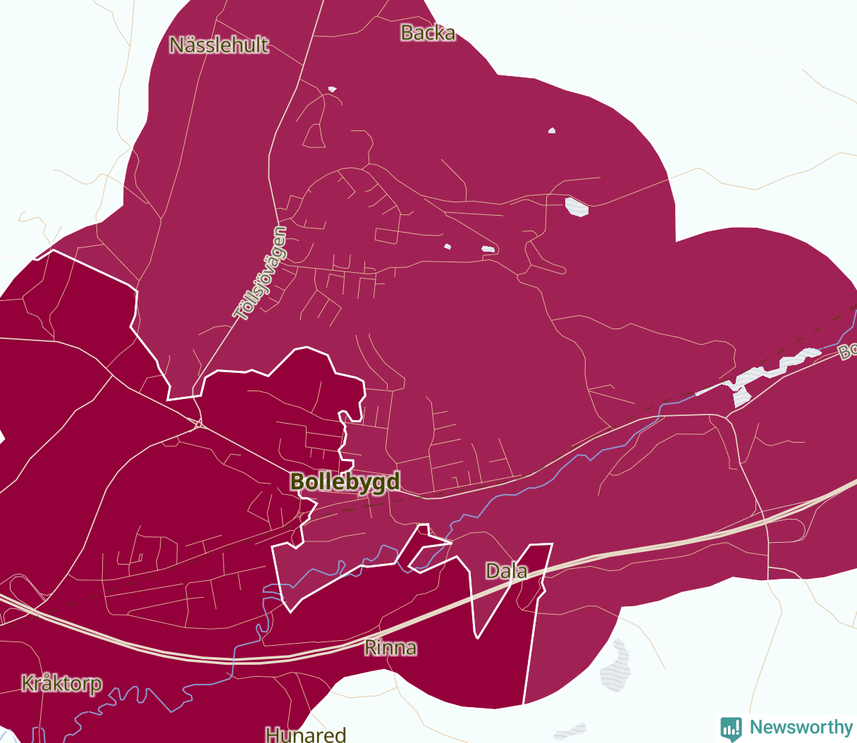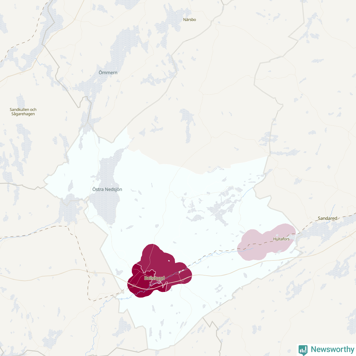 Skillnaderna mellan olika områden i Bollebygd är relativt små. Det visar data för de senaste fem åren, som Newsworthy begärt ut från polisen. De anmälda stölderna har kopplats till SCB:s sex statistiska områden i kommunen. I ett område finns inga cykelstölder registrerade, men i de övriga rör det sig om mellan en handfull och ett femtontal anmälda stölder per område.